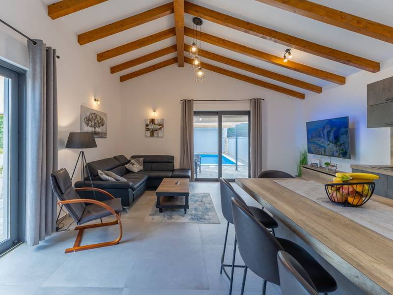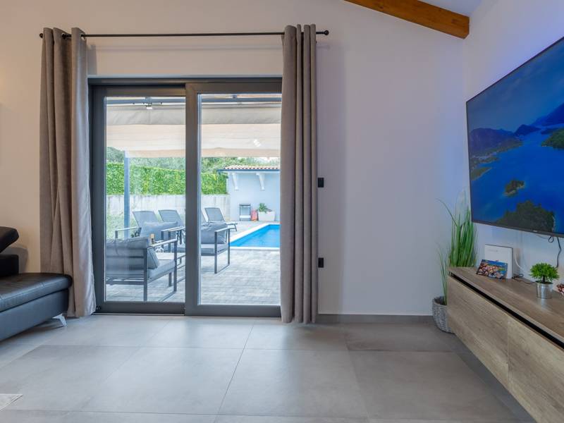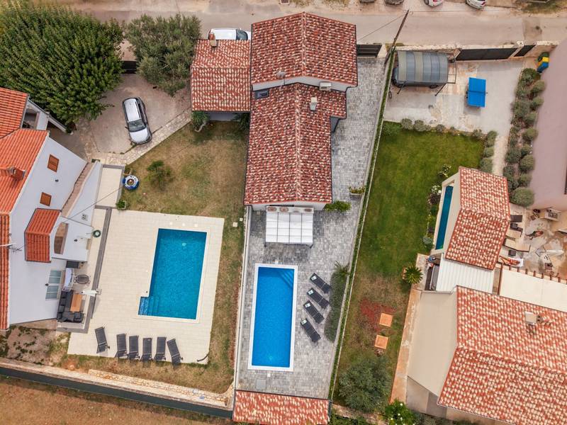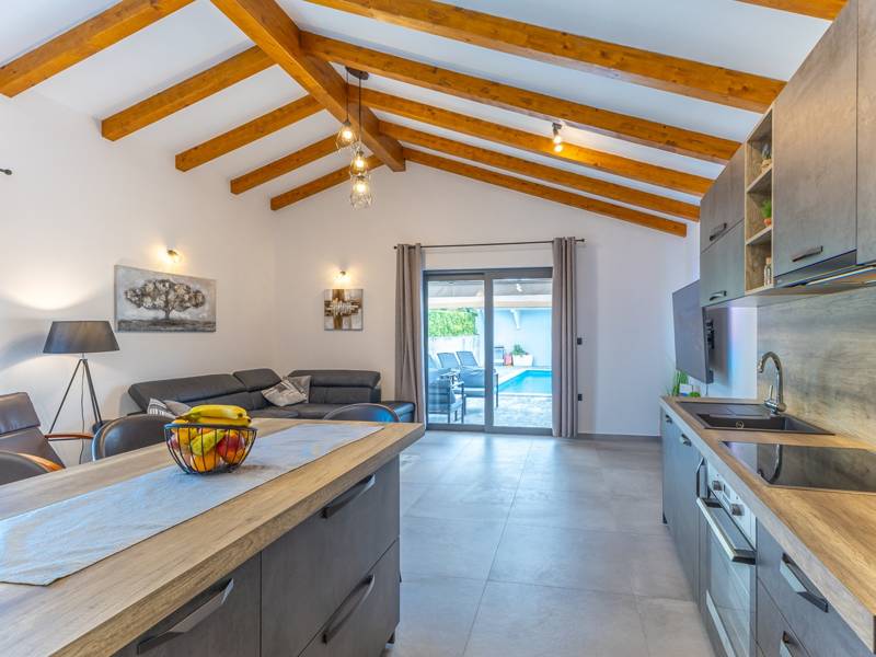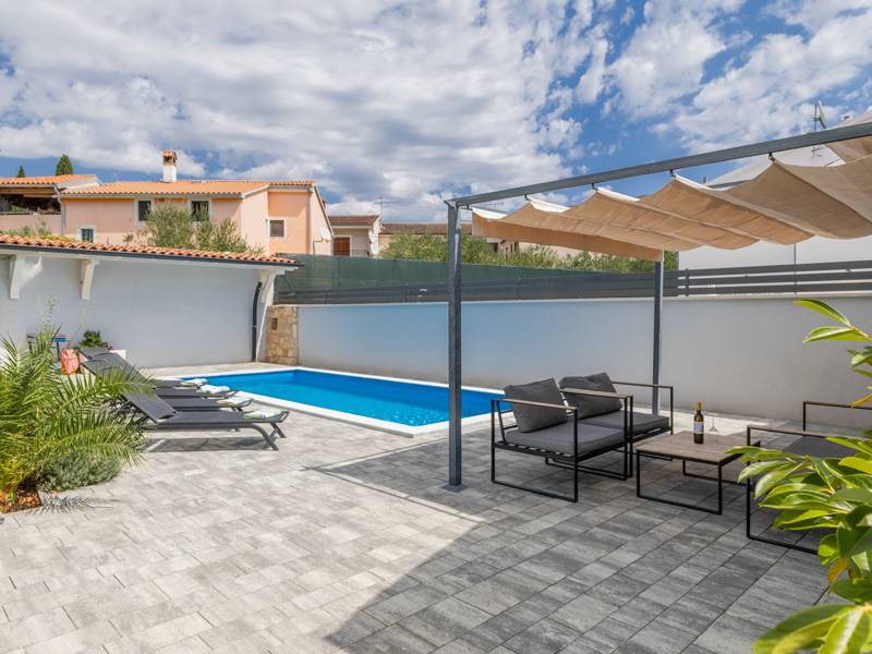 In het pittoreske stadje Bale biedt dit kleine maar moderne vakantiehuis met privézwembad de perfecte plek voor maximaal 4 gasten. Ontworpen met comfort in het achterhoofd, beschikt het over twee gezellige slaapkamers, een elegante badkamer en een extra toilet. De lichte woonkamer met een volledig uitgeruste keuken creëert een gezellige sfeer, terwijl het privéterras en het zwembad (26 m2) je uitnodigen om te ontspannen in volledige privacy. Ideaal voor gezinnen of koppels die op zoek zijn naar rust, comfort en de nabijheid van het charmante stadje Bale en de Adriatische Zee.