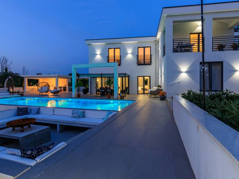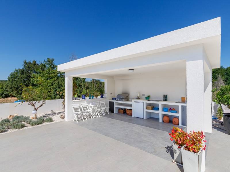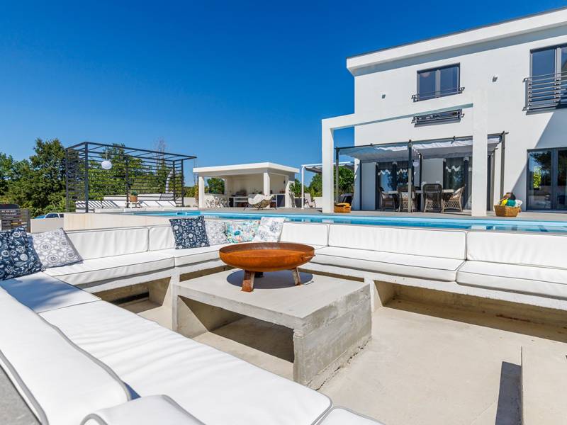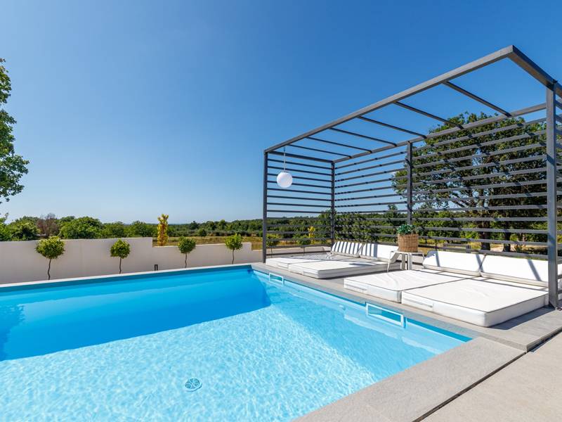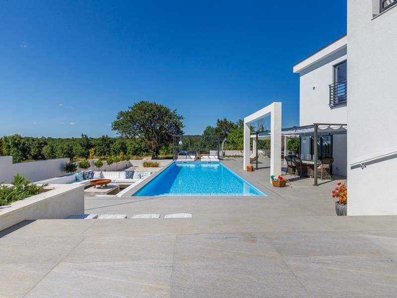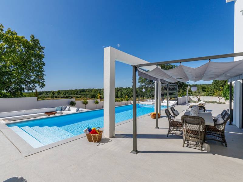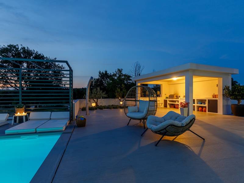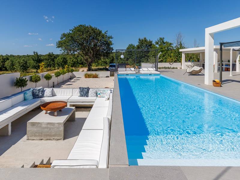 Luxe Villa Valhalla is de ideale accommodatie voor maximaal 8 gasten. Het is gelegen in een idyllische omgeving van centraal Istrië, in een klein dorpje genaamd Barat, in de buurt van Kanfanar. De villa bestaat uit 4 ruime slaapkamers met airconditioning en kingsize bedden, elk met een eigen badkamer. Een van de slaapkamers heeft een uitgang naar het balkon. Een extra aparte WC bevindt zich bij de woonkamer. Op de begane grond vindt u een smaakvol ingerichte woonkamer die moderne en lokale elementen combineert. De woonkamer is verbonden met de volledig uitgeruste keuken met alle benodigde kookapparatuur en een eethoek. Buiten kun je heerlijk zwemmen in het zwembad (55m2) of ontspannen op de ligbedden naast het zwembad. s Avonds kun je met de hele familie op het terras zitten of een maaltijd bereiden in de volledig uitgeruste zomerkeuken met BBQ-grill, die je op het terrein vindt. Er is ook een aparte zithoek naast het zwembad. Er is ook een jacuzzi aanwezig, waar je kunt genieten van een ontspannen avond. We nodigen je uit om samen met ons onder de zomerzon in Istrië te genieten van deze prachtige locatie. Jeugdgroepen zijn niet toegestaan...