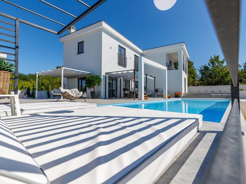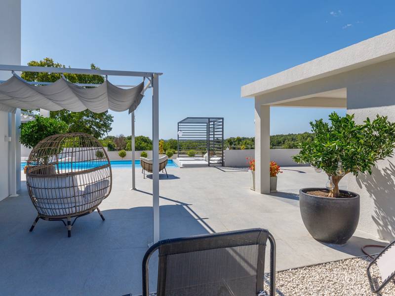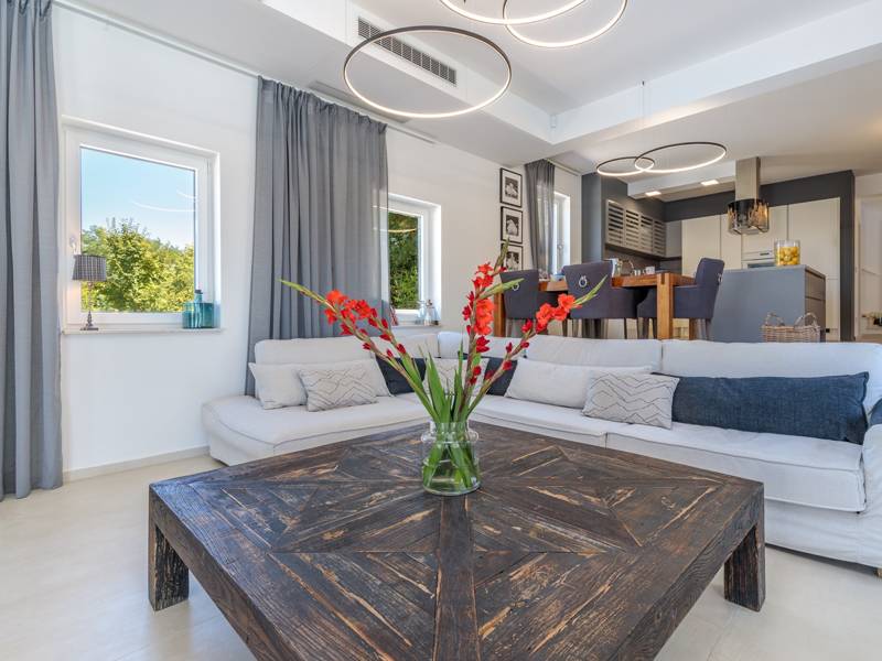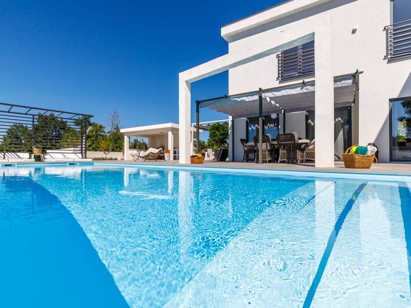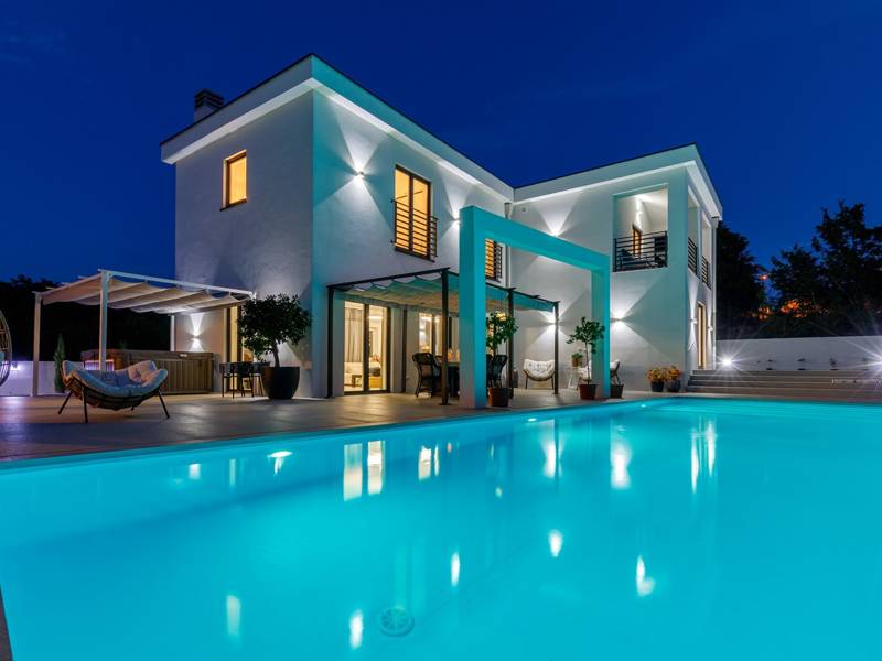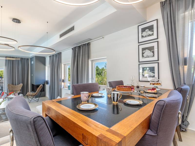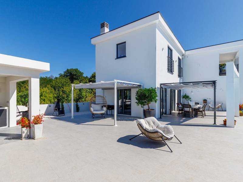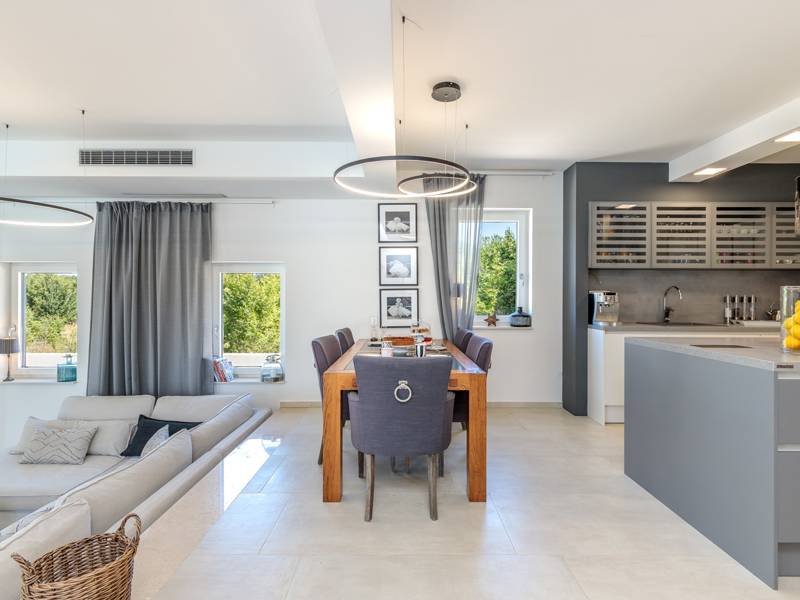 Luxe Villa Valhalla is de ideale accommodatie voor maximaal 8 gasten. Het is gelegen in een idyllische omgeving van centraal Istrië, in een klein dorpje genaamd Barat, in de buurt van Kanfanar. De villa bestaat uit 4 ruime slaapkamers met airconditioning en kingsize bedden, elk met een eigen badkamer. Een van de slaapkamers heeft een uitgang naar het balkon. Een extra aparte WC bevindt zich bij de woonkamer. Op de begane grond vindt u een smaakvol ingerichte woonkamer die moderne en lokale elementen combineert. De woonkamer is verbonden met de volledig uitgeruste keuken met alle benodigde kookapparatuur en een eethoek. Buiten kun je heerlijk zwemmen in het zwembad (55m2) of ontspannen op de ligbedden naast het zwembad. s Avonds kun je met de hele familie op het terras zitten of een maaltijd bereiden in de volledig uitgeruste zomerkeuken met BBQ-grill, die je op het terrein vindt. Er is ook een aparte zithoek naast het zwembad. Er is ook een jacuzzi aanwezig, waar je kunt genieten van een ontspannen avond. We nodigen je uit om samen met ons onder de zomerzon in Istrië te genieten van deze prachtige locatie. Jeugdgroepen zijn niet toegestaan...