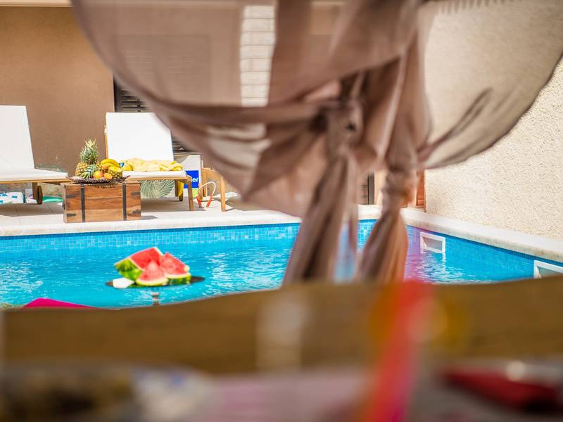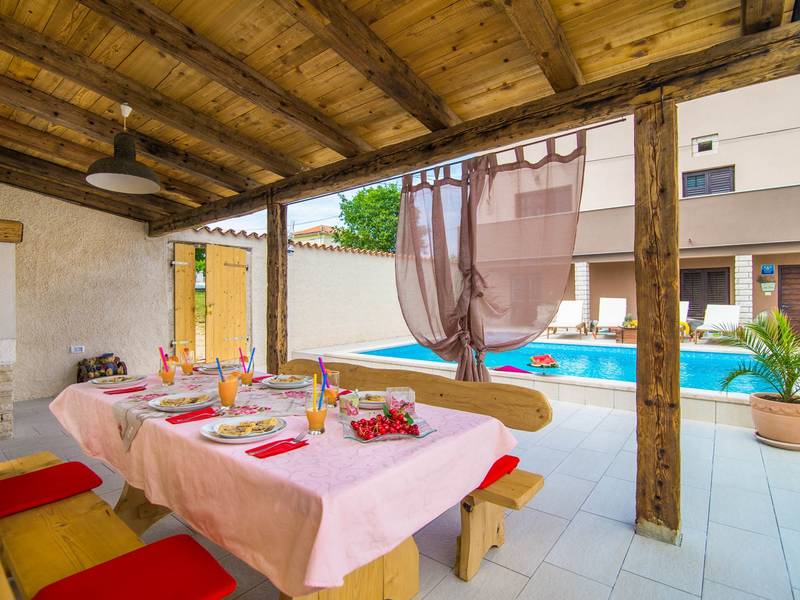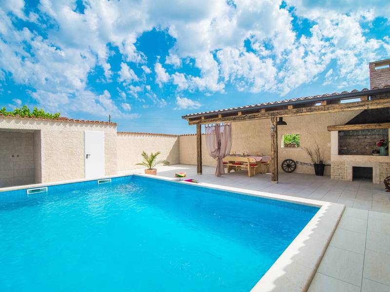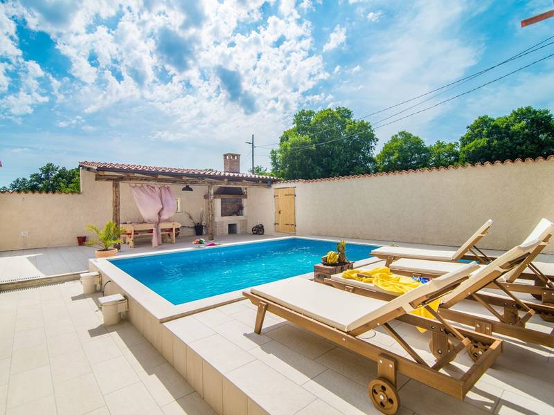 Dit prachtige traditionele vakantiehuis Eleonora is ideaal voor het doorbrengen van een leuke vakantie met familie of vrienden. Vanaf zomer 2017 heeft het een zwembad van ca. 28m2 en een grote privétuin met grill en tuinmeubilair. Het huis ligt in de kleine plaats Manjadvorci en heeft een mooie stenen open haard, stenen muren en oude houten balken. De keuken is volledig uitgerust, met fornuis, oven, magnetron, waterkoker, koelkast, broodrooster, vaatwasser en koffiezetapparaat. De keuken is verbonden met een eet- en woonkamer, terwijl de open haard zich in een andere kamer bevindt. De twee ruime slaapkamers hebben een tweepersoonsbed in de ene kamer en twee eenpersoonsbedden in de andere kamer. Vanuit de grote slaapkamer met tweepersoonsbed kom je op een klein balkon met een zitje. Er kunnen nog twee mensen in het huis verblijven op een slaapbank voor twee personen in de woonkamer. Een badkamer heeft een ligbad en de andere badkamer heeft een douche en een wasmachine. Het huis beschikt over gratis internetverbinding wifi en satelliet-tv. Er staan twee fietsen tot je beschikking. De dichtstbijzijnde winkel is op ongeveer 200 afstand, evenals een restaurant-pizzeria; in de buurt van het huis vindt u de beroemde Ranch Barba Tone en een leuke pizzeria. Het huis ligt op 6 km van de zee. Op slechts 2 km van het huis vindt U het interessante adrenaline park Glavani als U in bent voor een avontuur, of regel met de eigenaren een trip met Istra avontuurlijke quad safari.