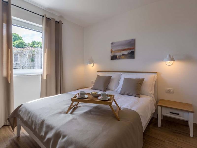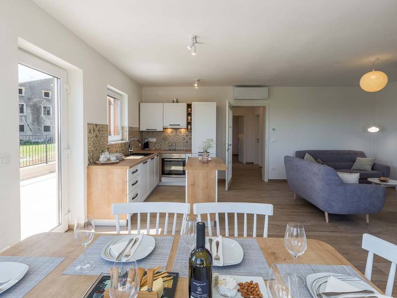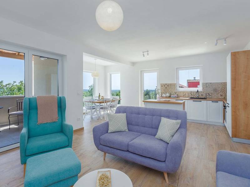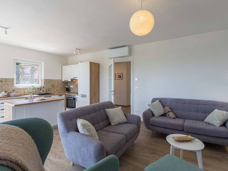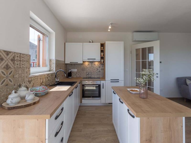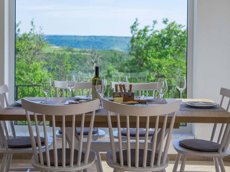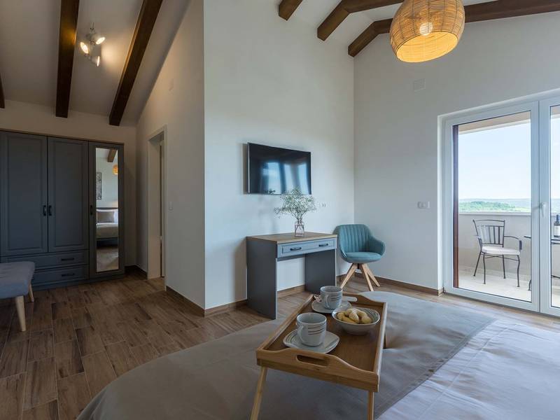 Villa Skarline is gelegen in een plaats genaamd Baredine, in de buurt van de Istrische stad Buje beroemd om de wijnbouw. Het meest dominante kenmerk van dit vakantiehuis voor 6-8 personen is het prachtige uitzicht op het Istrische landschap. De pasteltinten van het lichte interieur geven dit huis een rustgevend en ontspannend effect. Verschillende vintage elementen (zoals theepot met kopjes, koffiemolen, antieke keukentegels etc.) roepen oude romantische tijden op. De villa is omringd door oude huizen met de originele Istrische architectuur. Het huis bestaat uit twee verdiepingen met drie slaapkamers met badkamers, een woonkamer en een eetkamer met keuken. Aan de buitenkant ligt een 27 m2 groot zwembad met zonneterras, zomerkeuken en veel groen. Sommige accommodaties laten geen jeugdgroepen toe. Als je een accommodatie boekt als groep jongeren, neem dan contact op met ons agentschap voordat je de reservering maakt om te controleren of de gevraagde accommodatie jullie verblijf toestaat.