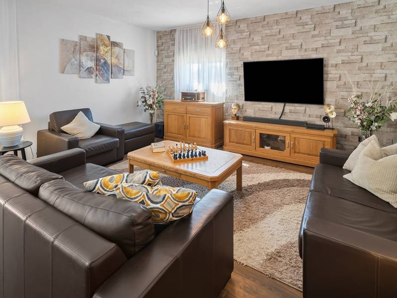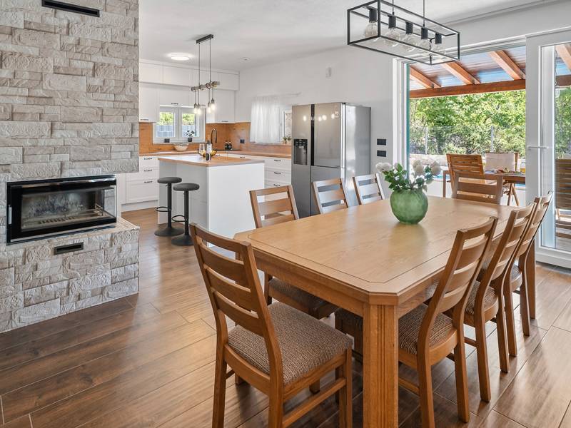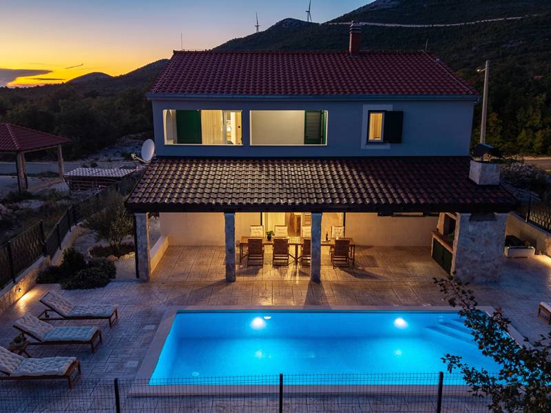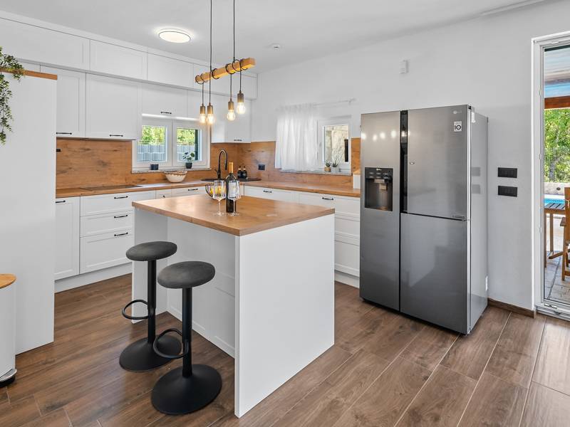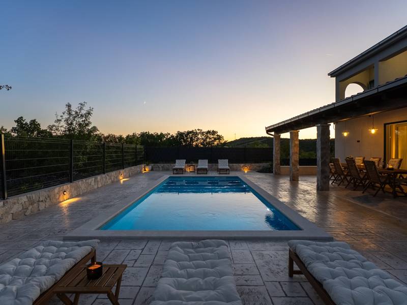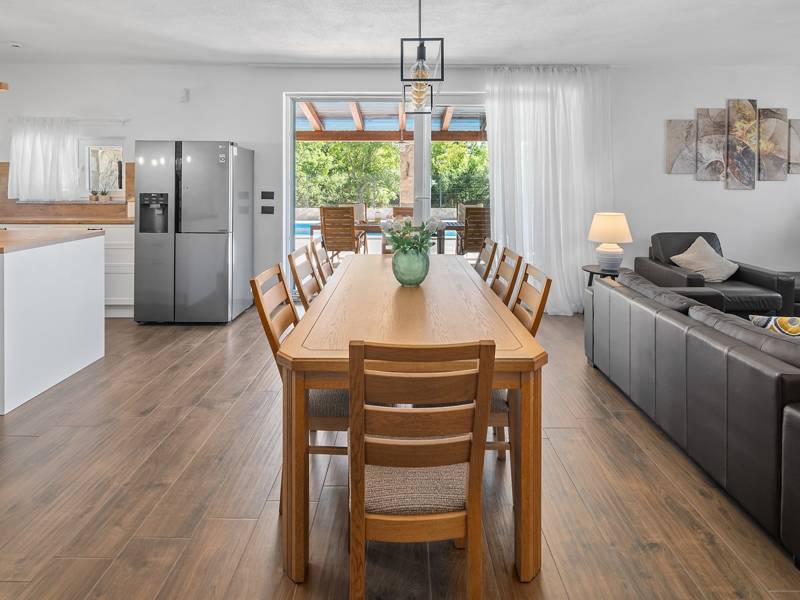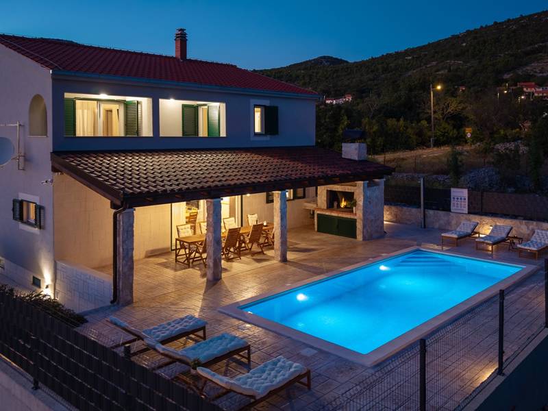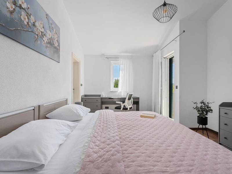 **Villa Admiral: Your Idyllic Retreat in rural area of Trogir hinterland** - LAST MINUTE DISCOUNT (included in the price) Deze prachtige villa beschikt over 246m² doordacht en gezellig interieur, gelegen op een eigen, omheind perceel van 541m², het beschikt over een royaal verwarmd zwembad van 36m² - perfect om af te koelen of te genieten van de zon op warme dagen. Met vier prachtig ingerichte en-suite slaapkamers, Villa Admiral biedt plaats aan maximaal acht gasten, het verzekeren van comfort en privacy voor gezinnen of groepen vrienden. Elke slaapkamer is zorgvuldig ontworpen met airconditioning, een tv en toegang tot balkons die je uitnodigen om te genieten van het schilderachtige uitzicht op het weelderige platteland. ** Villa Outdoor Features**: Het ruime zwembad (9m x 4m) is perfect om af te koelen of te genieten van een duik op elk moment van het jaar, dankzij het verwarmingssysteem. Zonneterras, zes comfortabele ligstoelen bieden een geweldige plek om te zonnebaden of te ontspannen met een goed boek. Bij de overdekte eethoek buiten kun je buiten eten voor maximaal acht personen, perfect voor familiemaaltijden of bijeenkomsten met vrienden. De barbecueplaats, uitgerust voor koken op hout of houtskool, zorgt voor heerlijke grill-outs onder de sterren, en een buitendouche. Parkeerplaats: Ruime parkeergelegenheid voor maximaal vier auto's maakt het gemakkelijk om te komen en gaan. Er is ook een videobewaking bij de ingang van het pand, Verhoogde veiligheid voegt gemoedsrust tijdens uw verblijf. **Begane grond Kenmerken:** Stap in de uitnodigende leefruimte, waar modern comfort rustieke charme ontmoet. De open ruimte (55 m²) is voorzien van pluche banken en een flatscreen-tv, perfect voor gezellige filmavonden of spannende spelsessies op de PlayStation 4. Een mooie open haard zorgt voor warmte en sfeer. Een prachtige open haard zorgt voor warmte en sfeer tijdens koelere avonden. De volledig uitgeruste keuken, compleet met een stijlvol eiland, bevat een koelkast met ijsmaker, een espressomachine, een magnetron en een waterkoker - ideaal voor het bereiden van heerlijke maaltijden. Kom samen rond de eettafel, die comfortabel plaats biedt aan acht personen, en geniet van gezamenlijke maaltijden terwijl je blijvende herinneringen creëert. Voor extra gemak biedt de begane grond ook een apart toilet en een wasruimte uitgerust met een wasmachine, droger en strijkbenodigdheden.**Bedrooms Overview:** - **Slaapkamer 1:** (14 m²) heeft een queensize bed (160cm x 200cm), en-suite badkamer met douche, TV, airconditioning, en een eigen balkon. - **Slaapkamer 2:** (17,5 m²) heeft twee eenpersoonsbedden (90cm x 200cm-kan worden gekoppeld tot een kingsize bed), en-suite badkamer met douche, TV, airconditioning, en een eigen balkon.- **Slaapkamer 3:** (13 m²) Heeft een kingsize bed (180cm x 200cm), en-suite badkamer met douche, TV, airconditioning en een eigen balkon. - **Slaapkamer 4:** (14 .3 m²) Deze kamer bevindt zich op de begane grond en beschikt over een queensize bed (160cm x 200cm), een eigen badkamer met douche, tv en airconditioning. **Uitrusting buiten:** Stap naar buiten en ontdek het ruime zonneterras, ingericht met ligstoelen waar je kunt genieten van de zon of kunt schuilen in de schaduw. De overdekte eethoek is perfect voor maaltijden in de buitenlucht, met een barbecue om heerlijk buiten te koken, omringd door de schoonheid van de natuur. Voor een vriendschappelijke wedstrijd daag je je geliefden uit voor een wedstrijd aan de voetbaltafel. Villa Admiral biedt een unieke mix van landelijke charme en moderne voorzieningen, waardoor het een ideaal uitje is voor diegenen die de verbinding willen verbreken en tot rust willen komen terwijl ze genieten van de zachte omhelzing van de natuur. Of je nu luiert bij het zwembad, de nabijgelegen pittoreske dorpjes verkent of gewoon geniet van de rust en stilte, deze villa belooft een onvergetelijke ontsnapping. Of je nu de voorkeur geeft aan avonturen in de buitenlucht, culturele ervaringen of gewoon ontspannen bij het zwembad, Blizna Gornja en de omgeving bieden een prachtige mix van activiteiten voor alle soorten reizigers. De eigenaren zullen je bij aankomst veel nuttige tips en aanbevelingen geven. We kunnen niet wachten om je te verwelkomen in Villa Admiral in Blizna Gornja!