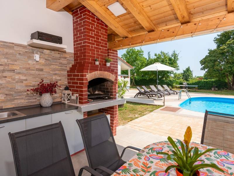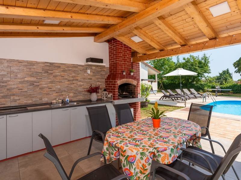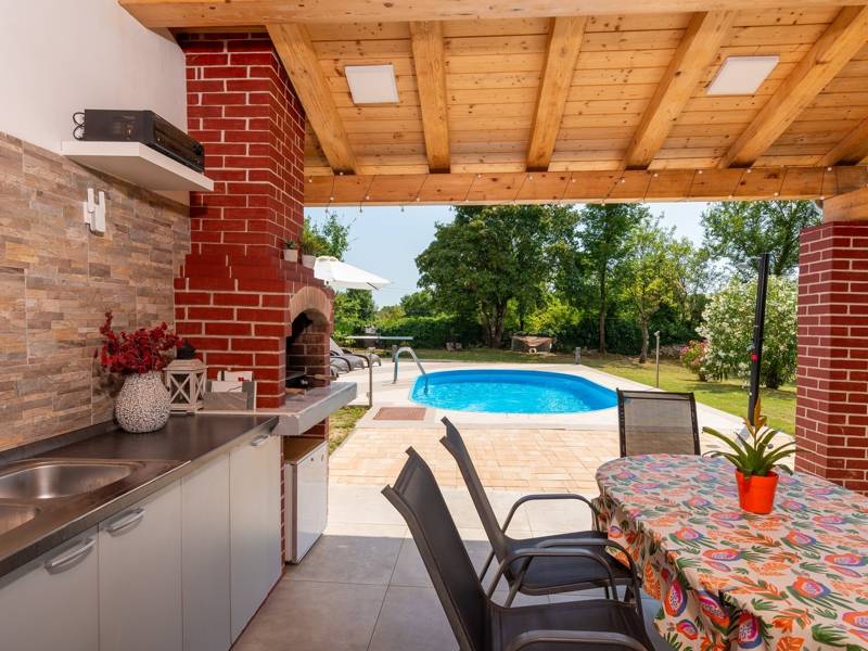Verwen jezelf met een perfecte vakantie door te verblijven in de charmante Villa Zivolic met een ruime tuin, gelegen in het centrum van Istrië. De villa is geschikt voor maximaal 5 personen, waardoor het de perfecte keuze is voor een klein gezin of een groep vrienden. Dit huis met één verdieping en airconditioning heeft drie slaapkamers, één met een tweepersoonsbed, één met twee eenpersoonsbedden en één met een eenpersoonsbed. Er is een badkamer met een douche en een extra toilet tot je beschikking. Een volledig uitgeruste moderne keuken staat klaar om heerlijke maaltijden te bereiden die je aan de eettafel kunt serveren. De ruime woonkamer is de perfecte keuze voor aangename momenten in het gezelschap van je geliefden. In het groen van de binnenplaats is het eerste wat je opvalt het zwembad met bijbehorende ligstoelen, om de hele dag te genieten in de warme mediterrane zon. De overdekte buitenkeuken met open haard en eettafel is de perfecte plek om de gezellige avonden buiten door te brengen. Tafeltennis en badminton zijn ook beschikbaar.