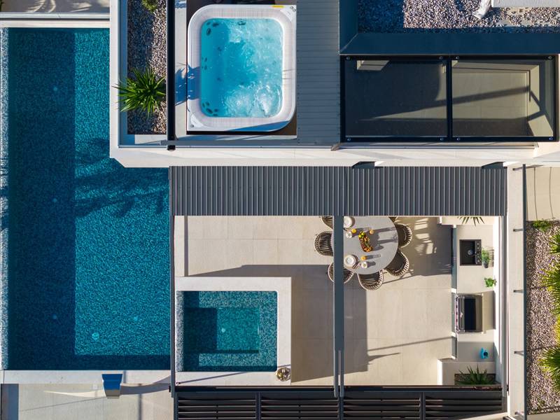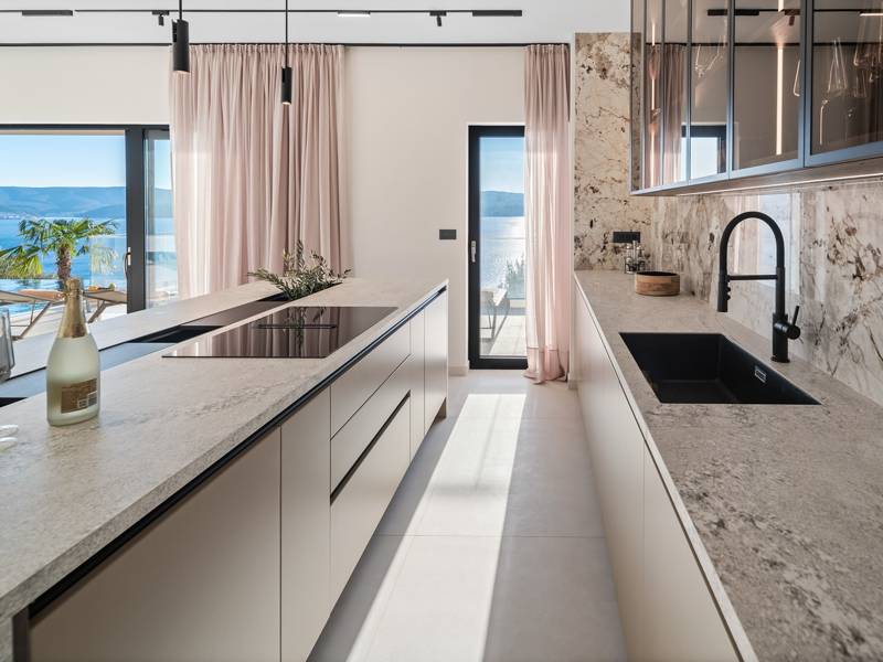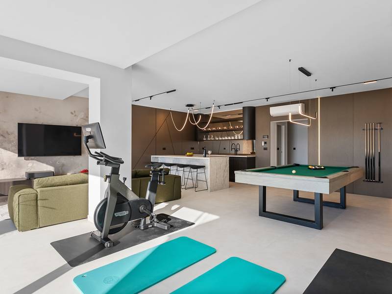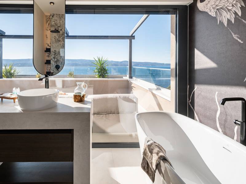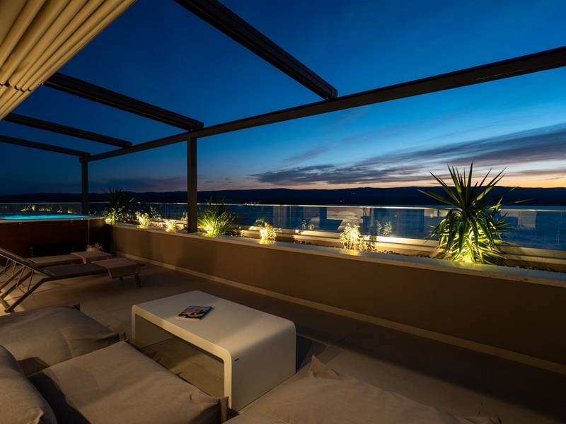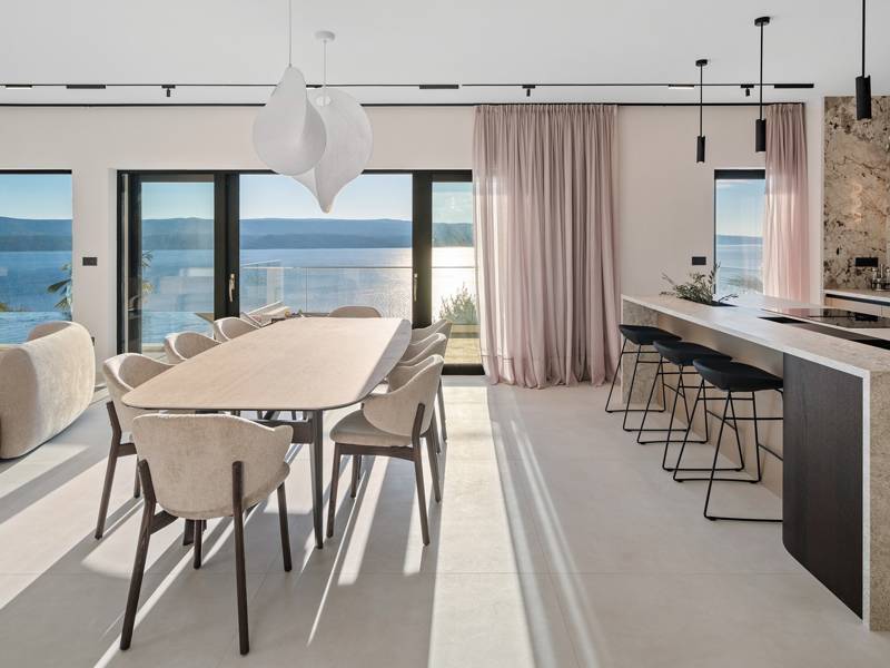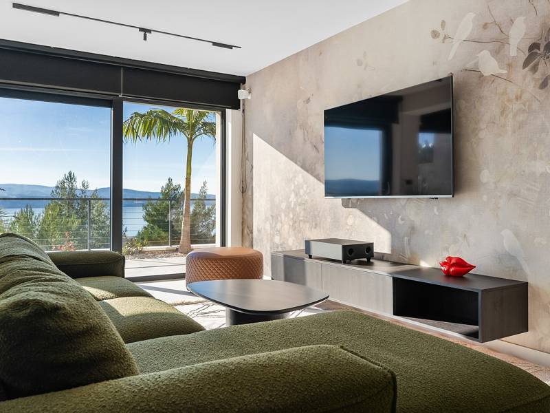 Ervaar ongeëvenaard comfort, privévoorzieningen en adembenemende vergezichten over de Dalmatische kust in dit prachtige luxe toevluchtsoord Ontdek de prachtige en werkelijk luxueuze Villa Million Dreams met 5 slaapkamers, die een verwarmd overloopzwembad van 40 m² met een aangrenzend hydromassagegedeelte, een jacuzzi (whirlpool) op het bovenste terras, een volledig uitgeruste fitnessruimte, een Finse sauna, een biljarttafel en hoogwaardig meubilair biedt. Deze villa heeft een spectaculair uitzicht op zee vanuit elke kamer. Het is ingericht zoals de naam al doet vermoeden - uitzonderlijk ingerichte kamers, zeer comfortabele bedden, meubilair van topkwaliteit en uitgerust met alle moderne voorzieningen voor een zeer comfortabel verblijf, waaronder gratis WiFi, volledige airconditioning en een surround sound-systeem. De villa is verdeeld over vier verdiepingen, met 500 m² binnenruimte op een helling, waardoor je vanuit elke kamer een adembenemend uitzicht op zee hebt. Het is een omheind privéterrein van 650 m². - Vanaf de grote parkeerplaats leidt de hoofdingang naar de villa, waar je op het bovenste niveau de grote slaapkamer, nr. 1, vindt met een terras dat beschikt over een bubbelbad, twee ligstoelen, een loungehoek en een spectaculair uitzicht op zee. De hoofdslaapkamer zelf is 30 m² en heeft een kingsize bed (180cm x 200cm), een tv, airconditioning en een glazen schuifdeur die uitkomt op het jacuzziterras. De en-suite badkamer heeft een vrijstaand bad, een douche, dubbele wastafels en een toilet. Het terras kan in de schaduw worden gezet voor privacy en comfort - Een niveau lager dan de parkeerplaats liggen vier extra slaapkamers, elk met een eigen badkamer en uitzicht op zee. Slaapkamer nr. 2 is 21 m², met een queensize bed (160cm x 200cm), tv, airco en een terras met uitzicht op zee. Slaapkamer nr. 3 is 19 m², met twee eenpersoonsbedden (90cm x 200cm) die gekoppeld kunnen worden tot een kingsize bed, een tv, airconditioning en een terras met uitzicht op zee. Slaapkamer nr. 4 is 20 m², met een queensize bed (160cm x 200cm), tv, airco en eigen douche, en uitzicht op zee. Slaapkamer nr. 5 is 24 m², met een kingsize bed (180cm x 200cm), tv, airconditioning, en-suite douche, en uitzicht op zee. - De overdekte woon- en eetkamer, 65 m² op zwembadniveau, beschikt over een volledig uitgeruste keuken met alle benodigde apparatuur, waaronder een ijsmachine, een grote vriezer, koelkast, wasmachine, DeLonghi espressomachine, magnetron, broodrooster, waterkoker, en nog veel meer. Er is een kookeiland en een stijlvolle eettafel. De woonkamer is ingericht met comfortabele banken, een tv met satellietzenders en grote glazen schuifdeuren van vloer tot plafond die in verbinding staan met de buitenruimtes. Een binnentrap leidt naar de spa en funzone, die 77 m² beslaat en toegankelijk is via zowel een binnen- als buitentrap. Deze zone bevat een kitchenette met een kleine koelkast, vriezer, vaatwasser, gootsteen, glazen en borden, evenals een kookeiland. De overdekte entertainmentzone heeft een biljarttafel, een gezellige bank met tv en een fitnessruimte met een multifunctioneel apparaat, hometrainer, gewichten, Pilates-bal en yogamatten. Tot de wellnessvoorzieningen behoren een Finse sauna met een inloopdouche en een apart toilet. Er is ook een wasruimte met een wasmachine, droger, strijkplank en strijkijzer. - Het buitengedeelte biedt een verwarmd privé overloopzwembad van 8m x 4m, met een gezond elektrolytisch filtersysteem, een zwemprogramma met tegenstroom, een waterval en een aangrenzend hydromassagegedeelte. Het zwembad ligt op het derde niveau, net onder de woonkamer en keuken, en is omringd door een zonneterras met acht ligstoelen en palmbomen, aangevuld met een buitendouche. De eethoek buiten, overdekt voor schaduw, is voorzien van een gasbarbecue en biedt plaats aan tien personen, allemaal met een spectaculair uitzicht op zee. Voor extra veiligheid heeft de villa videobewaking bij de ingang en parkeergelegenheid voor maximaal zes auto's-twee in de garage en vier buiten. Maak uw verblijf nog aangenamer met de persoonlijke services die worden aangeboden door Feriehome, zoals boodschappenbezorging, privékoks voor culinaire ervaringen, ontspannende massages in de villa door professionele masseuses, zeilavonturen met een schipper langs de Adriatische kust en boottochten met gids om de prachtige eilanden van Midden-Dalmatië te verkennen. In Villa Million Dreams is elk detail samengesteld om een onvergetelijke ontsnapping te garanderen waar luxe en comfort elkaar ontmoeten te midden van een prachtig uitzicht. Uw droomvakantie begint hier. Welkom in Villa Million Dreams!