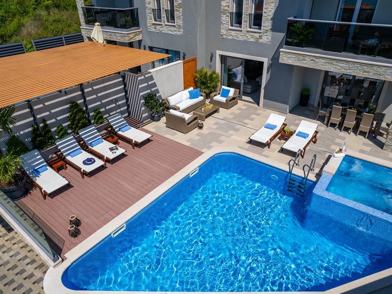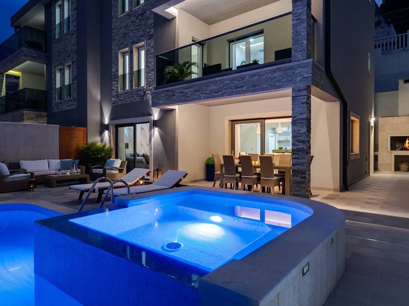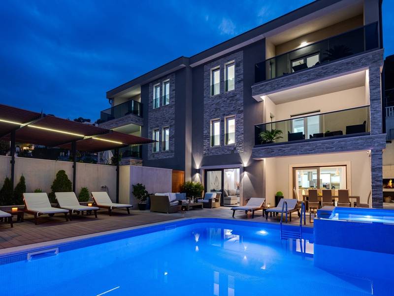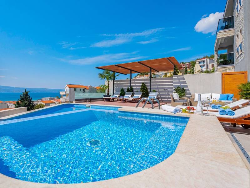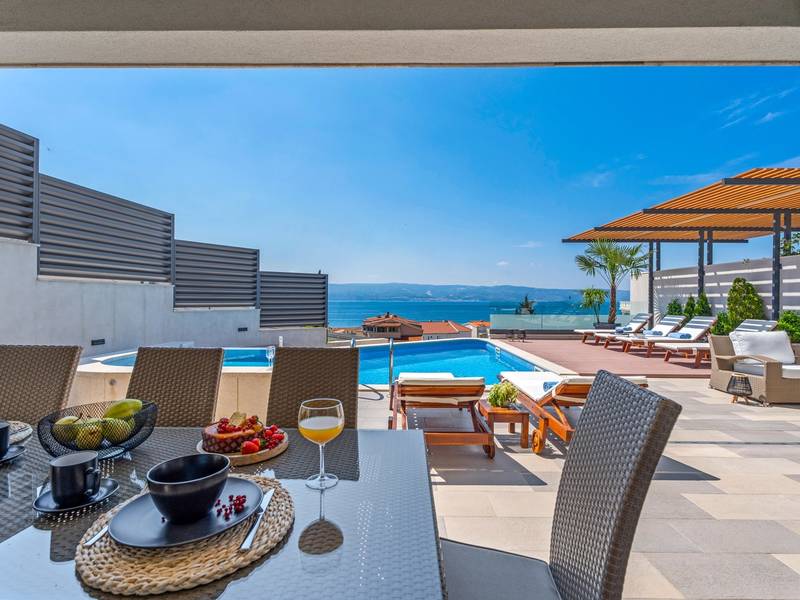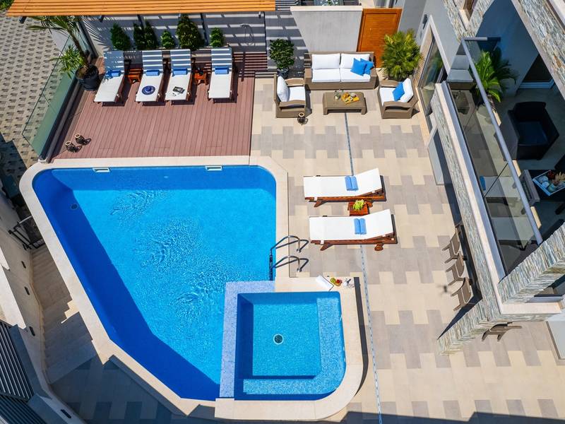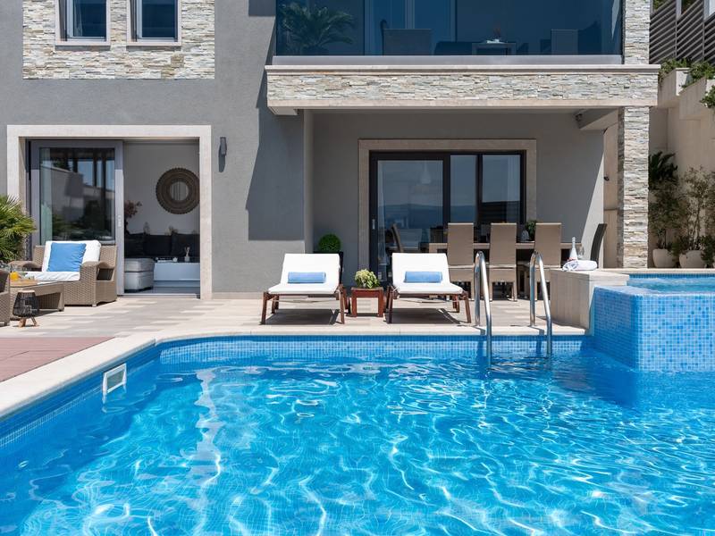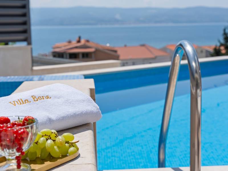 Villa Bane is een halfvrijstaand huis; beide huizen zijn eigendom van twee broers die lokaal wonen. Elke villa biedt plaats aan 10+2 gasten. Je hoeft je geen zorgen te maken, privacy is gegeven, zoals veel van onze gasten in het verleden hebben opgemerkt. De villa heeft een 32m2 verwarmd trapeziumvormig zwembad met een aangrenzende whirlpool met hydromassage en een zitbank voor 4 volwassenen, beide met gesynchroniseerde watertemperatuur voor ultieme ontspanning. Extra buitenruimte bevat een mooie overdekte eetgelegenheid, een prachtig gemeubileerd zonnedek en een zachte zithoek, die allemaal uitkijken over de zee. Er is ook een ingebouwde BBQ om de hoek, mogelijk ter ondersteuning van het idee van buiten leven. Villa Bane heeft twee verdiepingen, met vijf slaapkamers, een speelkamer, en in totaal 6 badkamers + 1 toilet. Het heeft verschillende balkons en terrassen, en een fitnessruimte in de kelder. Het is volledig omheind en heeft 3-4 afgesloten garageplaatsen, en het zwembad is discreet omheind, zodat je je privacy hebt. Villa Bane is volledig ingericht met 9 airco's en verwarming in het hele huis en alle 5 slaapkamers, een zwembad, een volledig uitgeruste keuken, een buitenbarbecue naast de ingang, een tv, gratis snelle Wi-Fi, en alle gemakken die je nodig hebt om dit je thuis weg van huis te maken. -Begane grond: Via de hoofdingang kom je in de ruime woon- en eetkamer met een uitgang naar het zwembad en uitzicht op zee. In de woonkamer heb je 2 A/C, een TV, uitgang naar het terras. Jij en je geliefden kunnen wegzakken in de comfortabele sofa's. De woonkamer staat in verbinding met de keuken en de eethoek, en ze zijn allemaal erg ruim. Er is een bijkeuken naast de keuken en ook een toilet op de begane grond. De grote en mooie keuken is volledig uitgerust met een koelkast/vriezer, vier-pits elektrisch fornuis, vaatwasser, potten en pannen, borden en bestek, koffiezetapparaat, broodrooster, waterkoker en magnetron. -Eerste verdieping: Slaapkamer nr.1 met een tweepersoonsbed 180*200, een complete badkamer met douche (en-suite). Het heeft een deur naar het buitenterras met uitzicht op zee (samen met slaapkamer nr. 2). Slaapkamer nr. 2 heeft twee eenpersoonsbedden van 90*200, die kunnen worden verbonden tot een tweepersoonsbed; het heeft een complete badkamer met een douche (en-suite). Er is een deur naar het buitenterras met uitzicht op zee (samen met slaapkamer nr. 1). Ruime speelkamer met tv, spelcomputer en speelgoed, een geweldige plek voor kinderen van alle leeftijden. Tweede verdieping: Slaapkamer nr. 3 met een tweepersoonsbed van 180*200, heeft een complete badkamer met een douche (en-suite). Het heeft een deur naar het buitenterras met uitzicht op zee (samen met slaapkamer nr. 4). Slaapkamer nr. 4 heeft een tweepersoonsbed 180*200, het heeft een complete badkamer met een douche (en-suite). Er is een deur naar het buitenterras met uitzicht op zee (samen met slaapkamer nr. 3). Slaapkamer nr. 5 heeft een tweepersoonsbed 180*200, een complete badkamer met bad (en-suite). Mogelijkheid om een babybedje bij te plaatsen. - In de kelder is er een leuke ruimte met een pooltafel en wat fitnessapparatuur, en er is ook een badkamer met een douche. In de garage staat een tennistafel - Tot uw beschikking is ook het aanbod om traditionele Dalmatische maaltijden voor u te laten bereiden. Vraag de eigenaar om de voorwaarden af te spreken. Extra services (niet inbegrepen) aanbevolen door ons agentschap Feriehome: - U kunt vanuit uw luie stoel een boodschappenpakket bestellen, dat op de afgesproken tijd bij uw villa wordt afgeleverd; - Geniet van een culinaire ervaring met een privé-kok in de villa die alles kan bereiden, van een romantisch diner tot een gezinsvriendelijk diner.- U kunt een in-villa massage krijgen met onze professionele masseuse die hun therapeutische vaardigheden kan tonen; - Krijg een gevoel voor de Adriatische Zee en wat zeilervaring met een zeilboot (+schipper); - Maak een boottocht om de Midden-Dalmatische kust en eilanden te verkennen...voor meer informatie staan we tot uw beschikking en helpen u graag. We kijken uit naar uw aanvraag, uw Feriehome agentschapsteam :)