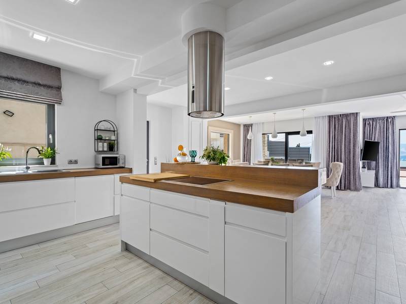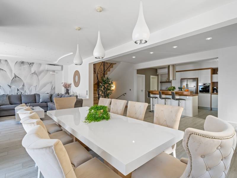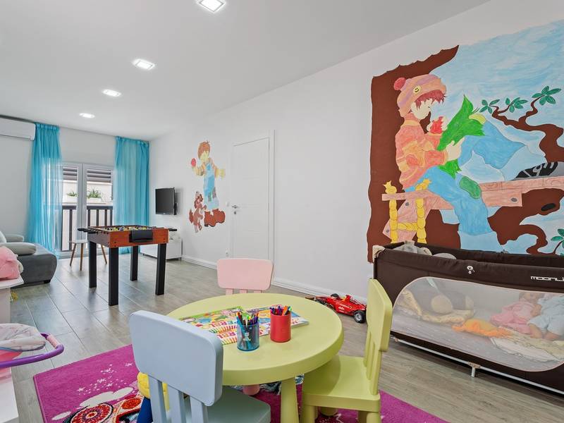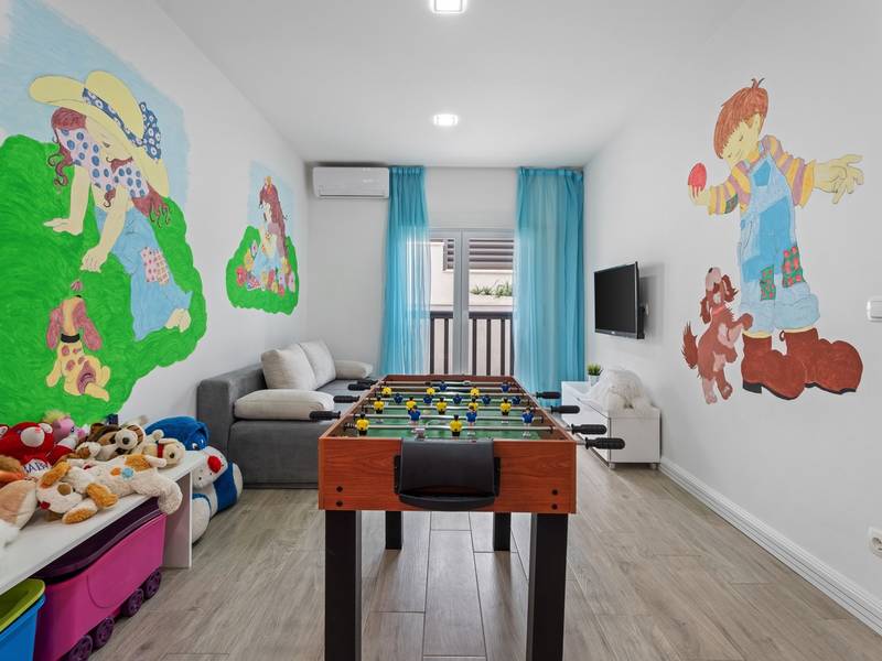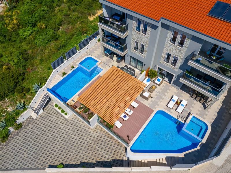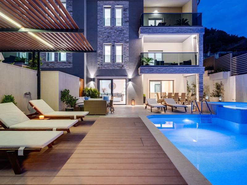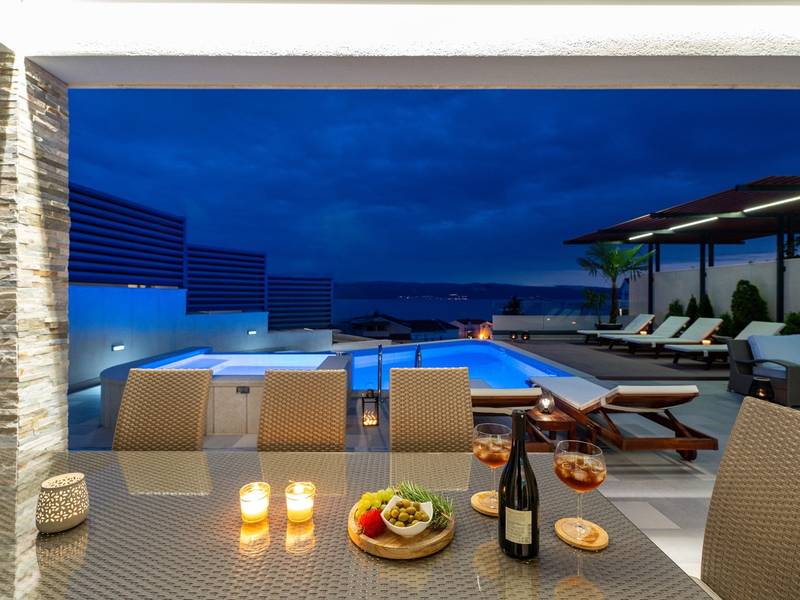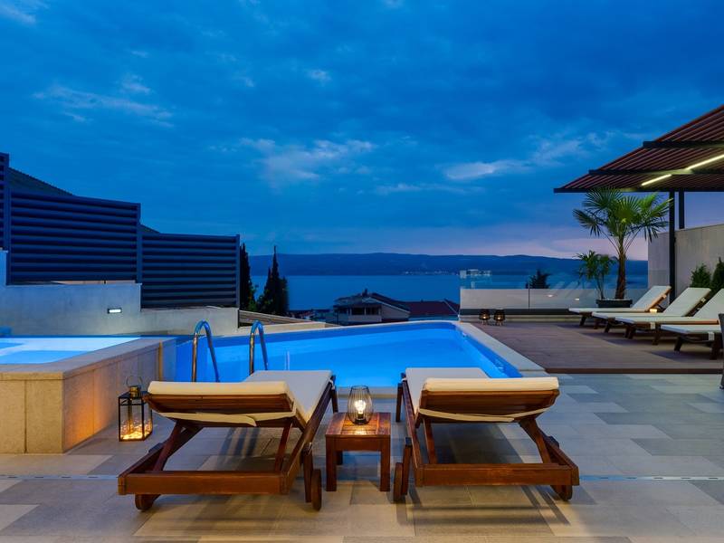 Villa Bane is een halfvrijstaand huis; beide huizen zijn eigendom van twee broers die lokaal wonen. Elke villa biedt plaats aan 10+2 gasten. Je hoeft je geen zorgen te maken, privacy is gegeven, zoals veel van onze gasten in het verleden hebben opgemerkt. De villa heeft een 32m2 verwarmd trapeziumvormig zwembad met een aangrenzende whirlpool met hydromassage en een zitbank voor 4 volwassenen, beide met gesynchroniseerde watertemperatuur voor ultieme ontspanning. Extra buitenruimte bevat een mooie overdekte eetgelegenheid, een prachtig gemeubileerd zonnedek en een zachte zithoek, die allemaal uitkijken over de zee. Er is ook een ingebouwde BBQ om de hoek, mogelijk ter ondersteuning van het idee van buiten leven. Villa Bane heeft twee verdiepingen, met vijf slaapkamers, een speelkamer, en in totaal 6 badkamers + 1 toilet. Het heeft verschillende balkons en terrassen, en een fitnessruimte in de kelder. Het is volledig omheind en heeft 3-4 afgesloten garageplaatsen, en het zwembad is discreet omheind, zodat je je privacy hebt. Villa Bane is volledig ingericht met 9 airco's en verwarming in het hele huis en alle 5 slaapkamers, een zwembad, een volledig uitgeruste keuken, een buitenbarbecue naast de ingang, een tv, gratis snelle Wi-Fi, en alle gemakken die je nodig hebt om dit je thuis weg van huis te maken. -Begane grond: Via de hoofdingang kom je in de ruime woon- en eetkamer met een uitgang naar het zwembad en uitzicht op zee. In de woonkamer heb je 2 A/C, een TV, uitgang naar het terras. Jij en je geliefden kunnen wegzakken in de comfortabele sofa's. De woonkamer staat in verbinding met de keuken en de eethoek, en ze zijn allemaal erg ruim. Er is een bijkeuken naast de keuken en ook een toilet op de begane grond. De grote en mooie keuken is volledig uitgerust met een koelkast/vriezer, vier-pits elektrisch fornuis, vaatwasser, potten en pannen, borden en bestek, koffiezetapparaat, broodrooster, waterkoker en magnetron. -Eerste verdieping: Slaapkamer nr.1 met een tweepersoonsbed 180*200, een complete badkamer met douche (en-suite). Het heeft een deur naar het buitenterras met uitzicht op zee (samen met slaapkamer nr. 2). Slaapkamer nr. 2 heeft twee eenpersoonsbedden van 90*200, die kunnen worden verbonden tot een tweepersoonsbed; het heeft een complete badkamer met een douche (en-suite). Er is een deur naar het buitenterras met uitzicht op zee (samen met slaapkamer nr. 1). Ruime speelkamer met tv, spelcomputer en speelgoed, een geweldige plek voor kinderen van alle leeftijden. Tweede verdieping: Slaapkamer nr. 3 met een tweepersoonsbed van 180*200, heeft een complete badkamer met een douche (en-suite). Het heeft een deur naar het buitenterras met uitzicht op zee (samen met slaapkamer nr. 4). Slaapkamer nr. 4 heeft een tweepersoonsbed 180*200, het heeft een complete badkamer met een douche (en-suite). Er is een deur naar het buitenterras met uitzicht op zee (samen met slaapkamer nr. 3). Slaapkamer nr. 5 heeft een tweepersoonsbed 180*200, een complete badkamer met bad (en-suite). Mogelijkheid om een babybedje bij te plaatsen. - In de kelder is er een leuke ruimte met een pooltafel en wat fitnessapparatuur, en er is ook een badkamer met een douche. In de garage staat een tennistafel - Tot uw beschikking is ook het aanbod om traditionele Dalmatische maaltijden voor u te laten bereiden. Vraag de eigenaar om de voorwaarden af te spreken. Extra services (niet inbegrepen) aanbevolen door ons agentschap Feriehome: - U kunt vanuit uw luie stoel een boodschappenpakket bestellen, dat op de afgesproken tijd bij uw villa wordt afgeleverd; - Geniet van een culinaire ervaring met een privé-kok in de villa die alles kan bereiden, van een romantisch diner tot een gezinsvriendelijk diner.- U kunt een in-villa massage krijgen met onze professionele masseuse die hun therapeutische vaardigheden kan tonen; - Krijg een gevoel voor de Adriatische Zee en wat zeilervaring met een zeilboot (+schipper); - Maak een boottocht om de Midden-Dalmatische kust en eilanden te verkennen...voor meer informatie staan we tot uw beschikking en helpen u graag. We kijken uit naar uw aanvraag, uw Feriehome agentschapsteam :)