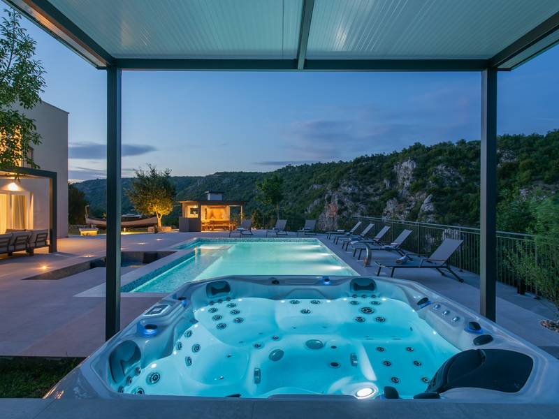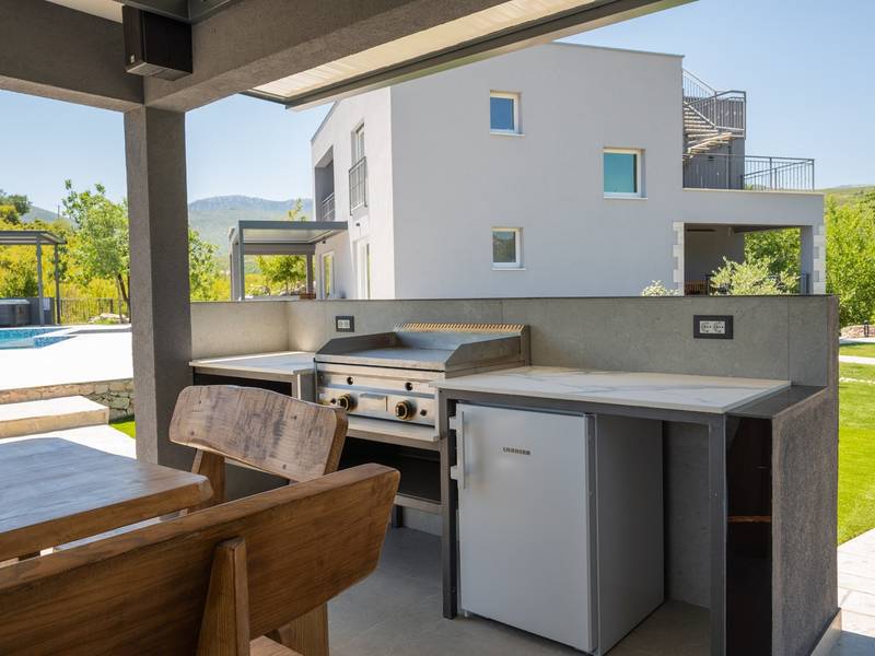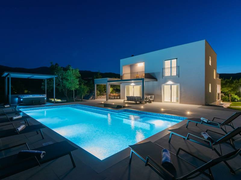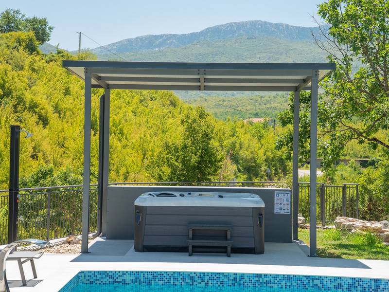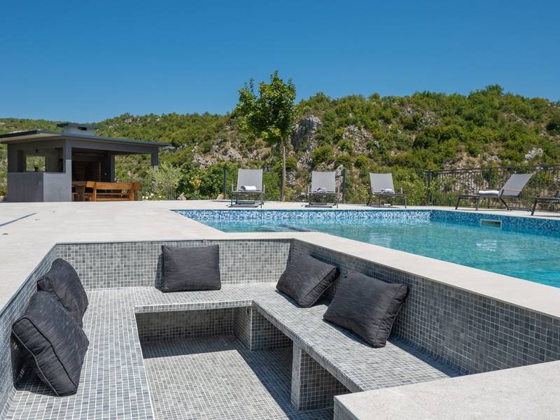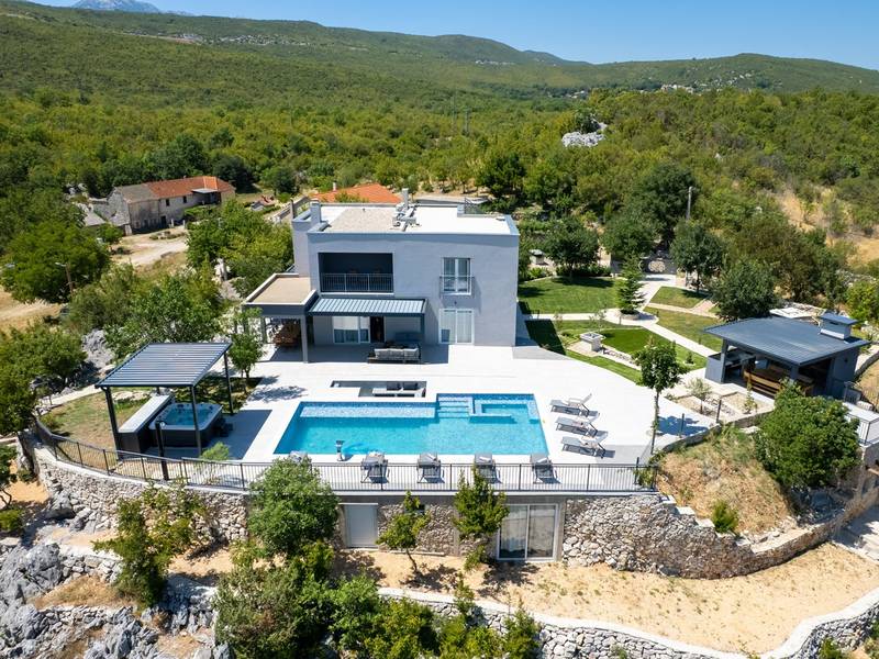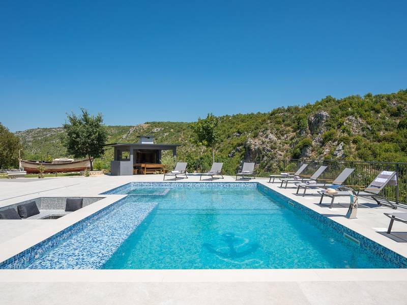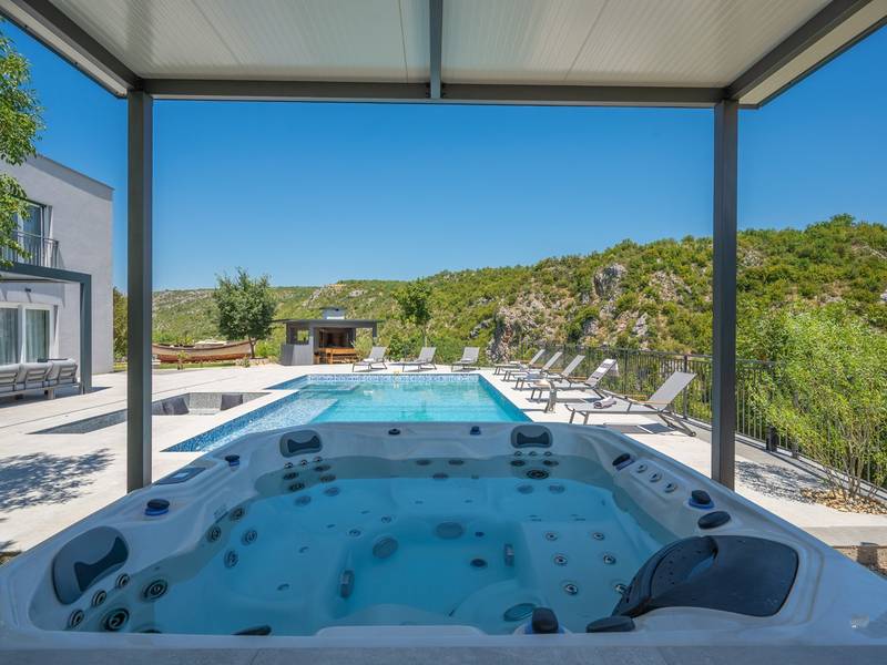 Geniet van het paradijs met een verwarmd zwembad van 66 m², een ontspannend bubbelbad, PS5 en tafeltennis, op slechts 200 meter van het prachtige rivierstrand! Villa River Rose heeft een verwarmd zwembad van 66 m², een bubbelbad, 4 slaapkamers met eigen badkamer, PS5 en tafeltennis, allemaal op slechts 200 meter van het rivierstrand. Deze moderne en stijlvolle villa biedt een hoogwaardig ingericht interieur van 230 m², gelegen op een omheind privéperceel van 1900 m², uitgerust met alles wat moderne gasten nodig hebben voor een comfortabel verblijf, waaronder gratis WiFi en volledige airconditioning. Het is geschikt voor maximaal 8 gasten, perfect voor wie op zoek is naar een ontspannen uitje of een avontuurlijke vakantie. Met de nabijgelegen Cetina rivier kun je genieten van activiteiten zoals raften of een heerlijke familie picknick op het rivierstrand. Hier is een gedetailleerde beschrijving van wat exclusief voor jou wordt aangeboden: THE OUTDOORS beschikt over een 66 m² groot verwarmd privé zwembad met een elektrolyse filtersysteem dat zacht is voor je huid. Het zwembad is uitgerust met een geiser, waterval en hydromassagestralen, en heeft twee dieptes: 1,3 m diep op 5m en 1,5 m diep op 6m. Er is een overdekte jacuzzi (bubbelbad) voor 5 personen, een zonnedek met 8 loungestoelen, een buitendouche en een overdekte eethoek met zowel traditionele BBQ's als BBQ's op gas, een koelkast, gootsteen en luidsprekers voor uw plezier. Voor familieplezier is er een tafeltennistafel buiten en een grasveld waar de kleintjes kunnen spelen. Een extra loungehoek en een andere eettafel voor buiten zijn handig gelegen naast de woonkamer. Terwijl je van het buitenleven geniet, heb je de mogelijkheid om de serene en ongerepte natuurlijke omgeving te ervaren, compleet met een houten bank op het privéperceel dat een spectaculair uitzicht op de rivier biedt. DE BEGANE GROND (120 m²) omvat een volledig van airconditioning voorziene woonkamer met een comfortabele bank, open haard en flatscreen-tv met PlayStation 5, samen met een stijlvolle eethoek en een volledig uitgeruste keuken met een vaatwasser, koelkast, magnetron, espressomachine, Nespressocapsule koffiezetapparaat, broodrooster, waterkoker en meer, plus een kookeiland. De woon/eetkamer staat in verbinding met de buitenruimte met twee schuifdeuren die een prachtig uitzicht bieden op het zwembad en de natuurlijke omgeving. Er is ook een apart toilet en een wasruimte uitgerust met een wasmachine, droger en strijkfaciliteiten. - Slaapkamer nr. 4 (17 m²) heeft een en-suite badkamer met een douche (5,5 m²), een kingsize bed (180 x 200 cm), een smart tv en schuifdeuren naar het zwembad.De EERSTE VERDIEPING bestaat uit: - Slaapkamer nr. 1 (17 m²) met een en-suite badkamer met douche (5,5 m²), een kingsize bed (180 x 200 cm), airconditioning, een smart tv, een balkon en uitzicht op het zwembad. - Slaapkamer nr. 2 (17 m²) met een en-suite badkamer met douche (5,5 m²), een kingsize bed (180 x 200 cm), airconditioning, een smart tv, een balkon en uitzicht op het zwembad. 2 (17 m²) met een eigen badkamer met douche (5 m²), een kingsize bed (180 x 200 cm), airconditioning, een smart-tv en een balkon met uitzicht op de natuurlijke omgeving. - Slaapkamer nr. 3 (17 m²) met een eigen badkamer met twee wastafels en een douche (5,5 m²), een kingsize bed (180 x 200 cm), airconditioning, een smart-tv en een balkon met uitzicht op de natuurlijke omgeving.5 m²), een kingsize bed (180 x 200 cm), airconditioning, een smart tv en een balkon met uitzicht op de natuurlijke omgeving. Villa River Rose is de perfecte accommodatie voor een familiegroep of een groep vrienden die op zoek zijn naar een ontspannen en comfortabel toevluchtsoord in een ongerepte omgeving met vriendelijke bewoners.