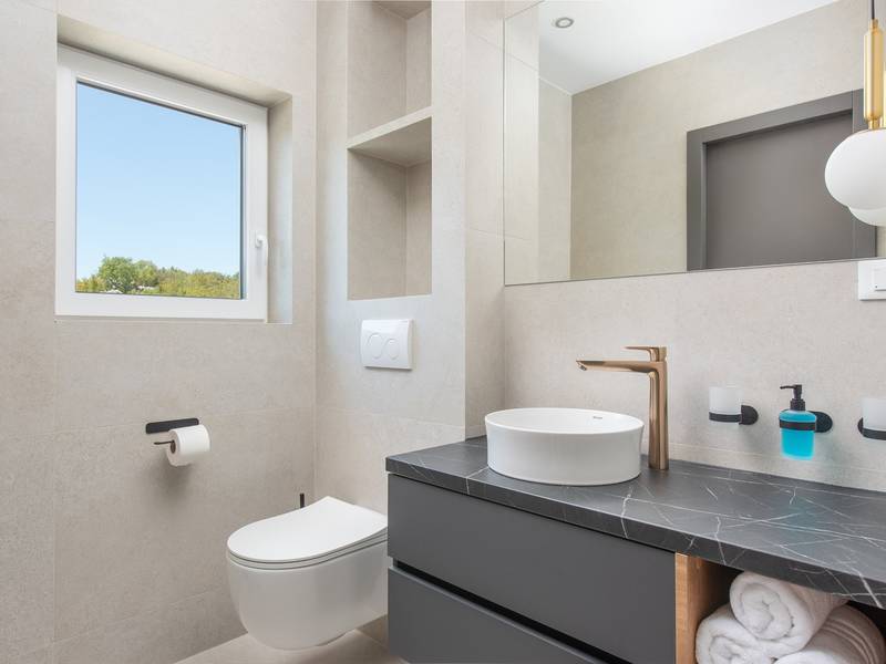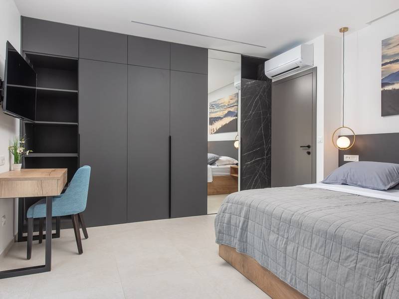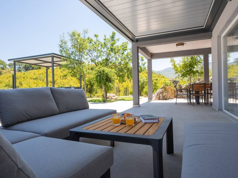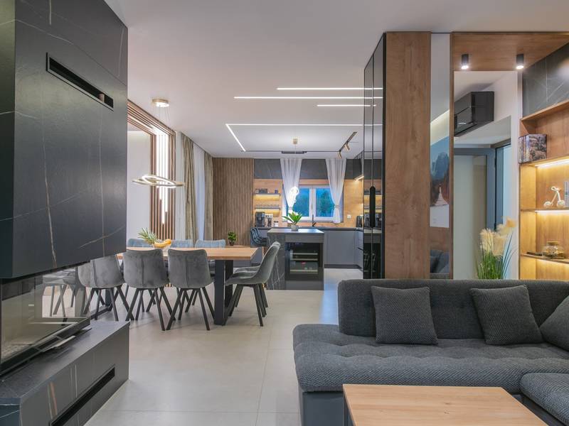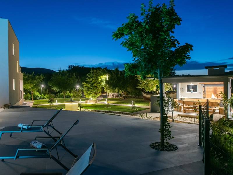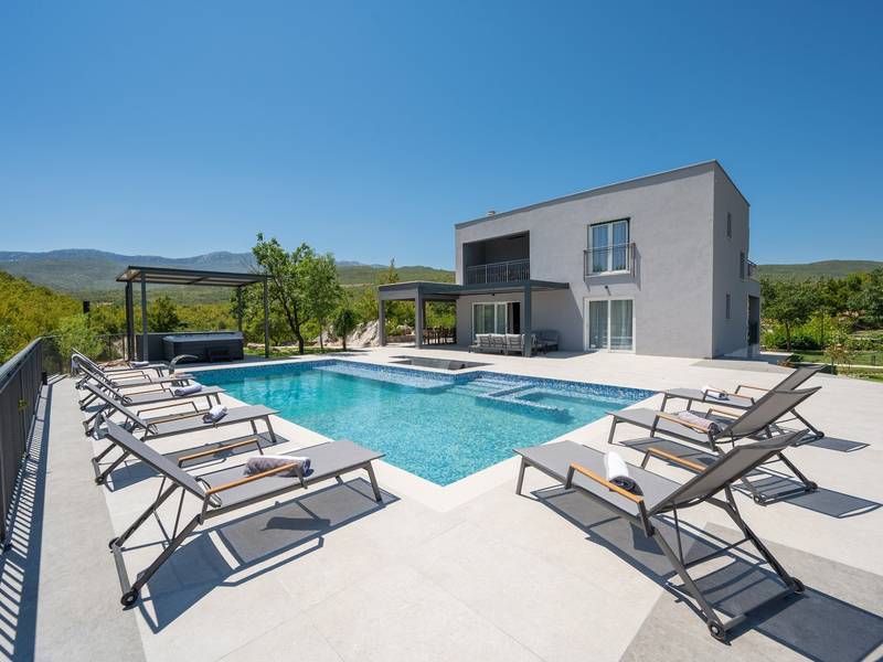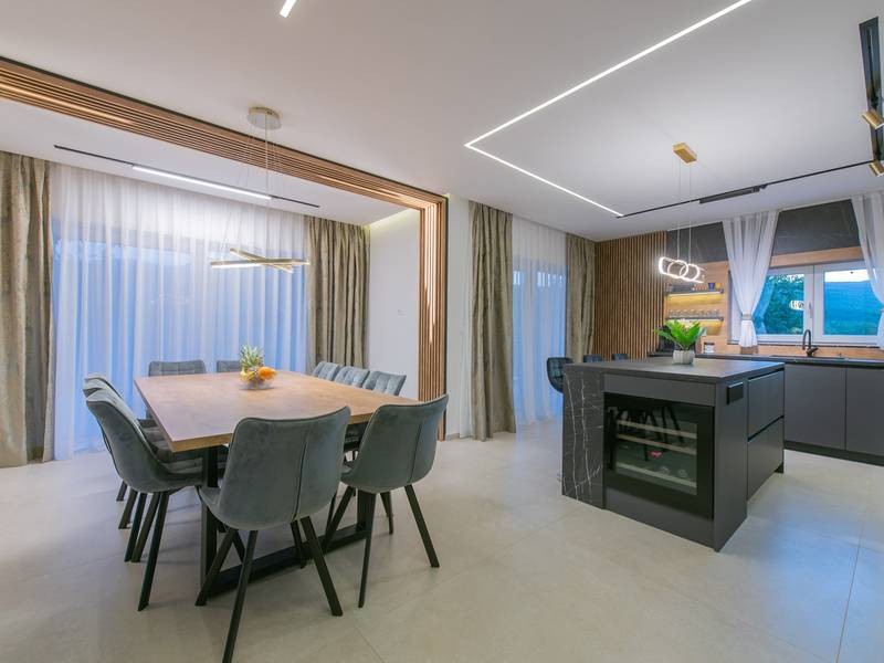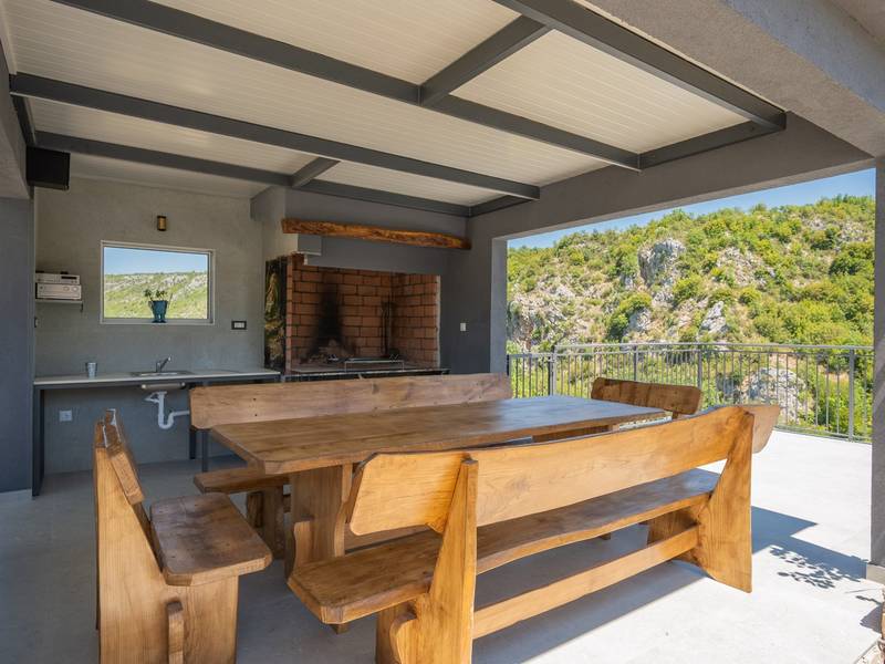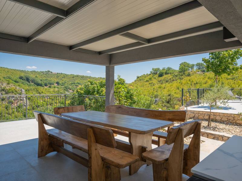 Geniet van het paradijs met een verwarmd zwembad van 66 m², een ontspannend bubbelbad, PS5 en tafeltennis, op slechts 200 meter van het prachtige rivierstrand! Villa River Rose heeft een verwarmd zwembad van 66 m², een bubbelbad, 4 slaapkamers met eigen badkamer, PS5 en tafeltennis, allemaal op slechts 200 meter van het rivierstrand. Deze moderne en stijlvolle villa biedt een hoogwaardig ingericht interieur van 230 m², gelegen op een omheind privéperceel van 1900 m², uitgerust met alles wat moderne gasten nodig hebben voor een comfortabel verblijf, waaronder gratis WiFi en volledige airconditioning. Het is geschikt voor maximaal 8 gasten, perfect voor wie op zoek is naar een ontspannen uitje of een avontuurlijke vakantie. Met de nabijgelegen Cetina rivier kun je genieten van activiteiten zoals raften of een heerlijke familie picknick op het rivierstrand. Hier is een gedetailleerde beschrijving van wat exclusief voor jou wordt aangeboden: THE OUTDOORS beschikt over een 66 m² groot verwarmd privé zwembad met een elektrolyse filtersysteem dat zacht is voor je huid. Het zwembad is uitgerust met een geiser, waterval en hydromassagestralen, en heeft twee dieptes: 1,3 m diep op 5m en 1,5 m diep op 6m. Er is een overdekte jacuzzi (bubbelbad) voor 5 personen, een zonnedek met 8 loungestoelen, een buitendouche en een overdekte eethoek met zowel traditionele BBQ's als BBQ's op gas, een koelkast, gootsteen en luidsprekers voor uw plezier. Voor familieplezier is er een tafeltennistafel buiten en een grasveld waar de kleintjes kunnen spelen. Een extra loungehoek en een andere eettafel voor buiten zijn handig gelegen naast de woonkamer. Terwijl je van het buitenleven geniet, heb je de mogelijkheid om de serene en ongerepte natuurlijke omgeving te ervaren, compleet met een houten bank op het privéperceel dat een spectaculair uitzicht op de rivier biedt. DE BEGANE GROND (120 m²) omvat een volledig van airconditioning voorziene woonkamer met een comfortabele bank, open haard en flatscreen-tv met PlayStation 5, samen met een stijlvolle eethoek en een volledig uitgeruste keuken met een vaatwasser, koelkast, magnetron, espressomachine, Nespressocapsule koffiezetapparaat, broodrooster, waterkoker en meer, plus een kookeiland. De woon/eetkamer staat in verbinding met de buitenruimte met twee schuifdeuren die een prachtig uitzicht bieden op het zwembad en de natuurlijke omgeving. Er is ook een apart toilet en een wasruimte uitgerust met een wasmachine, droger en strijkfaciliteiten. - Slaapkamer nr. 4 (17 m²) heeft een en-suite badkamer met een douche (5,5 m²), een kingsize bed (180 x 200 cm), een smart tv en schuifdeuren naar het zwembad.De EERSTE VERDIEPING bestaat uit: - Slaapkamer nr. 1 (17 m²) met een en-suite badkamer met douche (5,5 m²), een kingsize bed (180 x 200 cm), airconditioning, een smart tv, een balkon en uitzicht op het zwembad. - Slaapkamer nr. 2 (17 m²) met een en-suite badkamer met douche (5,5 m²), een kingsize bed (180 x 200 cm), airconditioning, een smart tv, een balkon en uitzicht op het zwembad. 2 (17 m²) met een eigen badkamer met douche (5 m²), een kingsize bed (180 x 200 cm), airconditioning, een smart-tv en een balkon met uitzicht op de natuurlijke omgeving. - Slaapkamer nr. 3 (17 m²) met een eigen badkamer met twee wastafels en een douche (5,5 m²), een kingsize bed (180 x 200 cm), airconditioning, een smart-tv en een balkon met uitzicht op de natuurlijke omgeving.5 m²), een kingsize bed (180 x 200 cm), airconditioning, een smart tv en een balkon met uitzicht op de natuurlijke omgeving. Villa River Rose is de perfecte accommodatie voor een familiegroep of een groep vrienden die op zoek zijn naar een ontspannen en comfortabel toevluchtsoord in een ongerepte omgeving met vriendelijke bewoners.