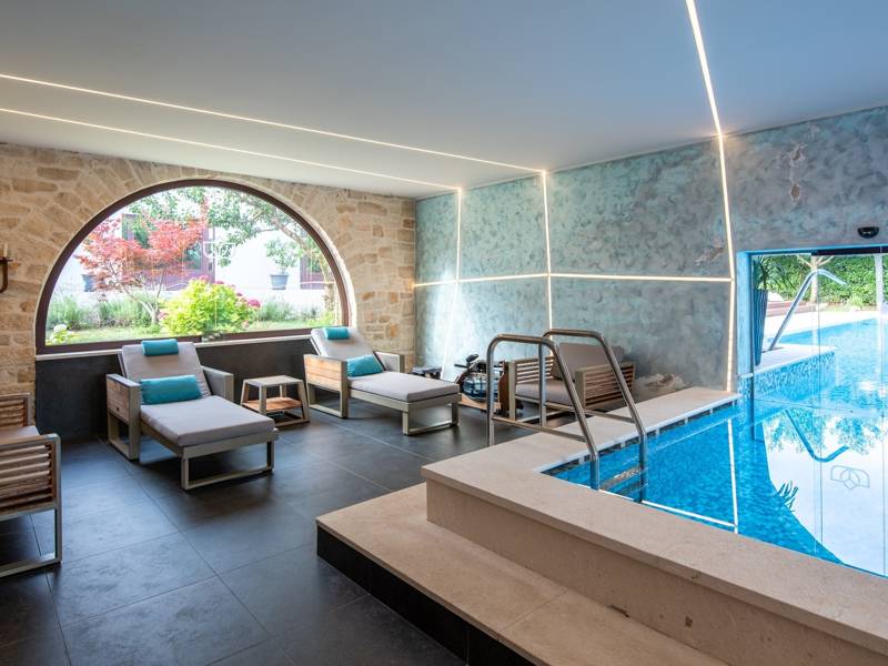 Een groene oase van ontspanning en genot wacht op je in de elegante Villa LV in het noorden van Istrië! Deze moderne villa met een ruime tuin is de perfecte vakantieplek voor een grote familie of een groep vrienden, want het is geschikt voor maximaal 8 personen. Deze volledig van airconditioning voorziene villa is prachtig ingericht en biedt alle comfort van een modern huis. Op de bovenverdieping van het huis staan vier slaapkamers met tweepersoonsbedden tot je beschikking, elk met een eigen badkamer. Op de begane grond van de villa vind je een moderne keuken met een eetkamer voor 10 personen, evenals een ruime woonkamer met een open haard, perfect voor gezellige avondbijeenkomsten. Er is ook een sauna, een fitnessruimte, een wijnkelder en een binnenzwembad dat verbonden is met het verwarmde buitenzwembad. Op de ruime binnenplaats is het eerste wat je opvalt zeker het ruime verwarmde zwembad met bijbehorende ligbedden, om de hele dag te genieten in de warme mediterrane zon. In de tuin vind je ook een buitenkeuken met barbecue en een terras met een tafel voor 10 personen, evenals een loungehoek om in alle rust van je ochtendkoffie te nippen. Op het dak van de villa is er een zonnedek en een jacuzzi, terwijl je in het groen van de tuin een speeltuin en een trampoline vindt.