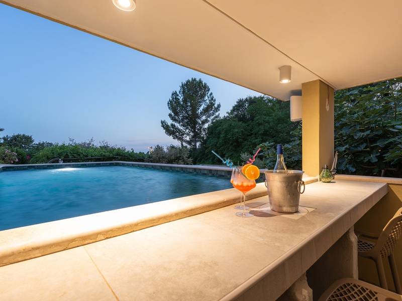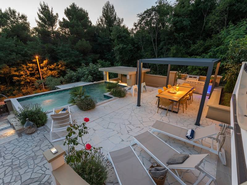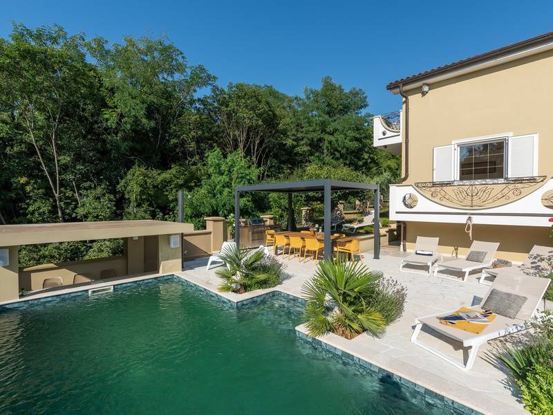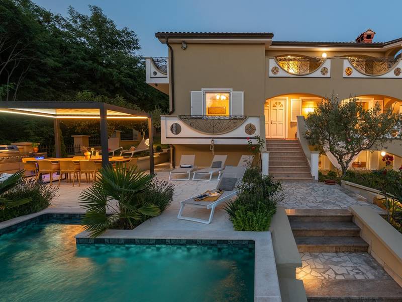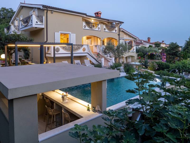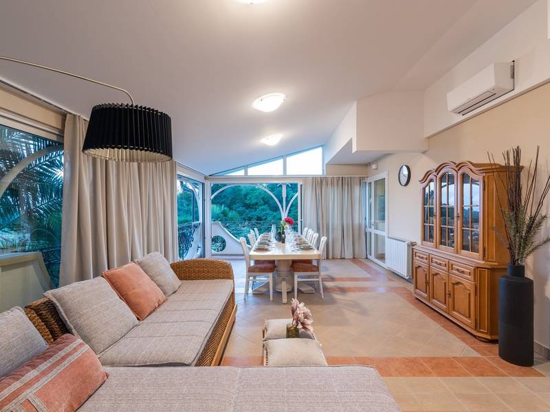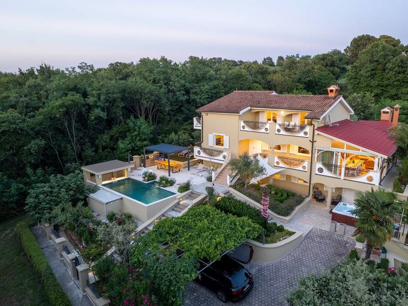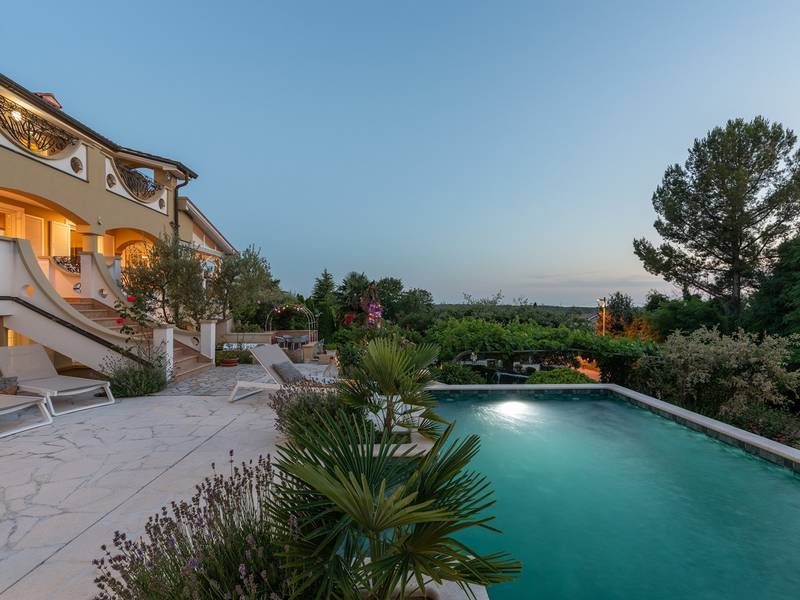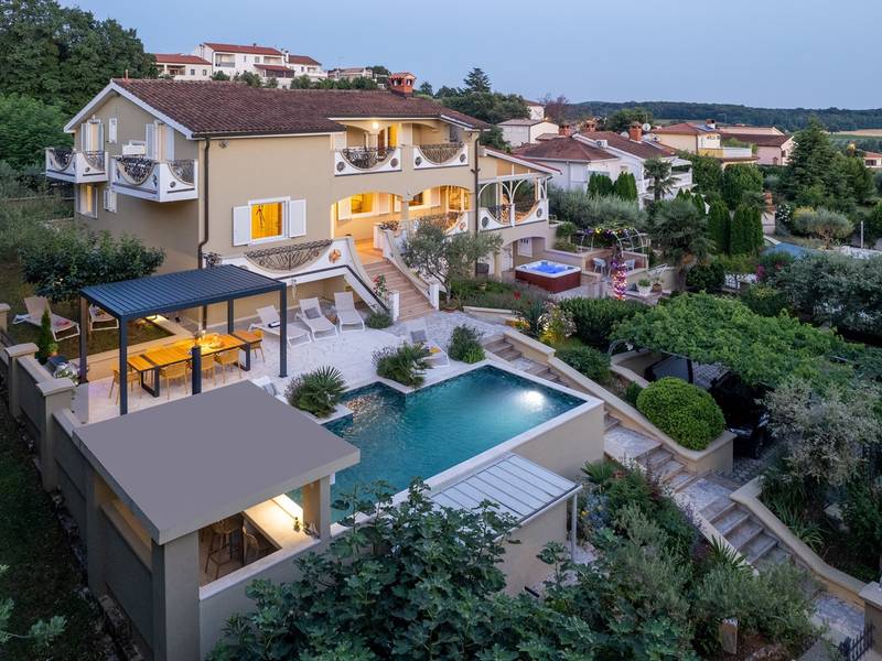 Welkom in ons prachtige vakantiehuis gelegen in het pittoreske Fuškulin, Istrië. Deze unieke villa onderscheidt zich door de prachtig aangelegde mediterrane tuin, die rijk is aan diverse planten en de sfeer van een arboretum creëert. De tuin omringt het zwembad en de hele omgeving van het huis en zorgt voor rust en privacy. Villa Santa Sofia heeft vijf ruime slaapkamers, elk met een eigen balkon, waardoor gasten een eigen hoekje hebben om te ontspannen. Twee grote woonkamers bieden genoeg ruimte voor gezamenlijke momenten en gezelligheid, terwijl het gesloten terras een prachtig uitzicht op zee biedt. Voor extra luxe is er ook een groot dakterras met een panoramisch uitzicht op zee, ideaal om te zonnebaden of 's avonds cocktails te drinken. De tuin van het huis is volledig omheind, waardoor veiligheid en privacy voor alle gasten gegarandeerd is. Deze villa is de perfecte plek voor gezinnen of groepen vrienden die op zoek zijn naar een ontspannen vakantie in het hart van Istrië, met de nadruk op natuurlijke schoonheid en luxe. Boek je verblijf en geniet van de charmes van de mediterrane tuin en het prachtige uitzicht op zee. Stranden liggen op 5 km afstand, winkels op 1 km, restaurants op 1 km en de stad Poreč op 8 km. Boek je verblijf in dit prachtige huis en beleef een onvergetelijke vakantie in het hart van Istrië.