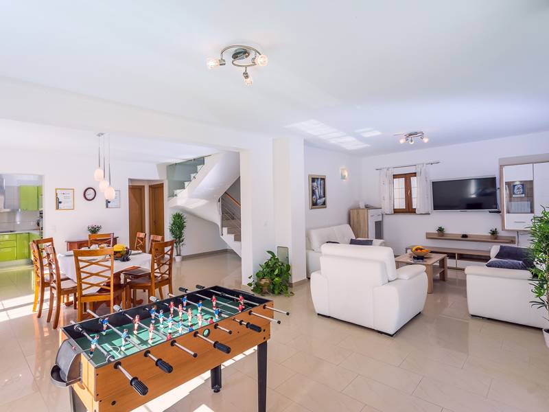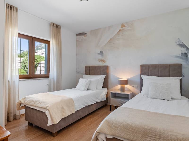 Villa Calma - Huis met 4 slaapkamers met verwarmd zwembad, jacuzzi en Finse sauna Villa Calma is een modern vakantiehuis gebouwd in traditioneel Dalmatische stijl, gelegen in het rustige dorpje Gata in de buurt van Omiš. Het pand biedt volledige privacy, een praktische indeling voor gezinnen of groepen, en een scala aan wellness-en recreatieve voorzieningen. Het pand beslaat ongeveer 600 vierkante meter en is volledig omheind met traditionele stenen muren, aangelegd met sierplanten en mediterraan groen. De buitenruimte bevat een verwarmd zwembad van 32 vierkante meter (8 x 4 meter, 1,5 meter diep), operationeel van 1 mei tot 1 november. Naast het zwembad is er een jacuzzi en een Finse sauna. Het terras bij het zwembad is ingericht met zes ligbedden, twee parasols en een buitendouche. Een traditionele stenen barbecue met een overdekte eethoek biedt plaats aan maximaal 10 personen. Aan de zuidkant van de villa is er een grasveld van 60 m² met schommels, waar kinderen veilig kunnen spelen. De villa biedt ook een tafeltennistafel voor extra vermaak en recreatie voor gasten van alle leeftijden. Privéparkeergelegenheid voor maximaal drie voertuigen is beschikbaar op het terrein, met toegang via een verharde lokale weg. Het interieur van Villa Calma beslaat ongeveer 155 vierkante meter en is verdeeld over twee verdiepingen. Op de begane grond is er een woonkamer met airconditioning en directe toegang tot het zwembadterras, ingericht met een bankstel en een flatscreen tv. De eethoek, geïntegreerd in de woonkamer, biedt plaats aan 10 personen. De keuken is volledig uitgerust met al het nodige kookgerei en keukengerei. Op dit niveau bevinden zich ook: Slaapkamer nr.1 - twee eenpersoonsbedden (90x200 cm), evenals een familiebadkamer met een douche, wastafel en toilet. De eerste verdieping bestaat uit drie slaapkamers: Slaapkamer nr.2 - kingsize bed (180x200 cm), en-suite badkamer met douche, airconditioning en toegang tot een balkon. Slaapkamer nr.3 - kingsize bed (180x200 cm), eigen badkamer met douche, airconditioning en toegang tot een balkon. Slaapkamer nr.4 - kingsize bed (180x200 cm), eigen badkamer met bad en airconditioning. Een extra slaapbank is beschikbaar voor maximaal twee personen. Alle badkamers zijn uitgerust met standaard sanitair, handdoeken en haardrogers. De villa is gunstig gelegen op 7 km van de zee en de stad Omiš, met restaurants, supermarkten, historische bezienswaardigheden en zand- en kiezelstranden langs de Adriatische kust. De dichtstbijzijnde winkel ligt op 500 meter afstand, terwijl het dichtstbijzijnde restaurant (één van de drie in het dorp) en de bar op ongeveer 1 kilometer van de woning liggen. De Cetina rivier ligt op 6 km afstand en biedt een verscheidenheid aan buitenactiviteiten zoals raften, kajakken, rotsklimmen en een ziplinepark boven de canyon. De stad Split ligt op 25 km van de villa en de luchthaven van Split ligt op ongeveer 45 km afstand. De omgeving biedt veel buitenactiviteiten en avontuurlijke activiteiten, waaronder wandelen en fietsen op nabijgelegen bergpaden. De villa is volledig voorzien van airconditioning (behalve de slaapkamer op de begane grond). Gratis Wi-Fi is beschikbaar in het hele pand. Verwarming wordt geleverd via elektrische systemen en airconditioning units, en zwembadverwarming is seizoensgebonden beschikbaar. Tot de veiligheidsvoorzieningen behoren een brandblusser, rookmelder, kluis en buitenverlichting. Huisdieren zijn niet toegestaan en binnenshuis is roken verboden. De maximale bezetting is 10 personen. De minimale verblijfsduur hangt af van het seizoen. Inchecken is mogelijk vanaf 16:00 uur, en uitchecken tot 10:00 uur. Het onderhoud van het zwembad en de tuin is inbegrepen. De locatie is ideaal voor gasten die op zoek zijn naar een rustige omgeving met gemakkelijke toegang tot de natuur, de zee en een breed scala aan recreatieve mogelijkheden. Let op: Het verwarmde zwembad is niet beschikbaar van 1 november 2025. tot 1 mei 2026.