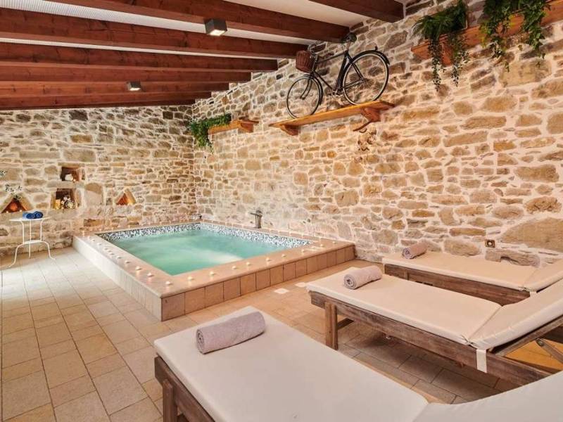 Rust uit en laad op in de mooie Villa Katarina Gračišće met een rustieke flair in een dorpje op een heuvel in centraal Istrië! Leer het schilderachtige platteland kennen en geniet ervan door je vakantie door te brengen met familie en vrienden in de charmante huisdiervriendelijke villa die 400 jaar oud is. Met een traditionele inrichting en stenen muren belooft de van airconditioning voorziene villa een unieke vakantie-ervaring met de luxe van een modern huis. Er zijn 3 comfortabele slaapkamers, een volledig uitgeruste keuken en 3 badkamers met een douche. Voor puur plezier is er ook een overdekte wellnessruimte met een hydromassagebad en een sauna. De buitenruimte biedt ook een geweldige plek om te ontspannen en te genieten van het gezelschap van je favoriete mensen. Er is een groot verwarmd zwembad met verschillende ligstoelen, waar je je kunt afdrogen na een duik of gewoon kunt genieten van de zon. Daarnaast kun je gebruik maken van de barbecue in de buitenlucht en een heerlijke maaltijd delen op het terras naast het zwembad. Deze authentieke Istrische villa ligt in Gračišće, een dorp op een heuvel niet ver van de stad Pazin in het hart van het Istrische schiereiland. Rupa, de belangrijkste grensovergang tussen Kroatië en Slovenië, ligt op ongeveer 70 km afstand, terwijl de luchthaven van Pula in minder dan een uur te bereiken is vanaf Gračišće (50 km). Het dorp ligt vlakbij het natuurpark Učka, terwijl het dichtstbijzijnde strand iets meer dan 20 km verderop ligt aan de oostkust van Istrië.