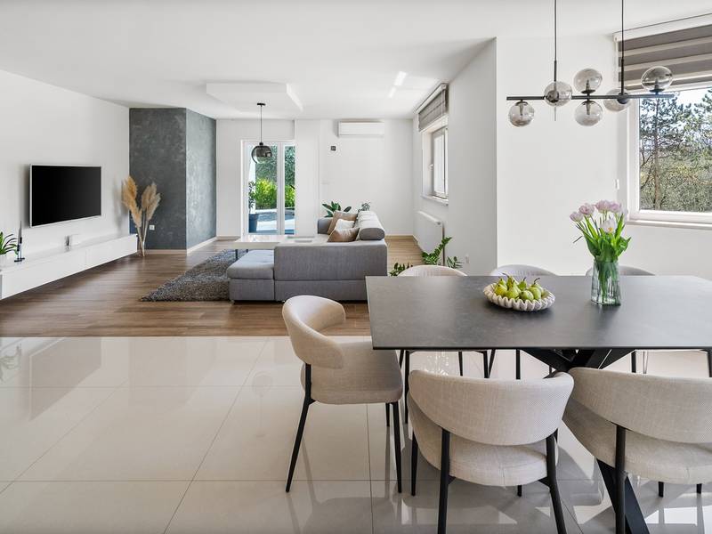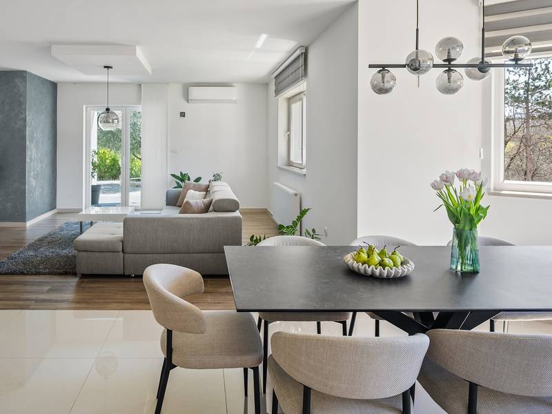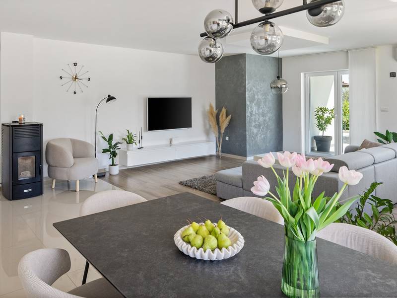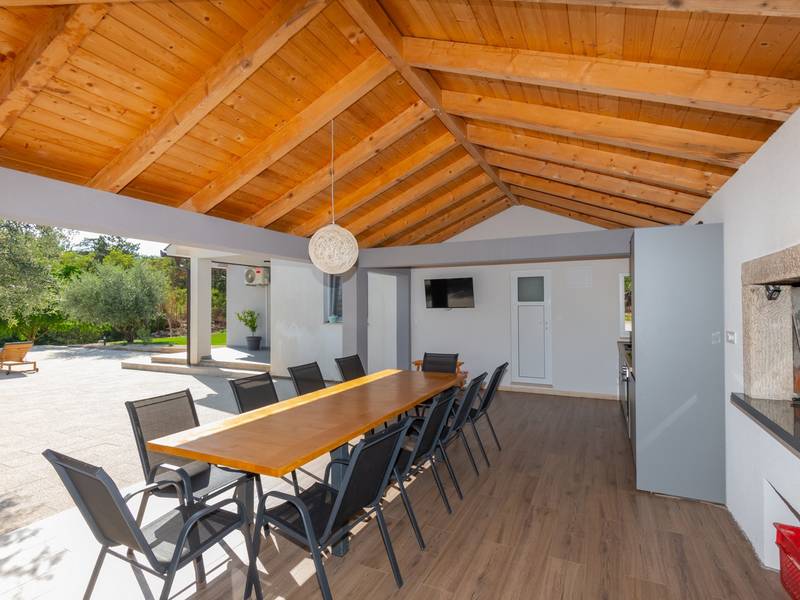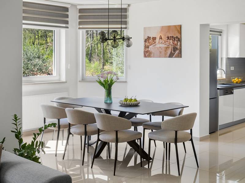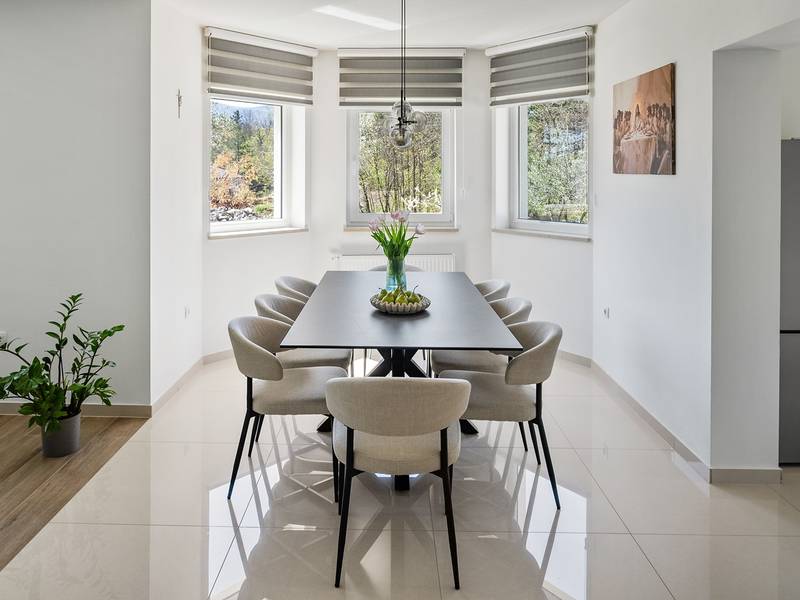Ervaar het ultieme toevluchtsoord met vier ruime slaapkamers, een prachtig overloopzwembad van 58 m², een charmante zomerkeuken om heerlijk buiten te eten, een mediaruimte met een PS5 voor entertainment, tafeltennis in de buitenlucht voor familieplezier en absolute privacy te midden van weelderig groene sereniteit voor een groep van 8+2. Welkom in Villa Green Escape, een prachtige villa met 4 slaapkamers ontworpen voor comfort en ontspanning, genesteld op een royaal privéperceel van 3000 m² in het rustige dorpje Grubine - Ivanbegovina. Dit betoverende verblijf biedt absolute privacy voor maximaal 8+2 gasten en beschikt over een luxueus overloopzwembad van 58 m², een mediaruimte en talloze voorzieningen voor een zorgeloze vakantie met het hele gezin. BUITEN De buitenruimte is een ware oase, met als hoogtepunt een spectaculair overloopzwembad van 58 m². Het zwembad heeft een ondiep gedeelte van 5m bij 3m met een diepte van 0,5m, waardoor het veilig is voor de jongste familieleden. Het hoofdgedeelte van het zwembad is 9,5m lang en 4,5m breed, met een diepte van 1,5m, waardoor er voldoende ruimte is voor iedereen om te ontspannen en plezier te hebben. Rondom het zwembad ligt een zonneterras met zes comfortabele ligstoelen, parasols en een buitendouche, waardoor een perfecte omgeving voor ontspanning ontstaat. Naast het zwembad ligt een volledig uitgeruste zomerkeuken van 50 m². Deze buitenkeuken heeft een koelkast, elektrische kookplaat, oven, magnetron, borden, gootsteen en een eettafel voor 10 personen. Je vindt er ook een barbecueplaats met opties om op hout of houtskool te grillen en een apart toilet vlakbij. De buitenruimte heeft een grasveld met een schommel en glijbaan voor de kinderen, en een paar treden lager is er een overdekte ruimte met een tafeltennistafel, perfect voor familieplezier. BEGANE GROND Als je binnenstapt, ontdek je 250 m² volledig geklimatiseerde leefruimte verdeeld over twee niveaus. De begane grond heeft een ruime en open woonkamer die naadloos een volledig uitgeruste keuken, eethoek en een gezellige lounge met een comfortabele bank en flatscreen-tv integreert. Deze uitnodigende ruimte opent door middel van schuifdeuren naar het zwembad, waardoor je moeiteloos binnen en buiten kunt dineren. Een handig apart toilet vult deze ruimte aan. Op de begane grond zijn vier prachtig ingerichte slaapkamers. Slaapkamer 1 is 30 m² groot en heeft een queensize bed van 160x200 cm, een eigen badkamer met een douche en voorzieningen zoals airconditioning en een tv. Slaapkamer 2 beslaat 23 m² en heeft een queensize bed, een bank die plaats biedt aan een extra gast, een inloopkast, airconditioning en een tv. Slaapkamer 3 is 17 m² groot en beschikt ook over een queensize bed, airconditioning en een tv. Slaapkamer 4 is een gezellige ruimte van 13 m² met twee eenpersoonsbedden van 90x200 cm. Een familiebadkamer met twee wastafels, een douche en een toilet. De badkamers zijn twee in totaal plus twee aparte toiletten: 1 en-suite badkamer met een douche in slaapkamer nr. 1, een ruime familiebadkamer met dubbele wastafels, een douche, een toilet en een bidet; en daarnaast nog twee aparte toiletten voor het gemak. BENEDEN BEGANE GROND De benedenverdieping is gewijd aan entertainment en plezier, met een mediaruimte van 30 m². Deze ruimte heeft een bank die kan worden omgetoverd tot een bed, een flatscreentelevisie en een PlayStation 5, zodat iedereen zich kan vermaken. Een speciale kinderhoek met speelgoed zorgt ervoor dat jongere gasten hun eigen ruimte hebben om te spelen en te genieten. Net buiten de mediaruimte vind je een overdekte ruimte waar je buiten kunt tafeltennissen, een leuke activiteit voor het hele gezin. Bij aankomst word je hartelijk verwelkomd door je gastheer en gastvrouw, die je waardevolle informatie zullen geven over de villa en de omgeving. Ze zullen je ook graag van dienst zijn met extra diensten, zoals contact voor het bezorgen van eten of massages in de villa of andere nuttige contacten, om ervoor te zorgen dat je verblijf zo aangenaam mogelijk is. In Villa Green Escape vind je een perfecte mix van luxe, comfort en avontuur in een prachtige natuurlijke omgeving. Wij nodigen u uit om contact op te nemen voor meer informatie en kijken ernaar uit u te verwelkomen op uw onvergetelijke uitje!