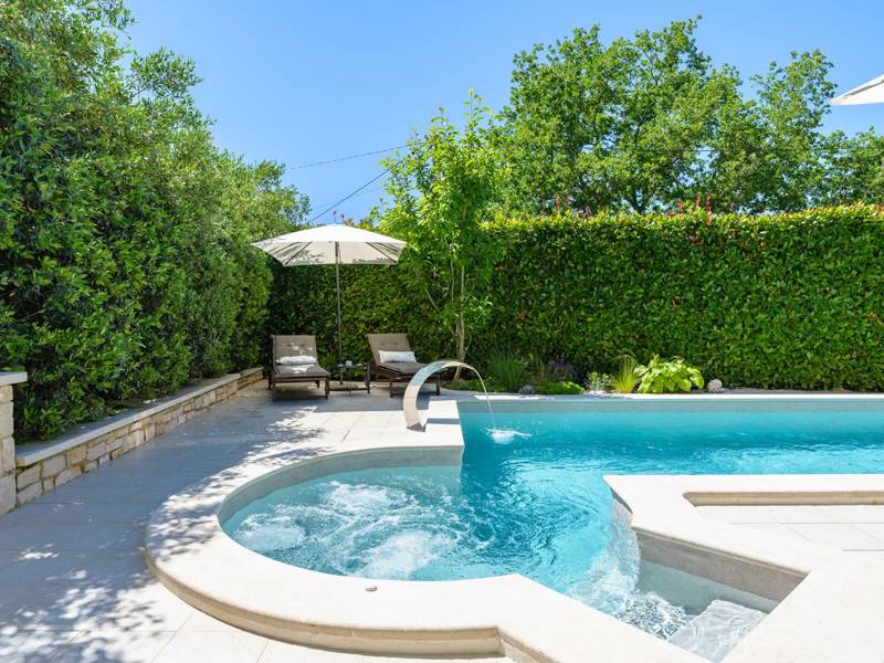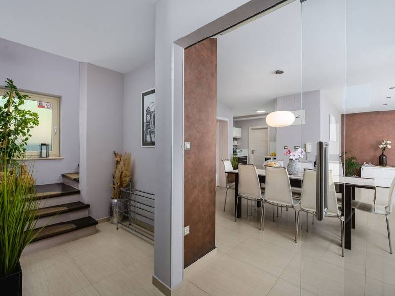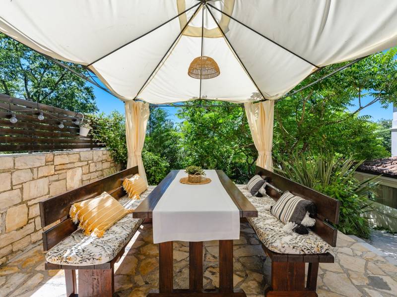 Ontdek Villa Vidova, een charmante moderne villa gelegen in het serene dorpje Basici, naast een eikenbos. Op slechts 18 kilometer van Porec en zijn prachtige stranden biedt Villa Vidova een idyllisch toevluchtsoord voor uw vakantie. Deze villa is gebouwd en ingericht met moderne voorzieningen van hoge kwaliteit en ligt in een prachtige tuin van 1100 m². Het omheinde perceel heeft een goed onderhouden gazon, privéparkeergelegenheid en een buitenzwembad van 26 m² met hydromassage en ligstoelen. Geniet van het gemak van een buitendouche, twee fietsen, ruime overdekte terrassen met tuinmeubilair, een kinderspeelplaats, een kinderspeelkamer, een voetbaltafel en een barbecue. Villa Vidova is ontworpen om comfortabel plaats te bieden aan 8 gasten en beschikt over een totale woonoppervlakte van 170 m² verdeeld over twee volledig van airconditioning voorziene verdiepingen. De begane grond bestaat uit een keuken en eethoek, een woonkamer met een leren bank en satelliet-tv, en toegang tot het terras. Er is ook een slaapkamer met twee eenpersoonsbedden en airconditioning, evenals twee badkamers. Op de eerste verdieping vind je drie slaapkamers met airconditioning. Eén slaapkamer heeft een tweepersoonsbed, airconditioning en een ruim terras met een zithoek. Een andere slaapkamer heeft een Frans bed en airconditioning, terwijl de derde slaapkamer twee eenpersoonsbedden heeft. Er is ook een badkamer op deze verdieping. Houd er rekening mee dat jeugdgroepen strikt verboden zijn. Huisdieren zijn welkom in dit huis, extra kosten zijn van toepassing. Als je meer dan één huisdier wilt meenemen, informeer dan vooraf. Ervaar de perfecte mix van comfort, luxe en natuurlijke schoonheid in Villa Vidova. Boek vandaag nog je verblijf en creëer onvergetelijke herinneringen in dit rustige toevluchtsoord.
