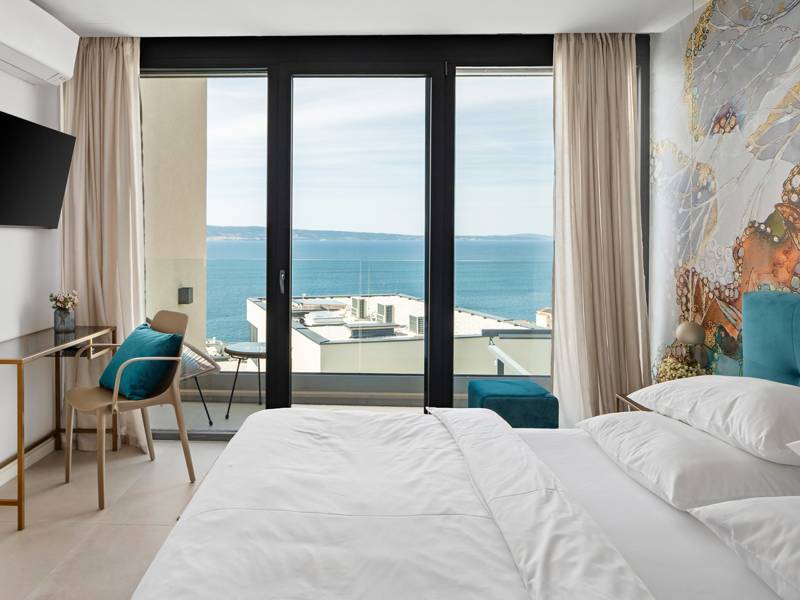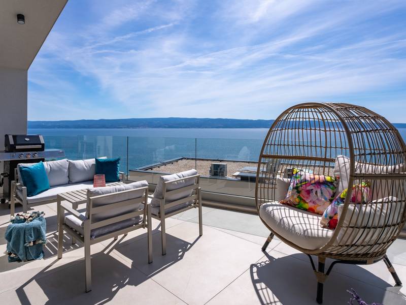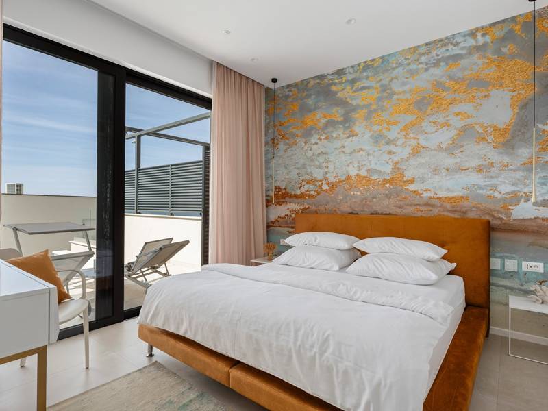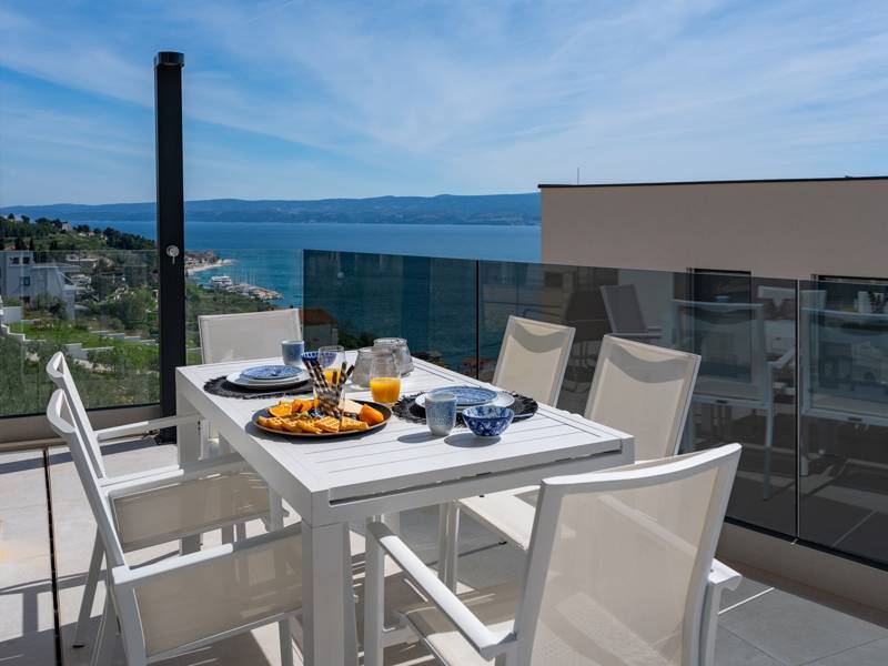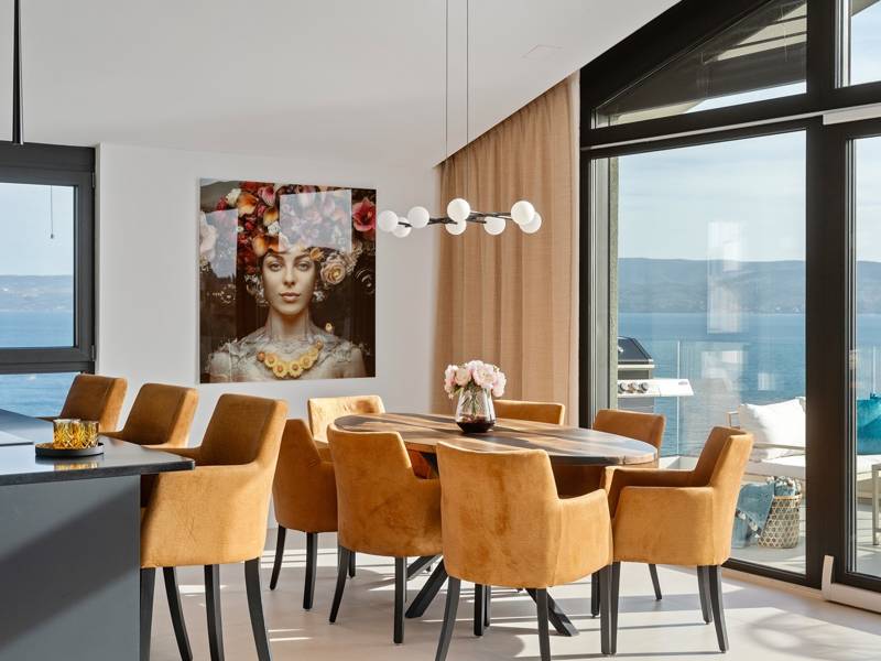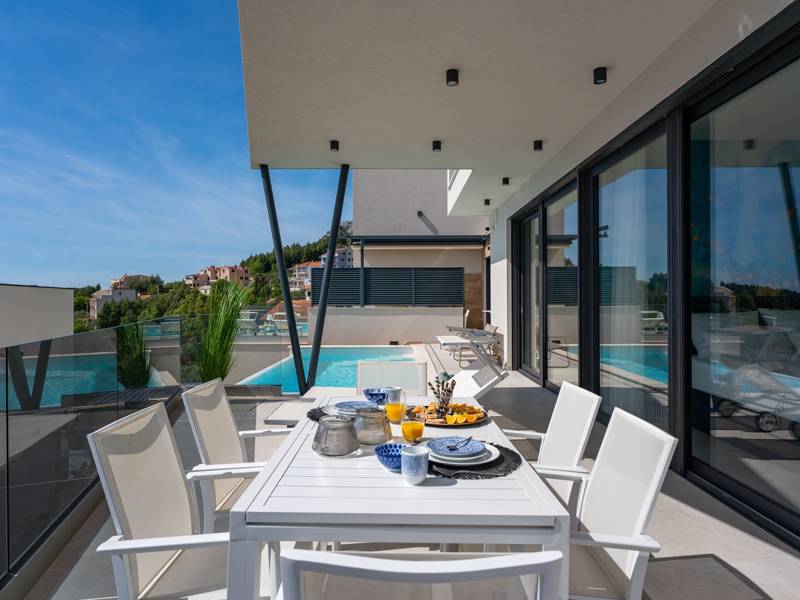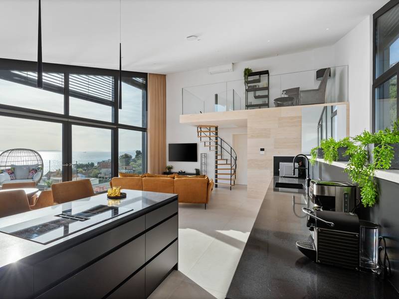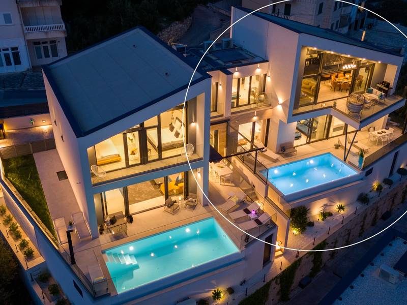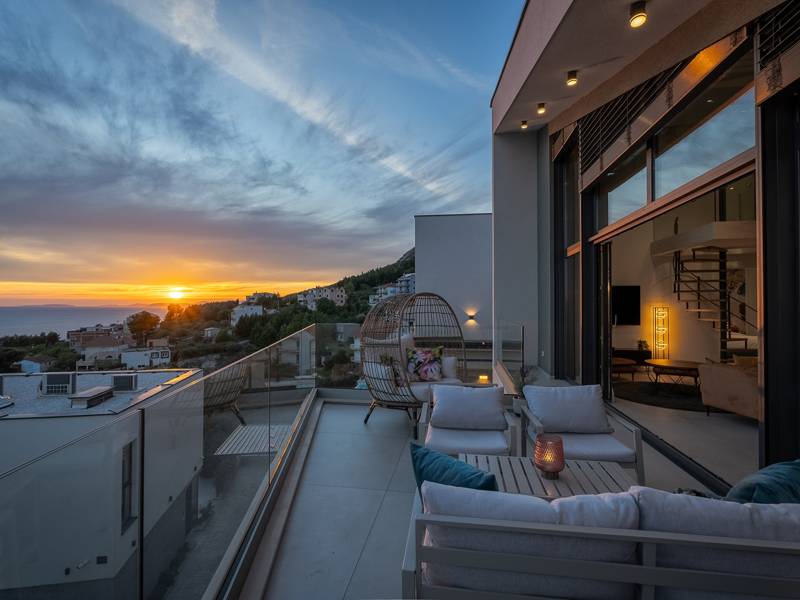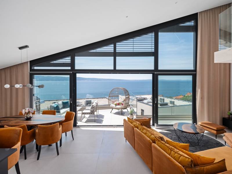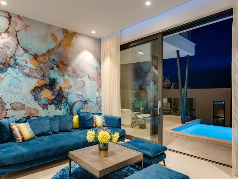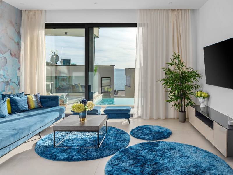*De eerste verdieping verwelkomt je met een grote, elegant ontworpen woonkamer met modern meubilair en grote ramen die het betoverende uitzicht op de sprankelende zee omlijsten. De woonkamer, eethoek en volledig uitgeruste keuken zijn allemaal naadloos verbonden door een open lay-out die het de ideale plek maakt om gasten te ontvangen en tijd door te brengen met geliefden. Aan de voorkant van de woon/eetkamer is een terras met een zithoek, en er is ook een leeshoek op de galerij, net boven de woonkamer. Op de eerste verdieping is slaapkamer NO1, met een kingsize bed van 180 bij 200, tv, airconditioning en een eigen badkamer met een douche. *Twee slaapkamers met eigen badkamer en een extra woonruimte zijn beschikbaar op de begane grond. Met gezellige kingsize bedden van 180 bij 200, een chique inrichting, airconditioning, een tv en een eigen badkamer met een douche, bieden beide prachtig ingerichte slaapkamers een rustig toevluchtsoord voor rust en ontspanning. Deze twee slaapkamers hebben directe toegang tot het zwembad, dus word wakker met uitzicht op het zwembad. Tussendoor is er nog een woonkamer met een bank en een tv met een PlayStation5, daarnaast is er een apart toilet. *Buiten (begane grond) Er is een verwarmd privézwembad van 7 x 3 meter buiten met een elektrolyse systeem, evenals een zonneterras met 6 ligstoelen waar je kunt ontspannen in de zon, afkoelen in het zwembad, of buiten eten terwijl je naar de zonsondergang kijkt. Met zijn privézwembad en prachtig uitzicht op zee zal deze villa met drie slaapkamers al je verwachtingen overtreffen, of je nu op zoek bent naar een weelderig toevluchtsoord of een rustige ontsnapping. *Een fitnessruimte met airconditioning, een tv, een hometrainer, een roeimachine en een stepper is beschikbaar op de benedenverdieping. Er is een wasruimte met een wasmachine, droger en strijkbenodigdheden direct ernaast.
