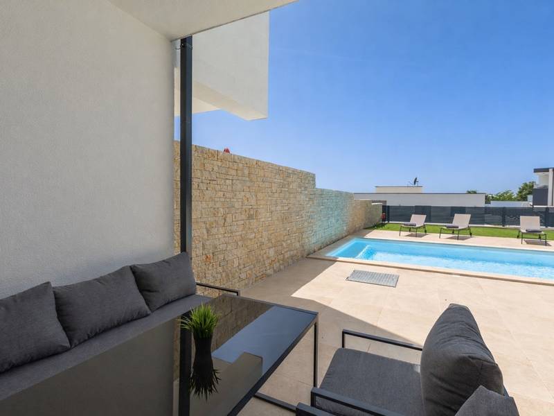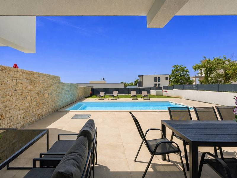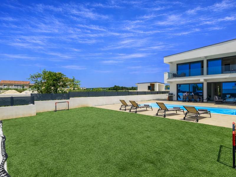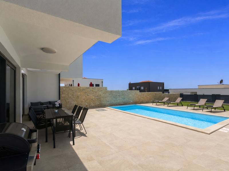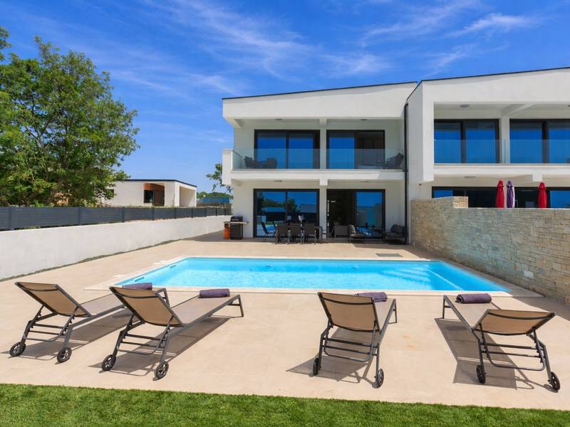 Welkom in onze nieuwe villa in Kanfanar, een charmant stadje in de buurt van Rovinj. Deze prachtige villa biedt een perfecte combinatie van elegantie en comfort. Met een privézwembad van 32 m² is deze villa ontworpen om je een onvergetelijke vakantie-ervaring te bezorgen. Als je de villa binnenstapt, word je begroet door een ruime en prachtig modern ingerichte woonkamer. De woonkamer biedt een gezellige ruimte om te ontspannen, compleet met pluche banken, een flatscreentelevisie en grote ramen die zorgen voor veel natuurlijk licht in de ruimte. De villa beschikt over vier ruime slaapkamers, die elk de grootst mogelijke privacy en comfort bieden. Elke slaapkamer heeft een eigen badkamer, waardoor gemak en luxe voor elke gast gegarandeerd is. Twee slaapkamers hebben het extra voordeel van directe toegang tot een charmant balkon. Het bereiden van maaltijden zal een genot zijn in de volledig uitgeruste keuken. De eethoek naast de keuken biedt een comfortabele ruimte om te genieten van maaltijden met familie en vrienden. Voor degenen die liever buiten dineren, wacht er een heerlijke eethoek buiten op je, compleet met barbecue, waar je kunt genieten van heerlijke maaltijden terwijl je geniet van de warme Kroatische zon. Het hoogtepunt van deze villa is ongetwijfeld het privézwembad van 32 m². Neem een verfrissende duik in het kristalheldere water, lig op de ligbedden of ontspan gewoon in de rustige ambiance van het zwembad. Het is de perfecte plek om af te koelen tijdens warme zomerdagen of te ontspannen onder de sterrenhemel. Kanfanar is een pittoresk stadje in de buurt van Rovinj, bekend om zijn prachtige kustlijn, charmante architectuur en rijk cultureel erfgoed. Verken de smalle straatjes van de oude stad, bezoek de plaatselijke winkels en restaurants, of maak een korte rit naar Rovinj, waar je prachtige stranden, historische bezienswaardigheden en een bruisend nachtleven kunt ontdekken. Geniet van het luxe comfort van deze villa in Kanfanar. Of je nu op zoek bent naar ontspanning, avontuur of een beetje van beide, deze prachtige woning is de perfecte keuze voor een onvergetelijke vakantie-ervaring in Kroatië.