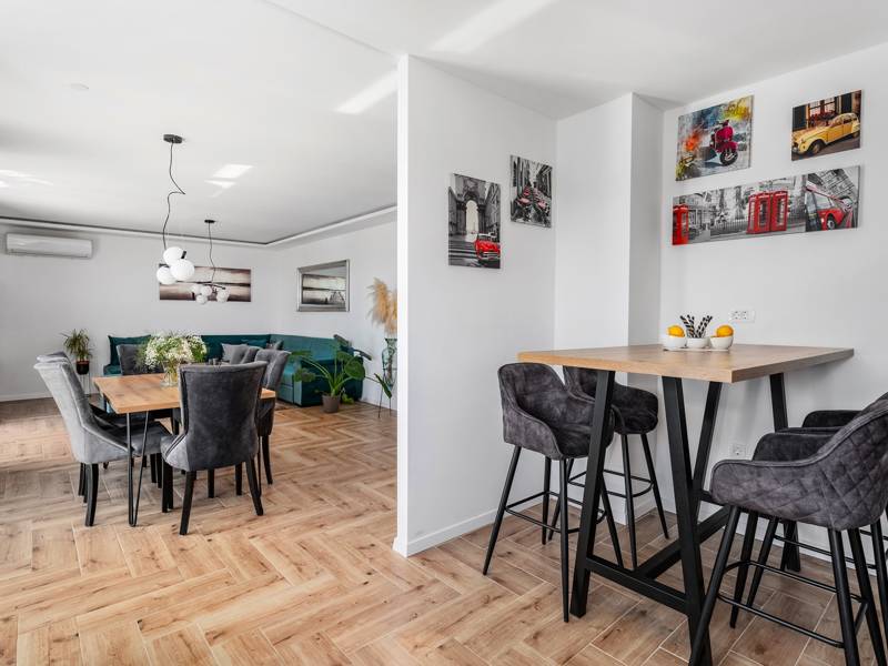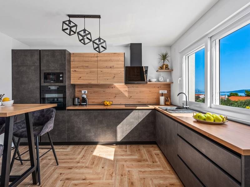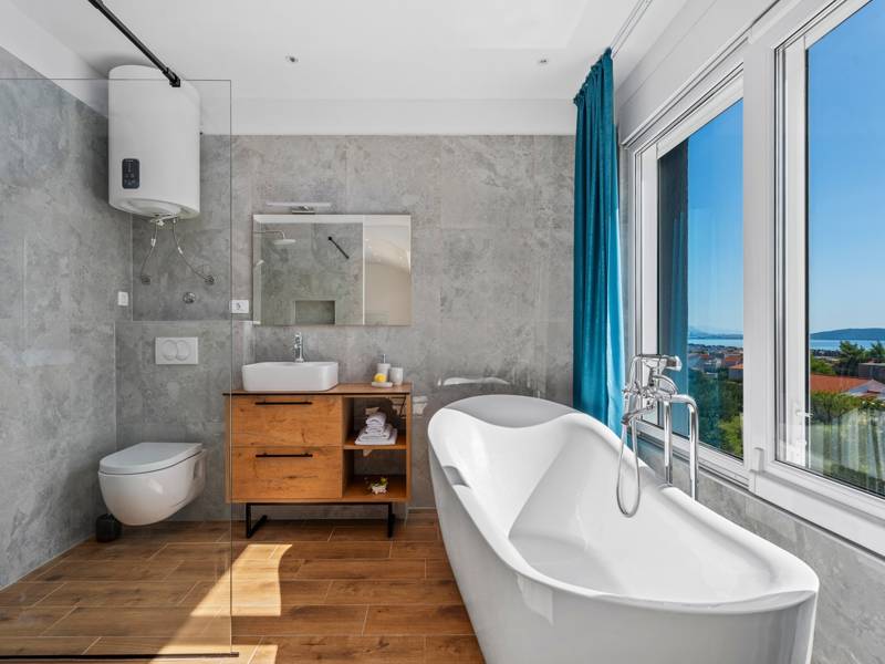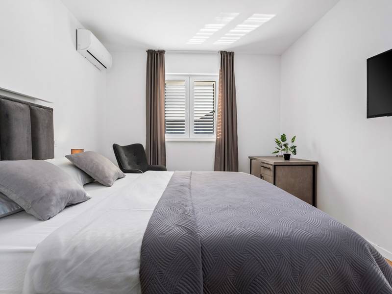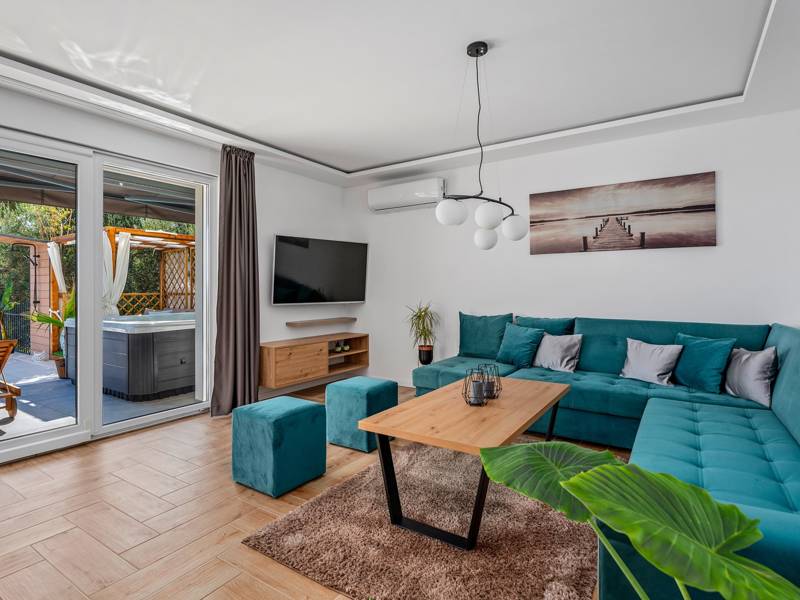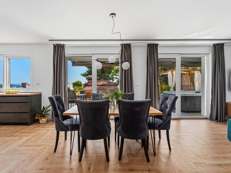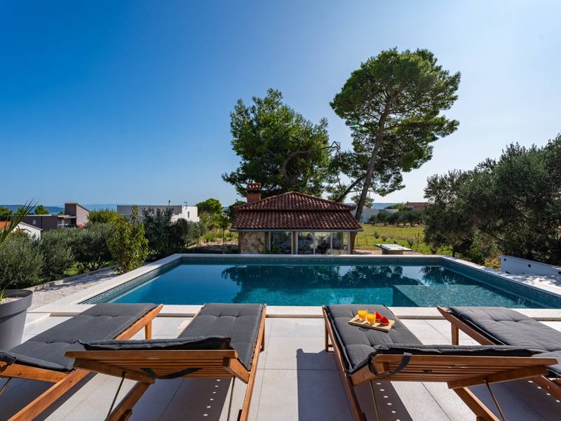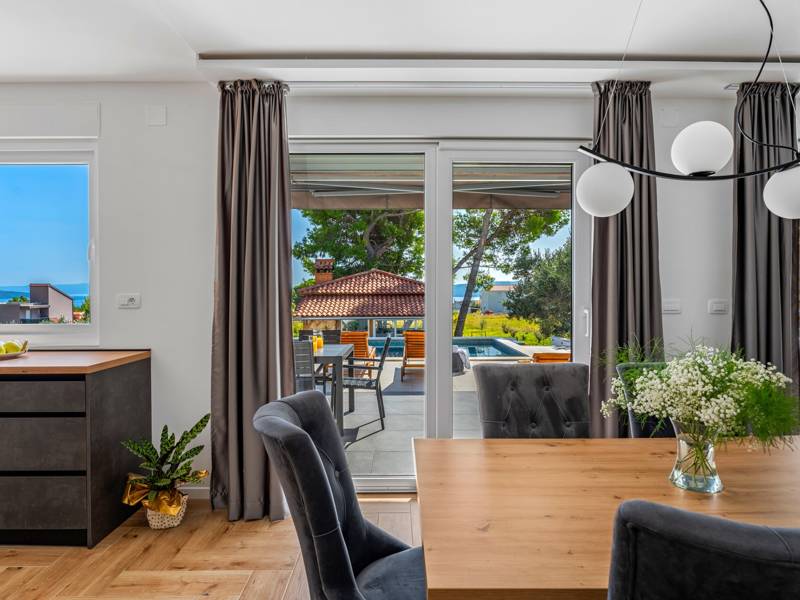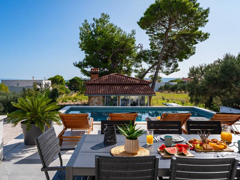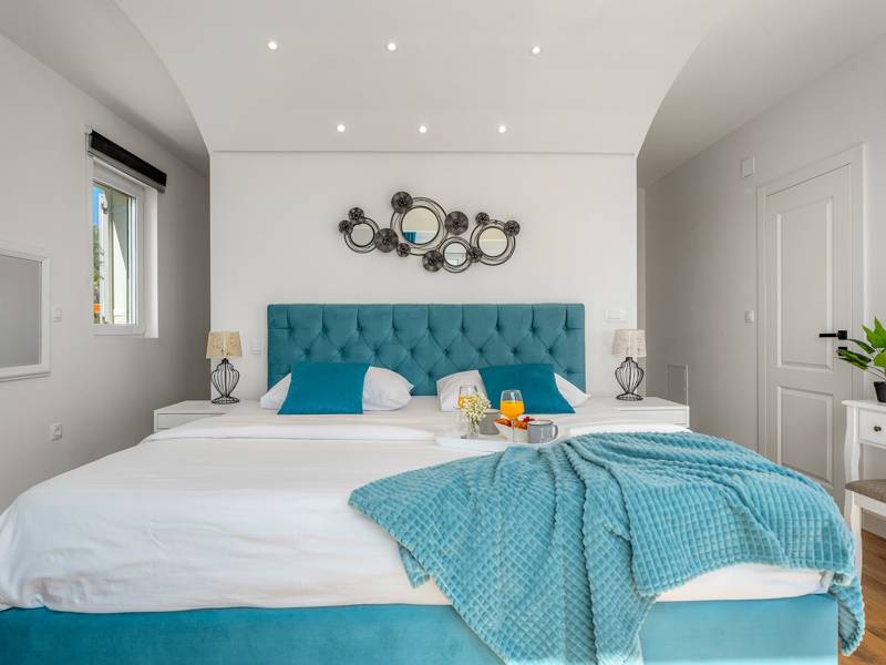 * De buitenruimte biedt exclusief voor jou een privézwembad van 8m x 5m en een jacuzzi (Hot-Tub) ernaast, 6 ligstoelen, een baldahin ligbed, een overdekte eethoek met een prachtig uitzicht op de omgeving en de zee, en een houten kinderhuisje met een glijbaan en een schommel. Een paar treden naar beneden brengt je naar een extra zonneterras met natuurlijke schaduw en 4 ligstoelen, een zomerkeuken met een barbecue (hout/kolen), een keuken (koelkast, vaatwasser, fornuis, een waterkoker), een loungehoek, darts voor wat plezier, een bar, een eettafel en een toilet. De begane grond biedt een volledig van airconditioning voorziene woonkamer (50 m²) met een volledig uitgeruste keuken (koelkast, magnetron, waterkoker, capsule koffiezetapparaat), tv, airco, gratis WiFi, PS4, uitgang naar het terras met uitzicht op het zwembad en de zee. Er is een slaapkamer nr. 1 (10,5m²) met een queensize bed van 160x200cm, tv, airco, en daarnaast is een familiebadkamer met een douche. In de garage staat een tafelvoetbalspel, een tafeltennistafel en er is wat extra speelgoed voor de allerkleinsten. * Op de eerste verdieping is een grote slaapkamer nr. 2 (26m²) met een super kingsize bed van 200x200cm, TV, airco, en-suite inloopdouche, een toilet en een vrijstaand bad.Slaapkamer No3 (13m²) met queensize bed 160x200cm, TV, A/C; Slaapkamer No4 (13m²) met queensize bed 160x200cm, TV, A/C; En er is een Familiebadkamer met een douche en een wasmachine. De volgende diensten zijn inbegrepen in de huurtarieven: -Bad- en zwembadhanddoeken, bedlinnen -Keuken en barbecue faciliteiten -Bedrijven -Water, gas, elektriciteit, verwarming, air-conditioning -Draadloos internet -Beveiligde parkeerplaats (6 parkeerplaatsen voor het huis) -Tuin en zwembad onderhoud -Eindschoonmaak -Toeristenbelasting, Sojourn tax - Huisdieren zijn NIET toegestaan. De straat is geasfalteerd voor de laatste 300 meter naar het huis.