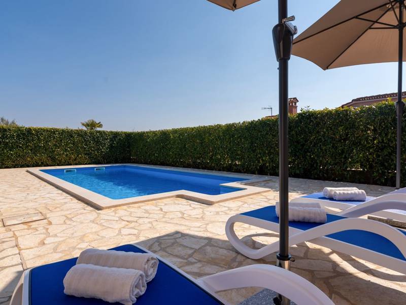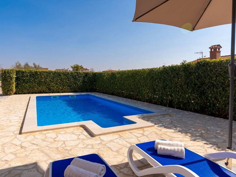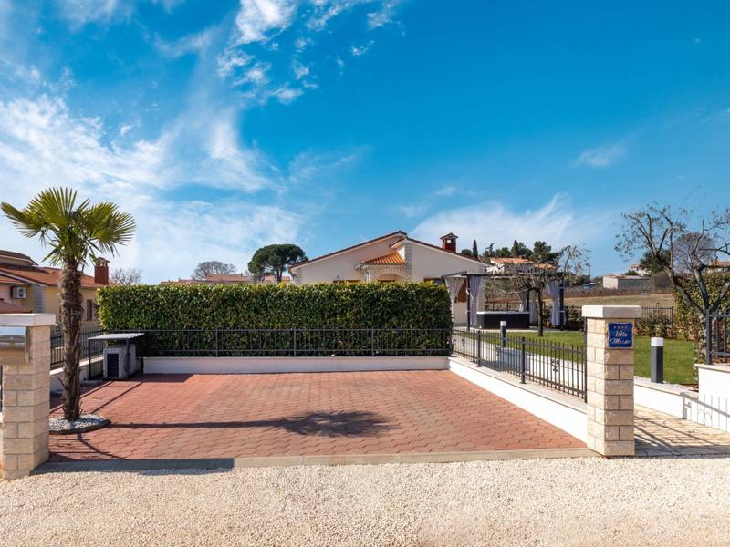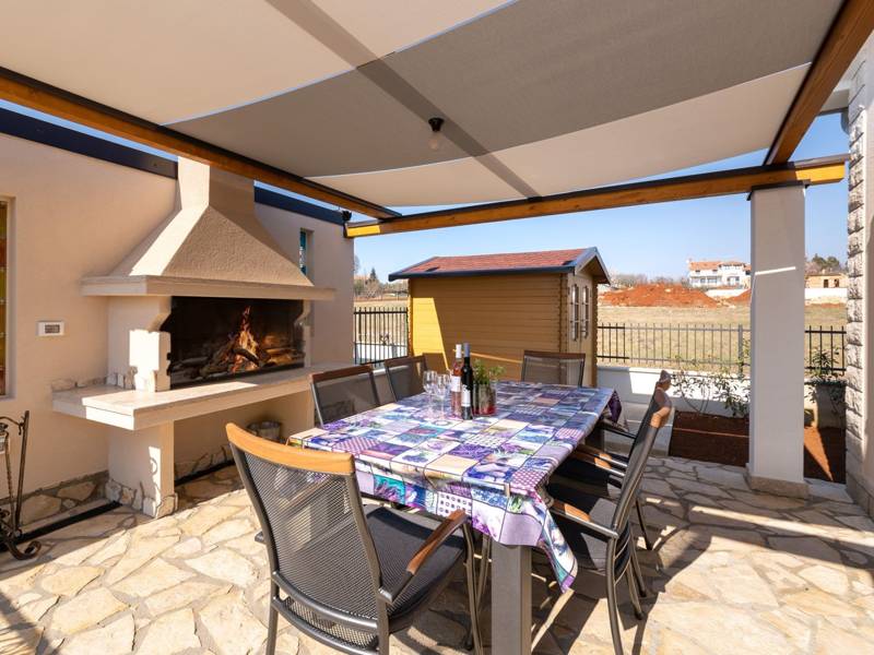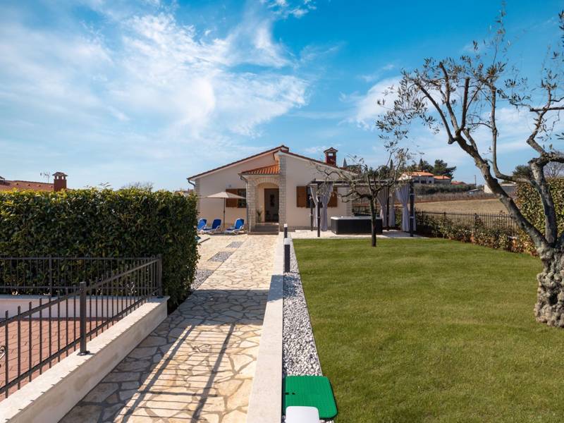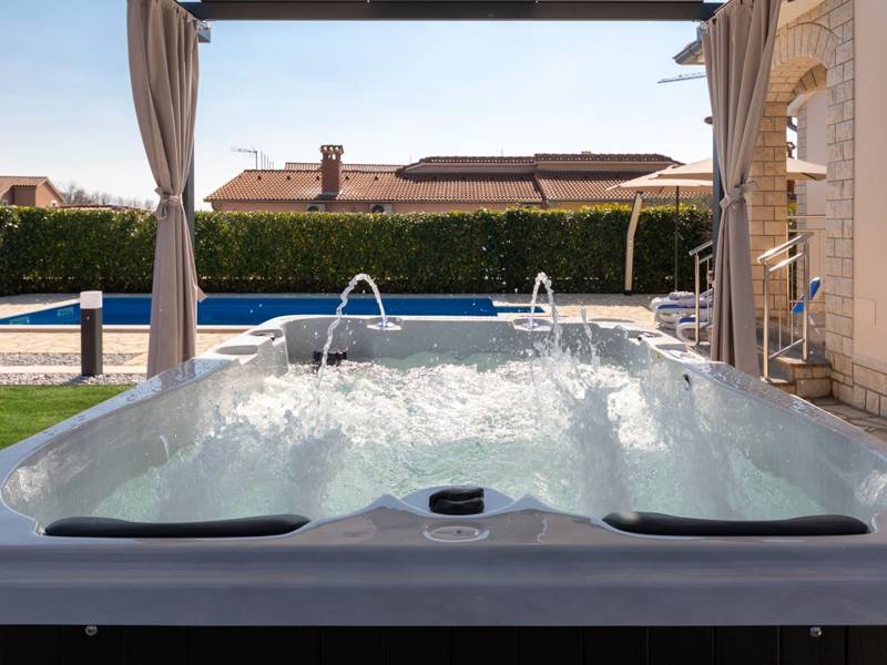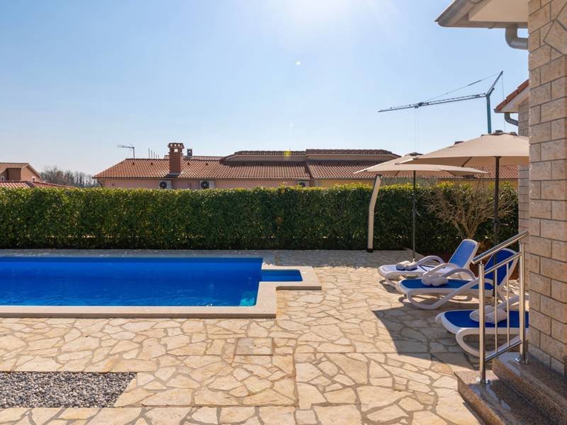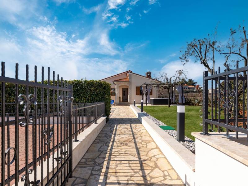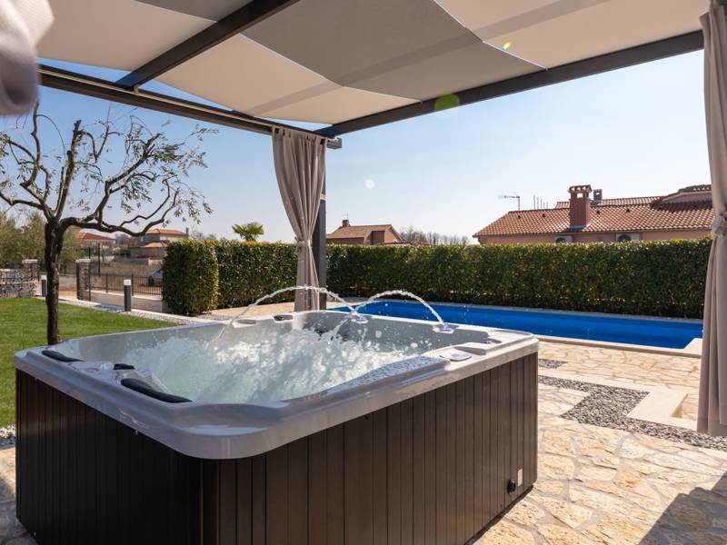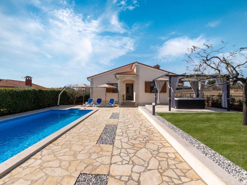 Villa Marko is een charmant vakantiehuis gelegen in het rustige dorpje Kaštelir aan de westkust van Istrië. Met een woonoppervlakte van 90 m2 is het ideaal voor 4 tot 6 gasten en biedt het comfort, privacy en alle voorzieningen die nodig zijn voor een ontspannen vakantie. Het interieur bestaat uit een gezellige woonkamer met een grote, aanpasbare slaapbank voor twee extra gasten, een eethoek en een volledig uitgeruste keuken. De villa heeft een badkamer en twee slaapkamers met airconditioning, elk uitgerust met een tweepersoonsbed en satelliet-tv. Buiten kunnen gasten genieten van een privézwembad van 32 m2 en een jacuzzi, perfect om af te koelen of te ontspannen na een dag verkennen. De overdekte zomerkeuken met een grote open haard en eethoek biedt de perfecte setting voor al fresco maaltijden. Het pand biedt ook twee privéparkeerplaatsen. Het dichtstbijzijnde strand ligt op slechts 8 km afstand en is met de auto in ongeveer 10 minuten te bereiken. Het dorp Kaštelir zelf biedt verschillende restaurants, pizzeria's en cafés, evenals winkels, een postkantoor en een geldautomaat - allemaal op loopafstand. Poreč, een van de populairste toeristische bestemmingen aan de Adriatische Zee, ligt op slechts 10 km afstand en biedt een breed scala aan attracties, entertainment en culturele bezienswaardigheden. Villa Marko is de perfecte uitvalsbasis voor een ontspannen maar onvergetelijke vakantie in Istrië.
