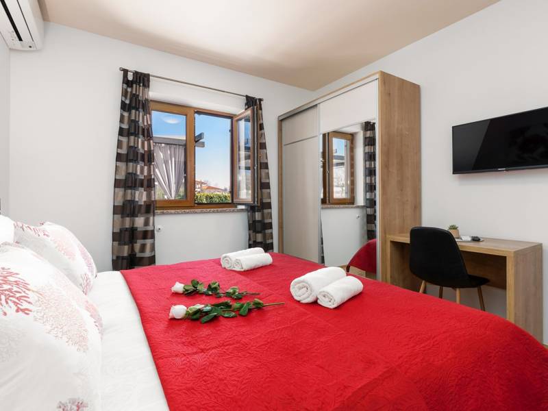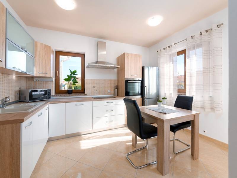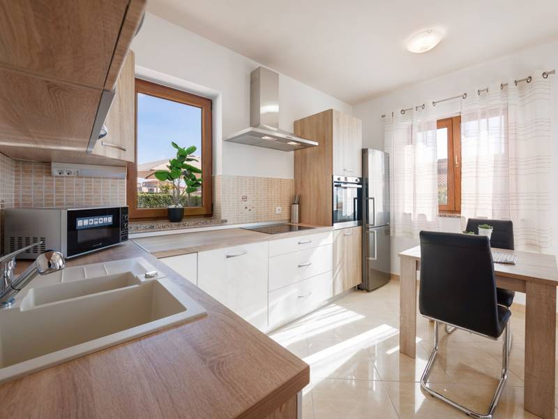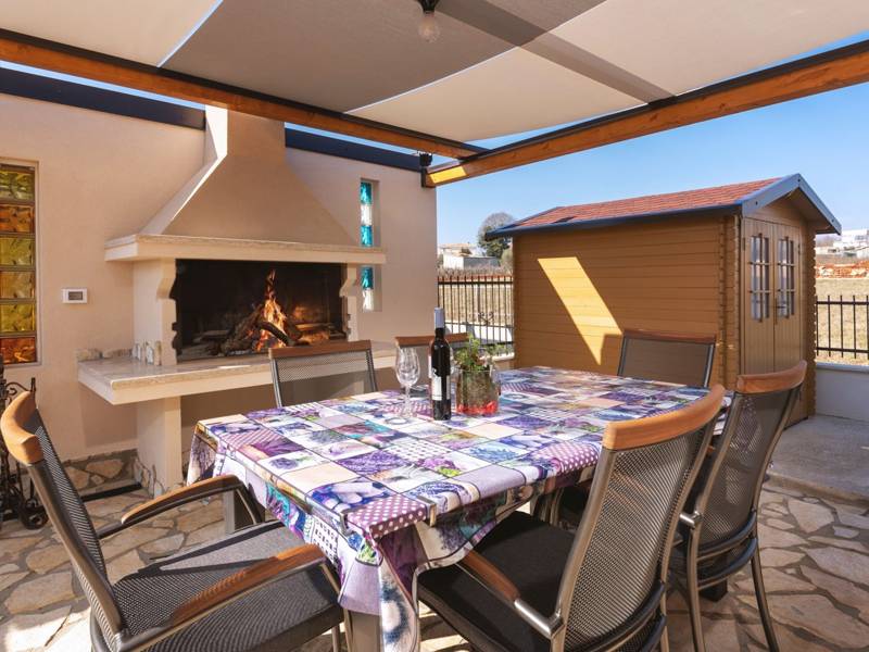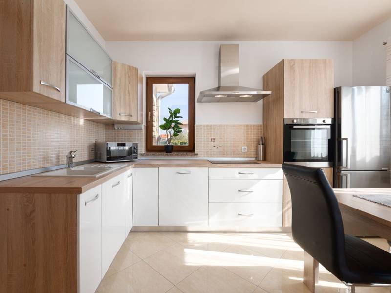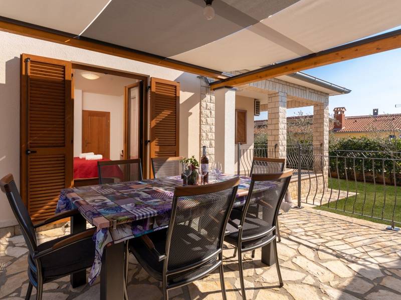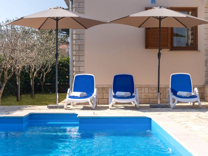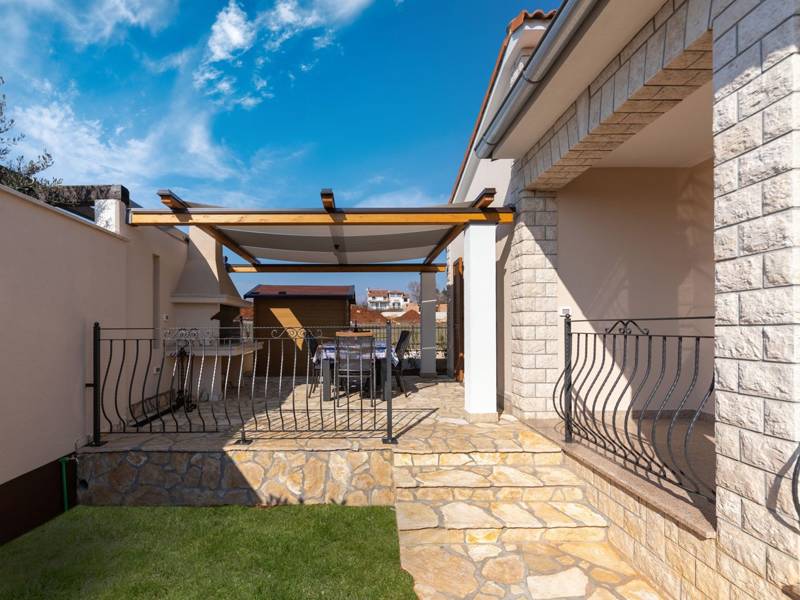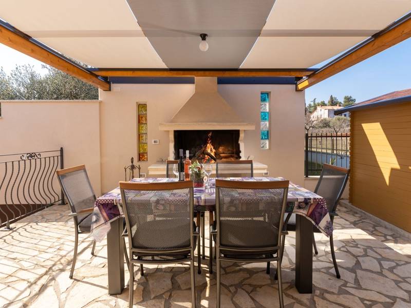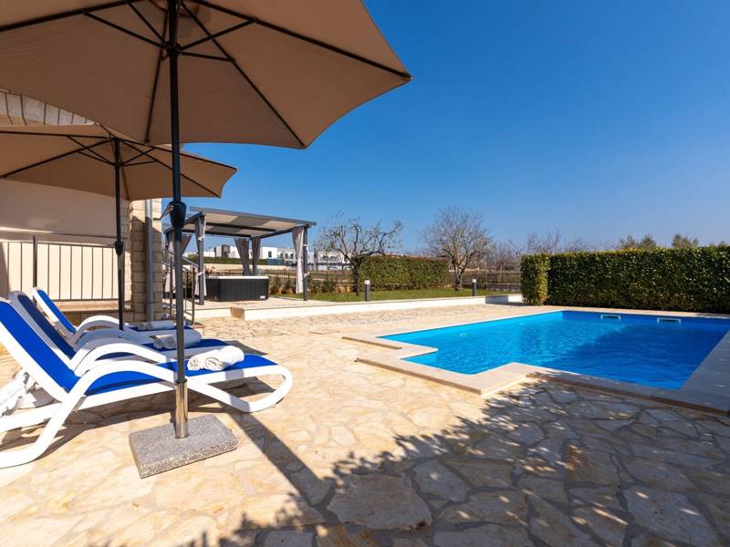 Villa Marko is een charmant vakantiehuis gelegen in het rustige dorpje Kaštelir aan de westkust van Istrië. Met een woonoppervlakte van 90 m2 is het ideaal voor 4 tot 6 gasten en biedt het comfort, privacy en alle voorzieningen die nodig zijn voor een ontspannen vakantie. Het interieur bestaat uit een gezellige woonkamer met een grote, aanpasbare slaapbank voor twee extra gasten, een eethoek en een volledig uitgeruste keuken. De villa heeft een badkamer en twee slaapkamers met airconditioning, elk uitgerust met een tweepersoonsbed en satelliet-tv. Buiten kunnen gasten genieten van een privézwembad van 32 m2 en een jacuzzi, perfect om af te koelen of te ontspannen na een dag verkennen. De overdekte zomerkeuken met een grote open haard en eethoek biedt de perfecte setting voor al fresco maaltijden. Het pand biedt ook twee privéparkeerplaatsen. Het dichtstbijzijnde strand ligt op slechts 8 km afstand en is met de auto in ongeveer 10 minuten te bereiken. Het dorp Kaštelir zelf biedt verschillende restaurants, pizzeria's en cafés, evenals winkels, een postkantoor en een geldautomaat - allemaal op loopafstand. Poreč, een van de populairste toeristische bestemmingen aan de Adriatische Zee, ligt op slechts 10 km afstand en biedt een breed scala aan attracties, entertainment en culturele bezienswaardigheden. Villa Marko is de perfecte uitvalsbasis voor een ontspannen maar onvergetelijke vakantie in Istrië.