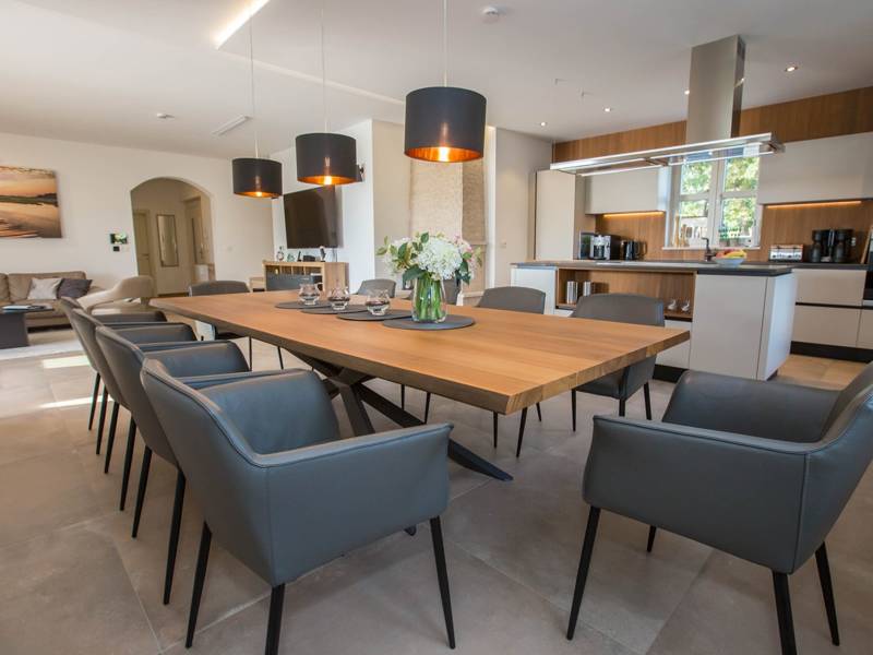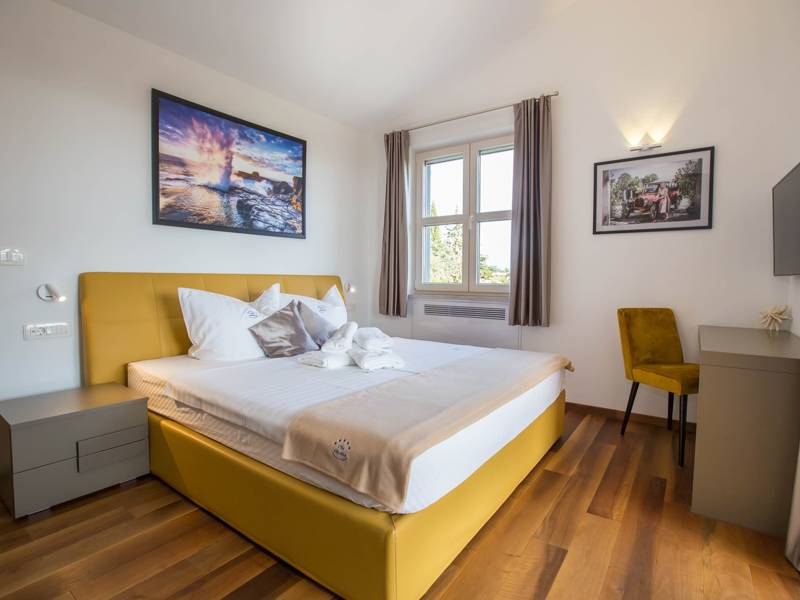 Ontdek de betoverende Villa Nikolina met een privézwembad, perfect voor maximaal 8 gasten die op zoek zijn naar ontspanning en genot. Deze prachtige villa is omgeven door weelderige tuinen met uitzicht op zee, en biedt een oase van rust en schoonheid. Op de begane grond vind je een ruime woonkamer, een volledig uitgeruste keuken en een comfortabele slaapkamer met eigen badkamer. Boven wachten drie elegante slaapkamers, elk met een eigen badkamer en een terras met prachtig uitzicht. Geniet van het buitenterras bij het zwembad, uitgerust met een extra keuken met vaatwasser en wijnkoelkast. Hier kun je heerlijke maaltijden bereiden en ervan genieten in de ontspannen sfeer bij het zwembad omgeven door groen. Het zwembad van 52m2 met comfortabele ligstoelen en parasols biedt de perfecte plek voor verfrissing en ontspanning met een prachtig uitzicht op de tuin en de zee. Je auto staat veilig op de omheinde parkeerplaats voor de villa en er is ook een oplaadpunt voor elektrische auto's beschikbaar (tegen betaling). Villa Nikolina staat garant voor compleet comfort en een onvergetelijk verblijf en biedt de perfecte mix van gemak, natuurlijke schoonheid en rust. Je vakantie hier zal gevuld zijn met ontspannende momenten en lekkernijen voor de hele familie of vriendengroep.