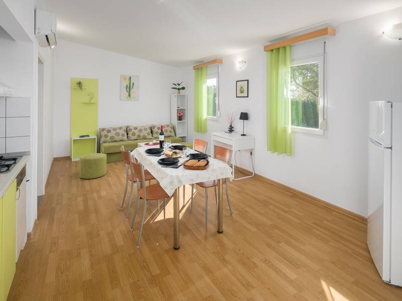 Vakantiehuis Jelovci No.6 met privé zwembad is een van de negen vakantiehuizen in Holiday Park Village Jelovci. Het huis bestaat uit een ruime woonkamer met een uitgeruste keuken en eethoek, twee slaapkamers en twee badkamers met douche. Met de twee slaapkamers en de slaapbank in de woonkamer is het huis geschikt voor maximaal 6 personen. Gasten hebben ook de beschikking over een privétuin met barbecueplaats en een privézwembad, evenals een privéterras met zitmeubilair. Alle gasten van Village Park Jelovci kunnen ook gebruik maken van de gemeenschappelijke kinderspeelplaats met een kinderzwembad en andere activiteiten die geschikt zijn voor kinderen. Er is ook een wasruimte beschikbaar voor alle gasten, en een conferentieruimte geschikt voor verschillende soorten bijeenkomsten. Holiday House Jelovci No.6 is perfect voor een gezin met kinderen die zeker zullen genieten van alles wat Holiday Park Jelovci te bieden heeft en hier prachtige vakantieherinneringen zullen maken. Het milieuvriendelijke Park Village Jelovci maakt gebruik van hernieuwbare energie, daarom is de airconditioning 10 uur per dag gratis te gebruiken.