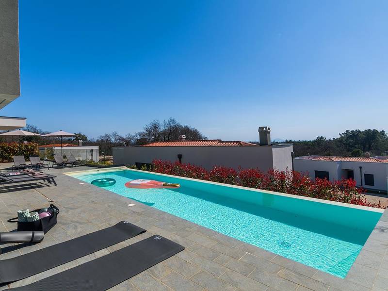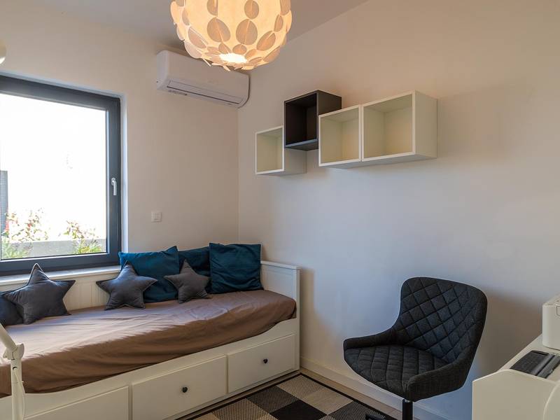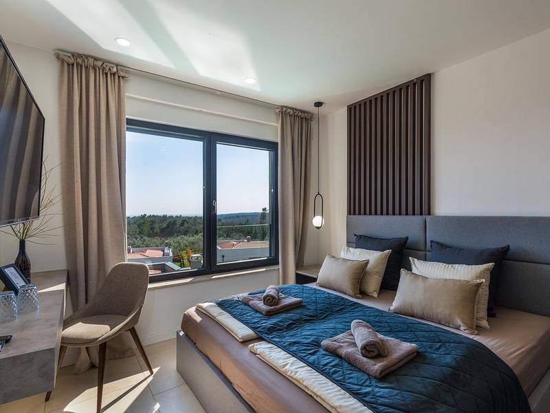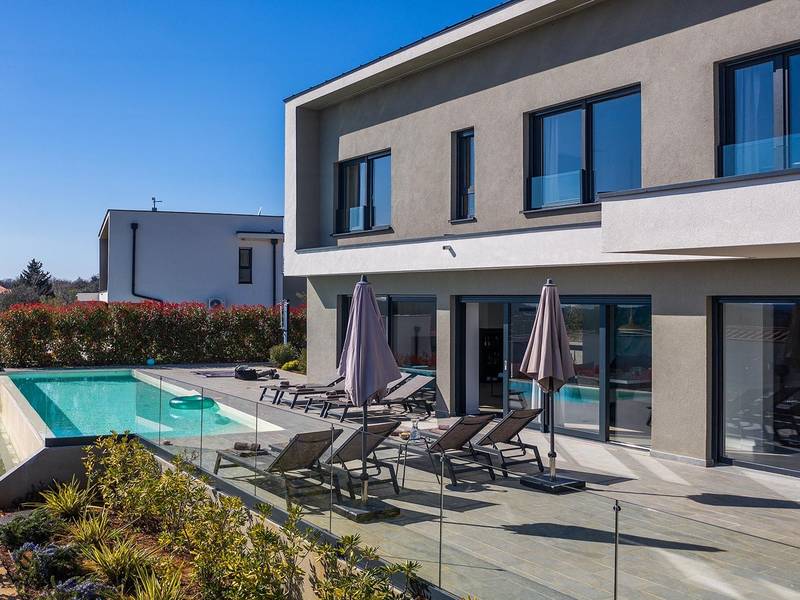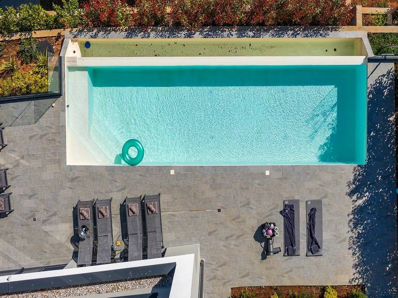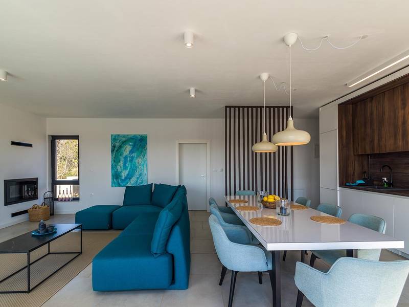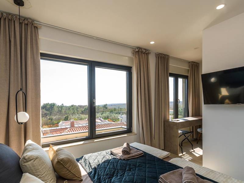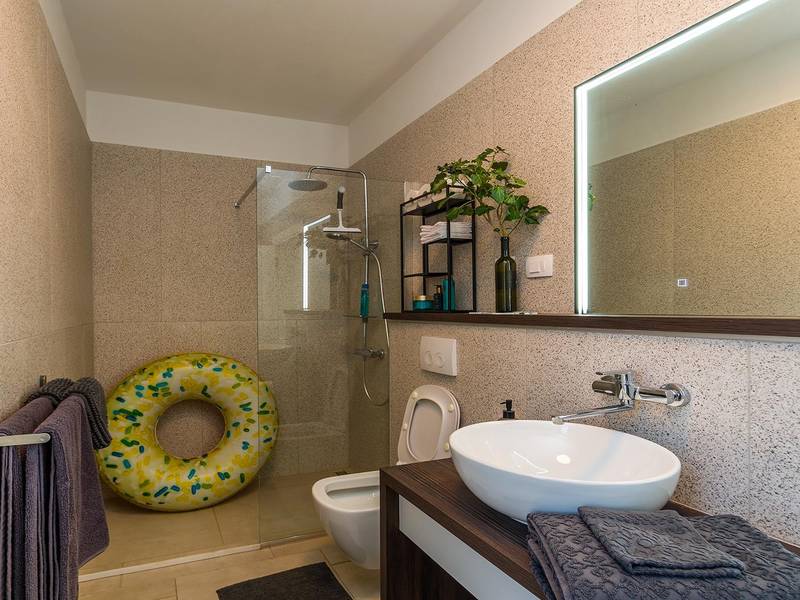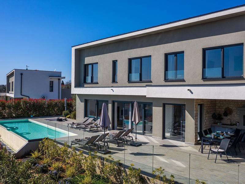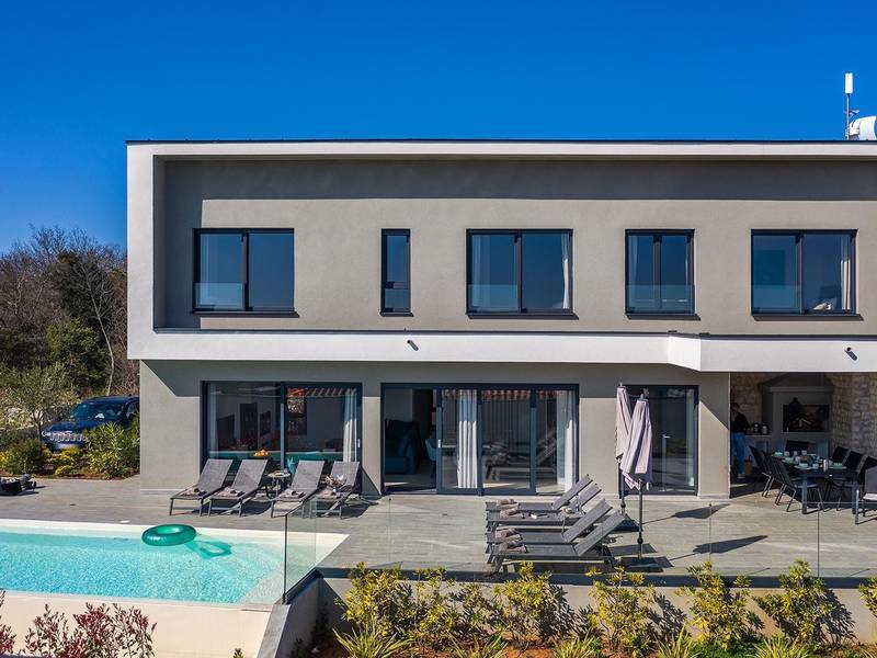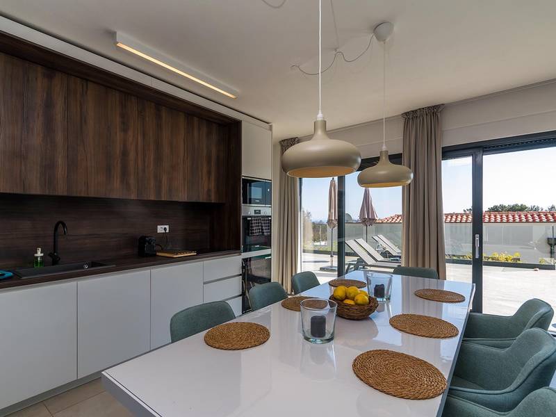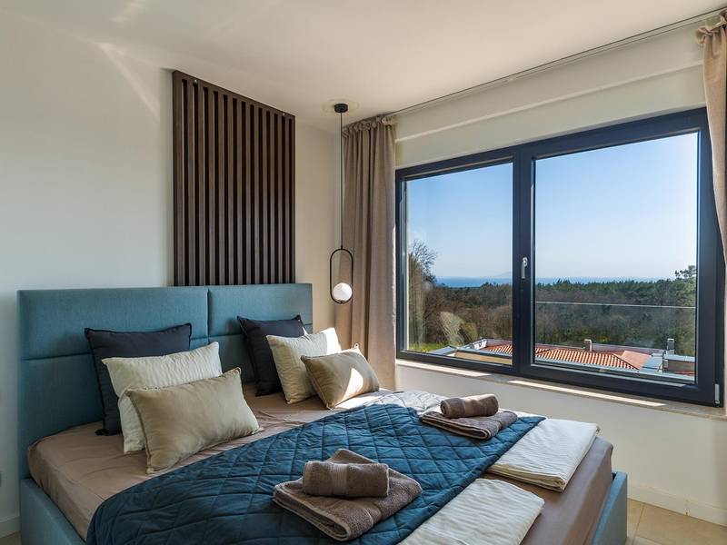 Villa Seastar is waar ontspannen leven, design en een gevoel van lichtheid samenkomen. Deze moderne villa ligt dicht bij de zee en is perfect voor families en vrienden die in hun eigen tempo van Istrië willen genieten. Er zijn drie slaapkamers met tweepersoonsbedden en één met een uitschuifbaar bed, die comfortabel plaats bieden aan maximaal acht gasten. De ruime open woonkamer kijkt uit over het overloopzwembad, de zee en het eiland Cres, en creëert een lichte, verbonden sfeer voor een lang ontbijt, zonnebaden of 's avonds ontspannen bij zonsondergang. Voor gasten die graag actief blijven, biedt Villa Seastar oefenmatten, verschillende Pilates oefenballen in verschillende maten, weerstandsbanden en zwarte rollen om te stretchen en te ontspannen. Gasten kunnen ook gebruik maken van gratis fietsverhuur bij een lokale partner in Krnica - ideaal om de omgeving op twee wielen te verkennen. Alles voelt hier ontspannen, modern en moeiteloos - een vleugje luxe in balans met wellness en natuur. De villa De villa is ruim en elegant, verdeeld over twee verdiepingen en is gevuld met natuurlijk licht dankzij de grote glazen muren die uitkijken op zee. Het ontwerp combineert strakke lijnen, neutrale tinten en natuurlijke materialen, waardoor een rustgevende en comfortabele sfeer ontstaat. Op de begane grond sluiten de open woonkamer, eethoek en volledig uitgeruste keuken allemaal direct aan op het terras, waardoor er een naadloze overgang is tussen binnen- en buitenruimtes. Elk detail is zorgvuldig gekozen om functionaliteit en elegantie te combineren en gasten een echt gevoel van ontspanning te bieden. Slaapkamers en indeling De villa beschikt over vier slaapkamers, elk met een eigen badkamer. Drie slaapkamers zijn voorzien van tweepersoonsbedden, terwijl de vierde, gelegen op de begane grond, een uitschuifbaar eenpersoonsbed heeft dat een comfortabel tweepersoonsbed kan worden. Alle kamers zijn voorzien van airconditioning, smaakvol ingericht en gevuld met natuurlijk licht. Eén badkamer is uitgerust met een ligbad, terwijl de andere zijn voorzien van moderne inloopdouches. Het verfijnde ontwerp en het gebruik van natuurlijke materialen creëren een rustige sfeer, ideaal om tot rust te komen na een dag aan zee. Buitenruimte Het hoogtepunt van Villa SeaStar is het prachtige overloopzwembad met uitzicht op zee, perfect gepositioneerd om uit te kijken over de horizon en het eiland Cres. Rondom het zwembad is er een ruim terras met ligstoelen, parasols en een eethoek - de perfecte plek voor een kopje koffie 's ochtends, ontspanning of een diner onder de sterren. Er is ook een barbecueplaats beschikbaar, terwijl het omliggende mediterrane groen zorgt voor privacy en rust. Extra informatie De villa biedt WiFi, privéparkeergelegenheid, airconditioning in de hele villa, een wasmachine en een vaatwasser.Gasten kunnen gebruik maken van de aanwezige Pilates- en fitnessapparatuur. Zwembadverwarming met een warmtepomp is op aanvraag beschikbaar in april, mei, september en oktober - tegen een toeslag van 200,00 EUR per week, afhankelijk van de weersomstandigheden. Het huis is niet geschikt voor jeugdgroepen. Huisdieren zijn niet toegestaan. Roken binnenshuis is niet toegestaan.