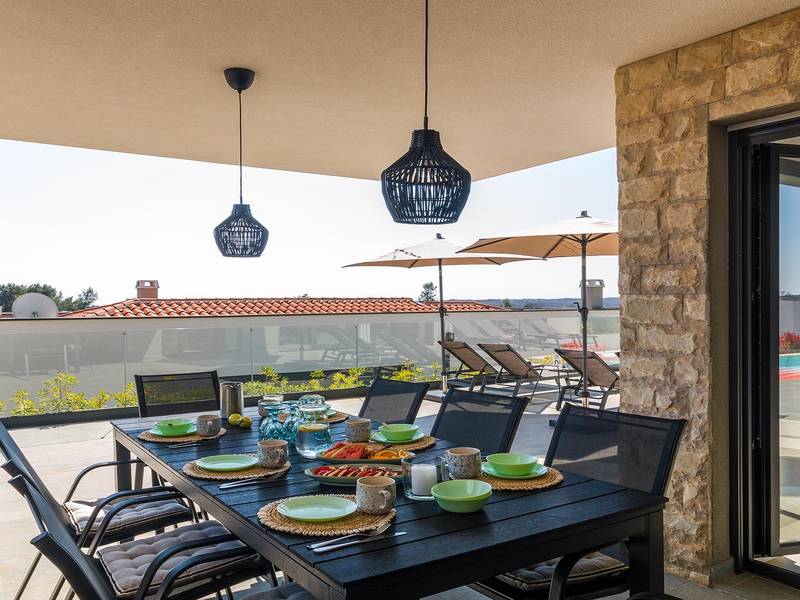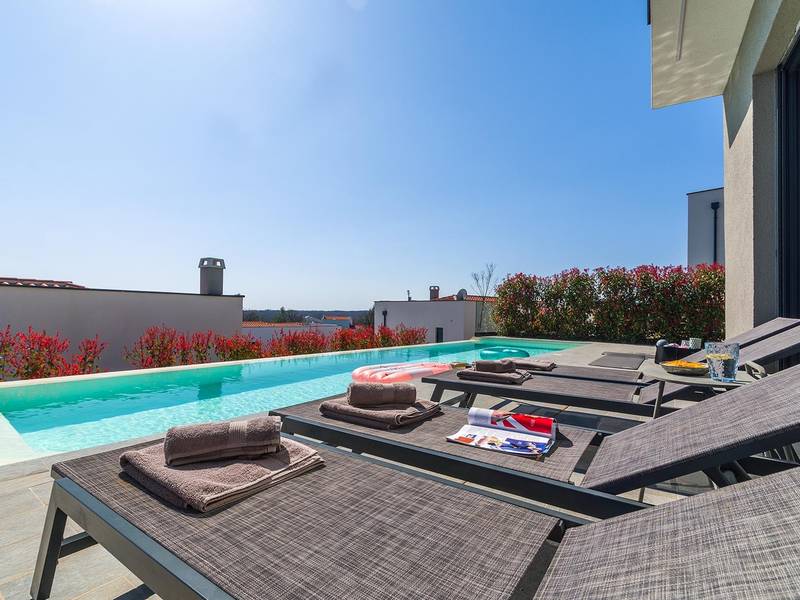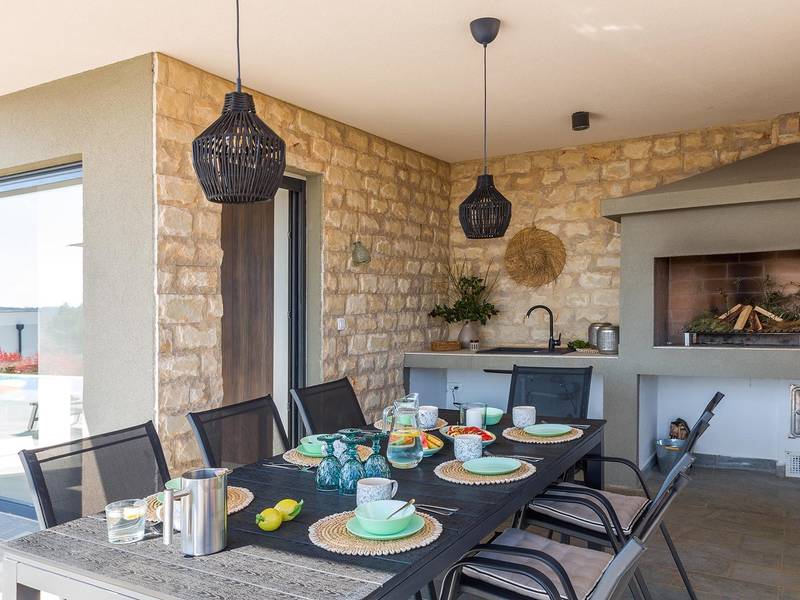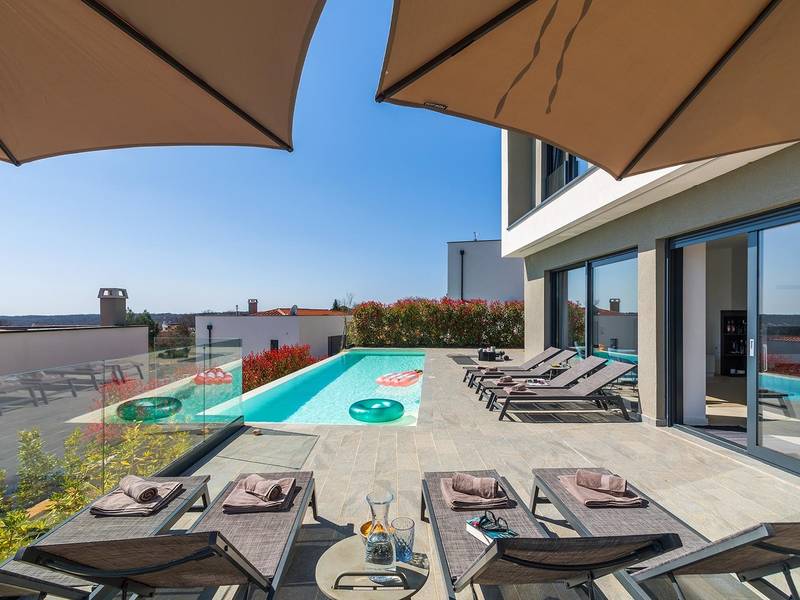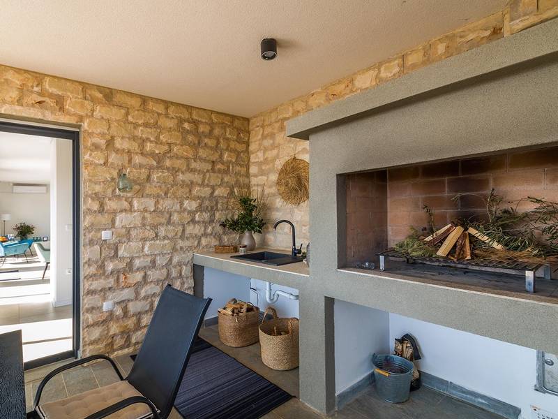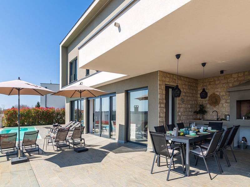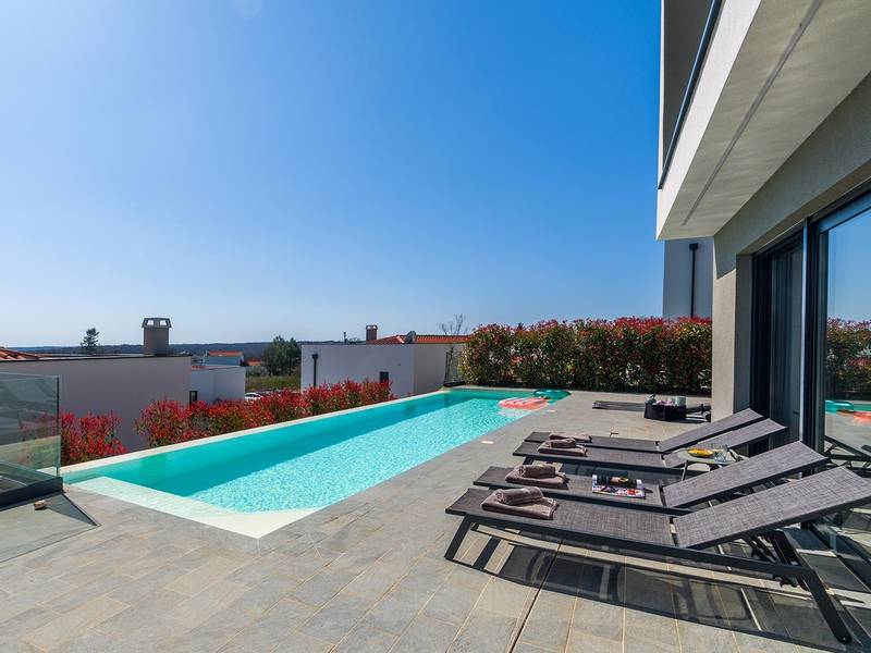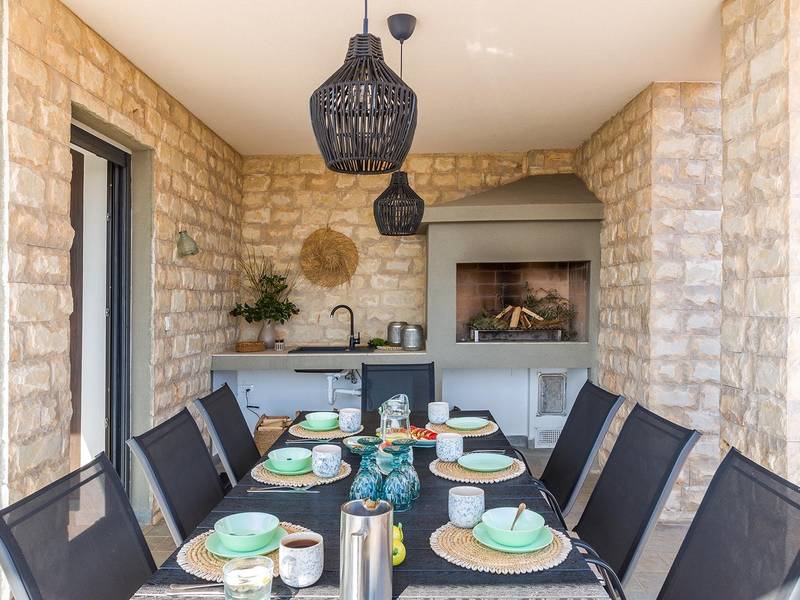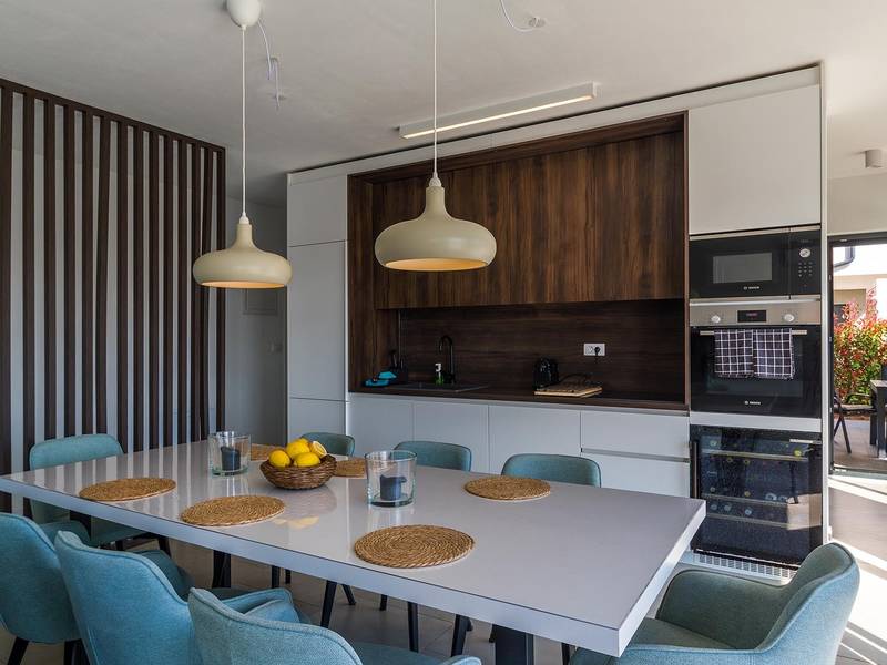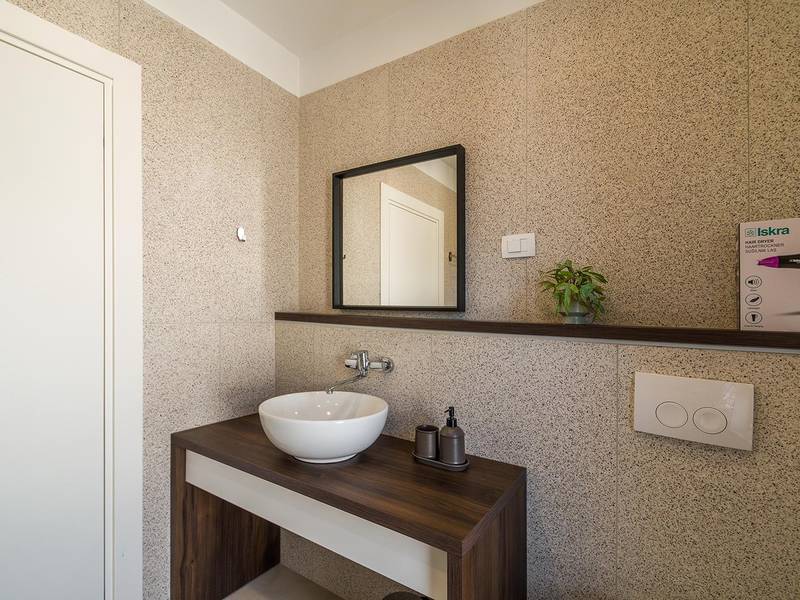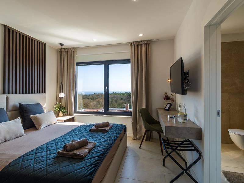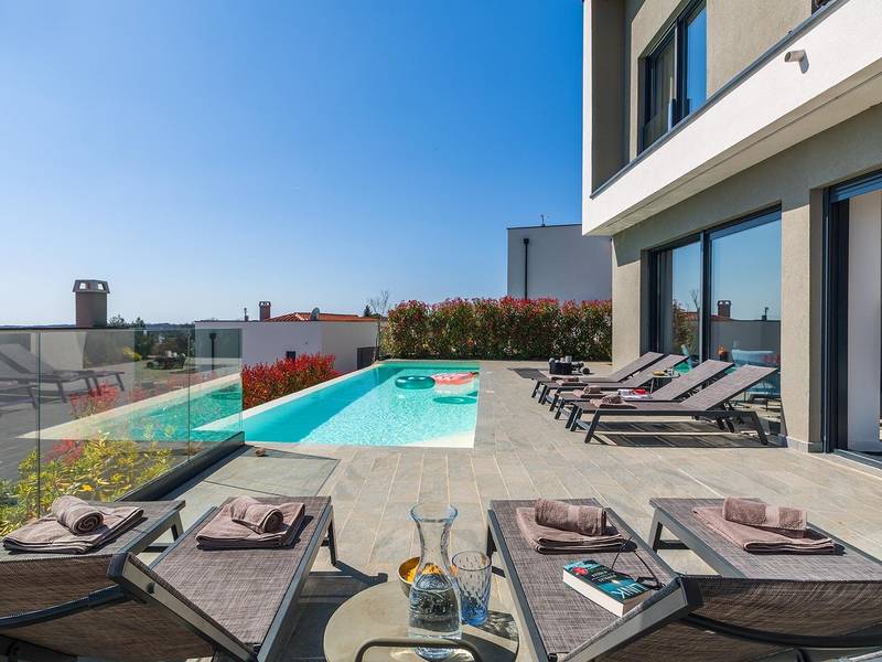 Villa Seastar is waar ontspannen leven, design en een gevoel van lichtheid samenkomen. Deze moderne villa ligt dicht bij de zee en is perfect voor families en vrienden die in hun eigen tempo van Istrië willen genieten. Er zijn drie slaapkamers met tweepersoonsbedden en één met een uitschuifbaar bed, die comfortabel plaats bieden aan maximaal acht gasten. De ruime open woonkamer kijkt uit over het overloopzwembad, de zee en het eiland Cres, en creëert een lichte, verbonden sfeer voor een lang ontbijt, zonnebaden of 's avonds ontspannen bij zonsondergang. Voor gasten die graag actief blijven, biedt Villa Seastar oefenmatten, verschillende Pilates oefenballen in verschillende maten, weerstandsbanden en zwarte rollen om te stretchen en te ontspannen. Gasten kunnen ook gebruik maken van gratis fietsverhuur bij een lokale partner in Krnica - ideaal om de omgeving op twee wielen te verkennen. Alles voelt hier ontspannen, modern en moeiteloos - een vleugje luxe in balans met wellness en natuur. De villa De villa is ruim en elegant, verdeeld over twee verdiepingen en is gevuld met natuurlijk licht dankzij de grote glazen muren die uitkijken op zee. Het ontwerp combineert strakke lijnen, neutrale tinten en natuurlijke materialen, waardoor een rustgevende en comfortabele sfeer ontstaat. Op de begane grond sluiten de open woonkamer, eethoek en volledig uitgeruste keuken allemaal direct aan op het terras, waardoor er een naadloze overgang is tussen binnen- en buitenruimtes. Elk detail is zorgvuldig gekozen om functionaliteit en elegantie te combineren en gasten een echt gevoel van ontspanning te bieden. Slaapkamers en indeling De villa beschikt over vier slaapkamers, elk met een eigen badkamer. Drie slaapkamers zijn voorzien van tweepersoonsbedden, terwijl de vierde, gelegen op de begane grond, een uitschuifbaar eenpersoonsbed heeft dat een comfortabel tweepersoonsbed kan worden. Alle kamers zijn voorzien van airconditioning, smaakvol ingericht en gevuld met natuurlijk licht. Eén badkamer is uitgerust met een ligbad, terwijl de andere zijn voorzien van moderne inloopdouches. Het verfijnde ontwerp en het gebruik van natuurlijke materialen creëren een rustige sfeer, ideaal om tot rust te komen na een dag aan zee. Buitenruimte Het hoogtepunt van Villa SeaStar is het prachtige overloopzwembad met uitzicht op zee, perfect gepositioneerd om uit te kijken over de horizon en het eiland Cres. Rondom het zwembad is er een ruim terras met ligstoelen, parasols en een eethoek - de perfecte plek voor een kopje koffie 's ochtends, ontspanning of een diner onder de sterren. Er is ook een barbecueplaats beschikbaar, terwijl het omliggende mediterrane groen zorgt voor privacy en rust. Extra informatie De villa biedt WiFi, privéparkeergelegenheid, airconditioning in de hele villa, een wasmachine en een vaatwasser.Gasten kunnen gebruik maken van de aanwezige Pilates- en fitnessapparatuur. Zwembadverwarming met een warmtepomp is op aanvraag beschikbaar in april, mei, september en oktober - tegen een toeslag van 200,00 EUR per week, afhankelijk van de weersomstandigheden. Het huis is niet geschikt voor jeugdgroepen. Huisdieren zijn niet toegestaan. Roken binnenshuis is niet toegestaan.