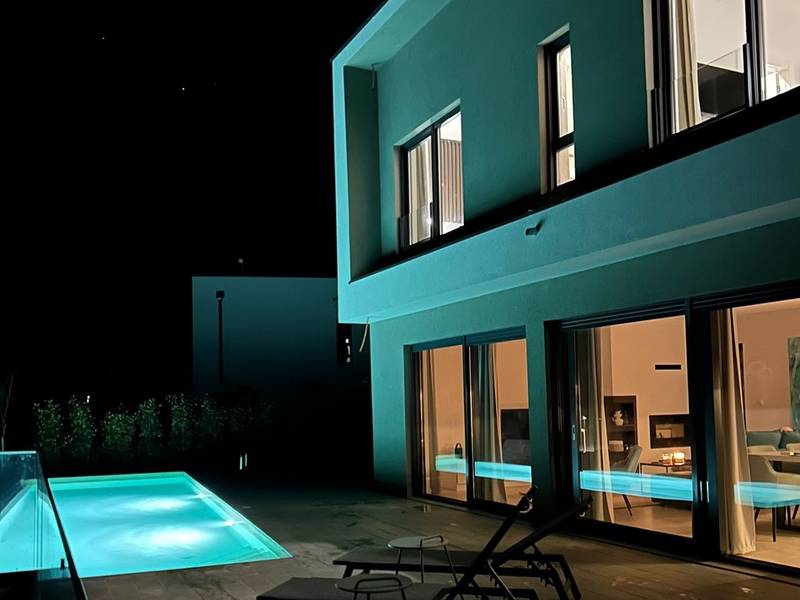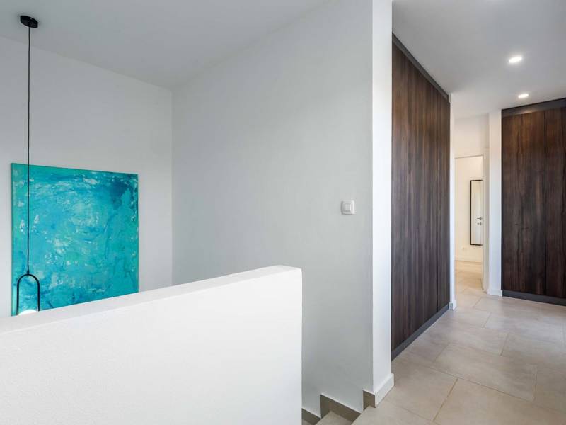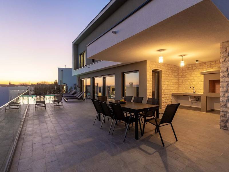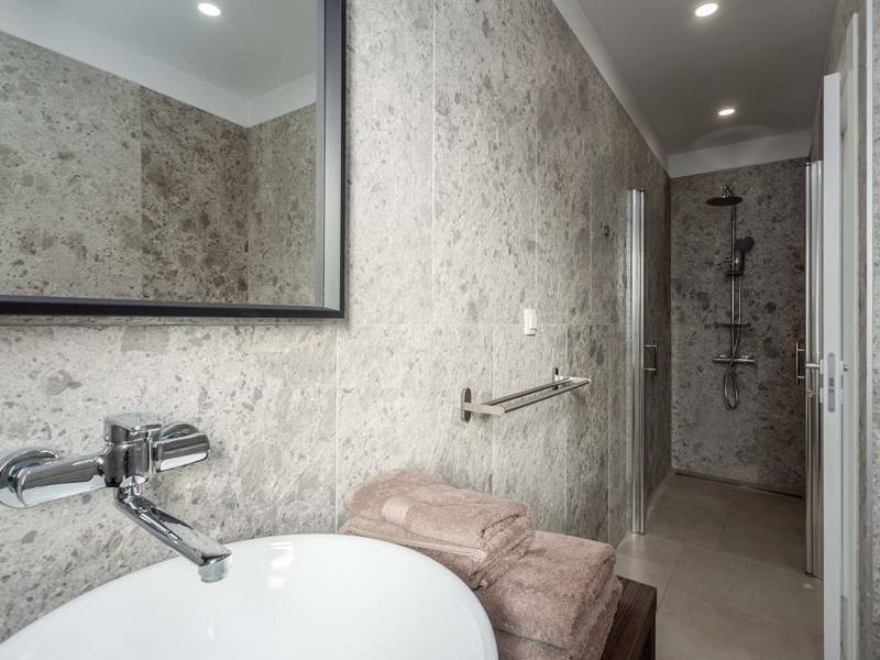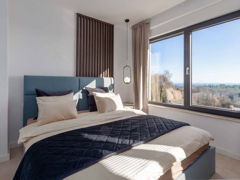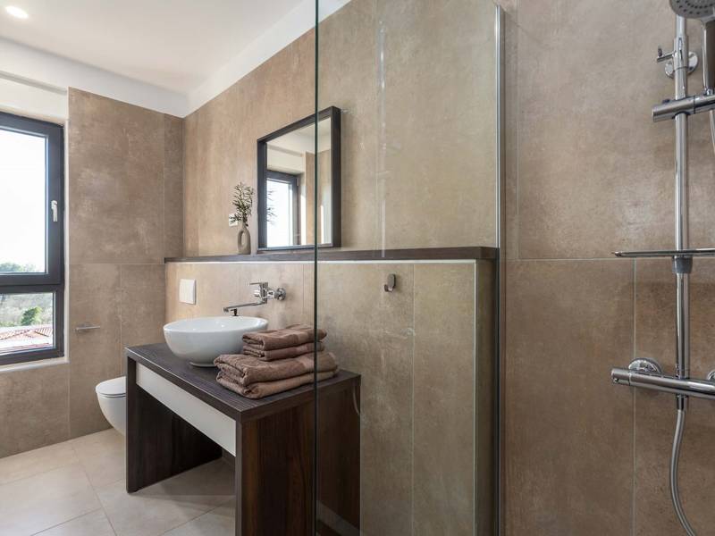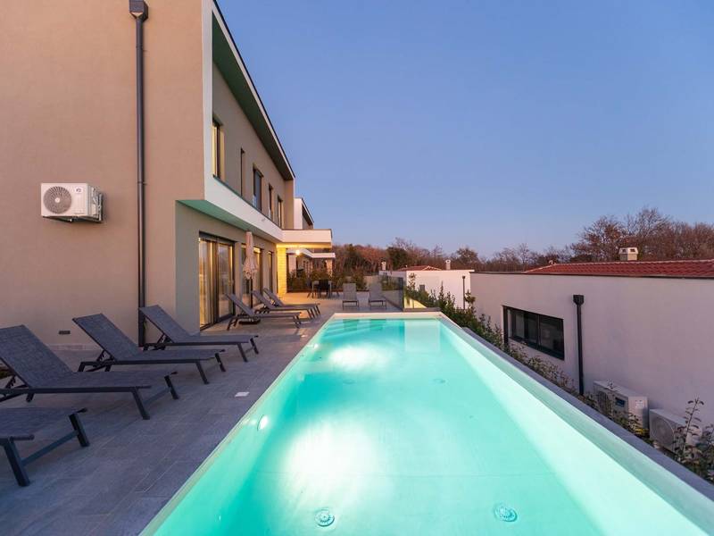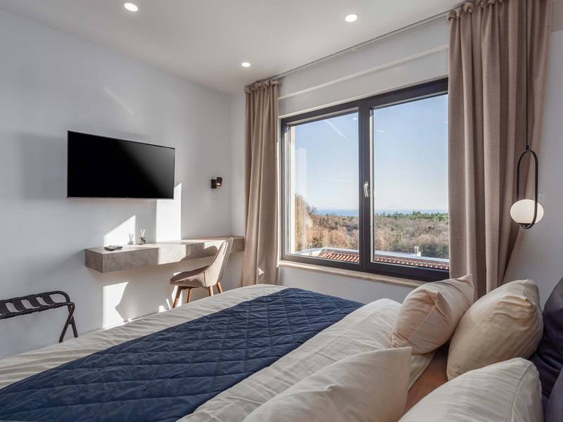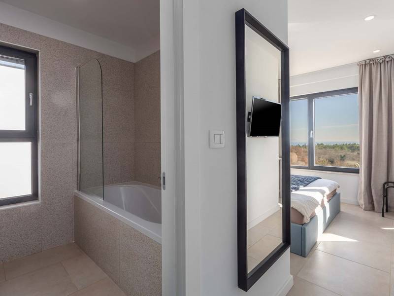 Villa Seastar is waar ontspannen leven, design en een gevoel van lichtheid samenkomen. Deze moderne villa ligt dicht bij de zee en is perfect voor families en vrienden die in hun eigen tempo van Istrië willen genieten. Er zijn drie slaapkamers met tweepersoonsbedden en één met een uitschuifbaar bed, die comfortabel plaats bieden aan maximaal acht gasten. De ruime open woonkamer kijkt uit over het overloopzwembad, de zee en het eiland Cres, en creëert een lichte, verbonden sfeer voor een lang ontbijt, zonnebaden of 's avonds ontspannen bij zonsondergang. Voor gasten die graag actief blijven, biedt Villa Seastar oefenmatten, verschillende Pilates oefenballen in verschillende maten, weerstandsbanden en zwarte rollen om te stretchen en te ontspannen. Gasten kunnen ook gebruik maken van gratis fietsverhuur bij een lokale partner in Krnica - ideaal om de omgeving op twee wielen te verkennen. Alles voelt hier ontspannen, modern en moeiteloos - een vleugje luxe in balans met wellness en natuur. De villa De villa is ruim en elegant, verdeeld over twee verdiepingen en is gevuld met natuurlijk licht dankzij de grote glazen muren die uitkijken op zee. Het ontwerp combineert strakke lijnen, neutrale tinten en natuurlijke materialen, waardoor een rustgevende en comfortabele sfeer ontstaat. Op de begane grond sluiten de open woonkamer, eethoek en volledig uitgeruste keuken allemaal direct aan op het terras, waardoor er een naadloze overgang is tussen binnen- en buitenruimtes. Elk detail is zorgvuldig gekozen om functionaliteit en elegantie te combineren en gasten een echt gevoel van ontspanning te bieden. Slaapkamers en indeling De villa beschikt over vier slaapkamers, elk met een eigen badkamer. Drie slaapkamers zijn voorzien van tweepersoonsbedden, terwijl de vierde, gelegen op de begane grond, een uitschuifbaar eenpersoonsbed heeft dat een comfortabel tweepersoonsbed kan worden. Alle kamers zijn voorzien van airconditioning, smaakvol ingericht en gevuld met natuurlijk licht. Eén badkamer is uitgerust met een ligbad, terwijl de andere zijn voorzien van moderne inloopdouches. Het verfijnde ontwerp en het gebruik van natuurlijke materialen creëren een rustige sfeer, ideaal om tot rust te komen na een dag aan zee. Buitenruimte Het hoogtepunt van Villa SeaStar is het prachtige overloopzwembad met uitzicht op zee, perfect gepositioneerd om uit te kijken over de horizon en het eiland Cres. Rondom het zwembad is er een ruim terras met ligstoelen, parasols en een eethoek - de perfecte plek voor een kopje koffie 's ochtends, ontspanning of een diner onder de sterren. Er is ook een barbecueplaats beschikbaar, terwijl het omliggende mediterrane groen zorgt voor privacy en rust. Extra informatie De villa biedt WiFi, privéparkeergelegenheid, airconditioning in de hele villa, een wasmachine en een vaatwasser.Gasten kunnen gebruik maken van de aanwezige Pilates en fitnessapparatuur, evenals gratis fietsen die worden aangeboden door een lokale partner in Krnica. Zwembadverwarming met een warmtepomp is op aanvraag beschikbaar in april, mei, september en oktober - tegen een toeslag van 200,00 EUR per week, afhankelijk van de weersomstandigheden. Het huis is niet geschikt voor jeugdgroepen. Huisdieren zijn niet toegestaan. Roken is binnenshuis niet toegestaan.