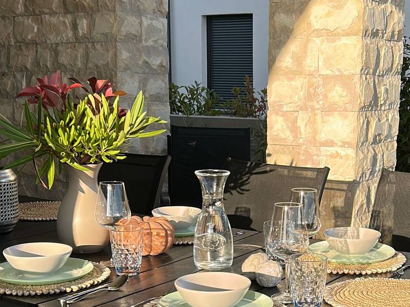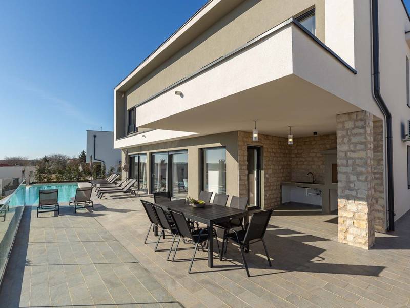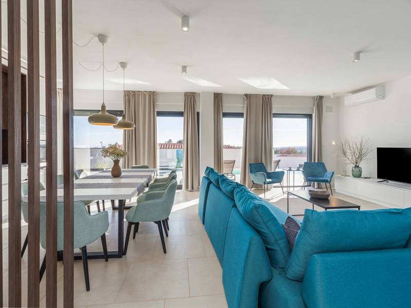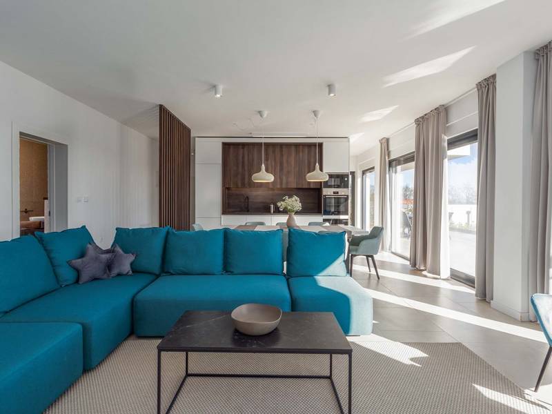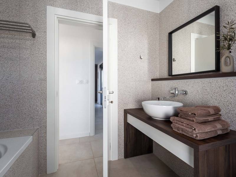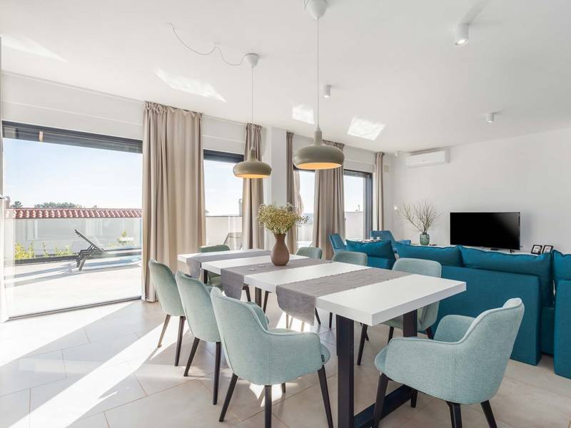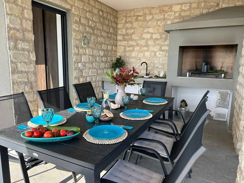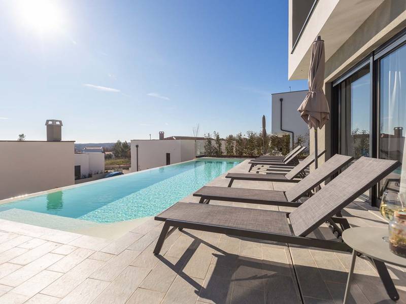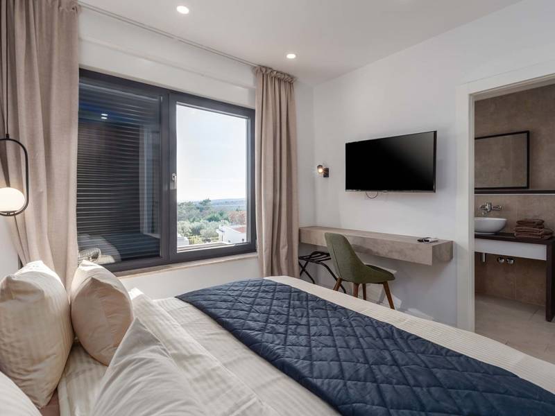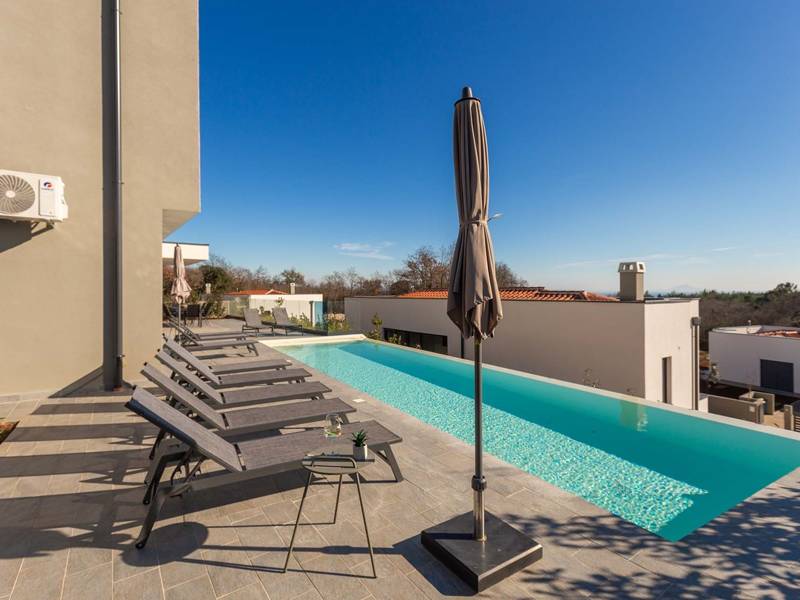 Villa Seastar is waar ontspannen leven, design en een gevoel van lichtheid samenkomen. Deze moderne villa ligt dicht bij de zee en is perfect voor families en vrienden die in hun eigen tempo van Istrië willen genieten. Er zijn drie slaapkamers met tweepersoonsbedden en één met een uitschuifbaar bed, die comfortabel plaats bieden aan maximaal acht gasten. De ruime open woonkamer kijkt uit over het overloopzwembad, de zee en het eiland Cres, en creëert een lichte, verbonden sfeer voor een lang ontbijt, zonnebaden of 's avonds ontspannen bij zonsondergang. Voor gasten die graag actief blijven, biedt Villa Seastar oefenmatten, verschillende Pilates oefenballen in verschillende maten, weerstandsbanden en zwarte rollen om te stretchen en te ontspannen. Gasten kunnen ook gebruik maken van gratis fietsverhuur bij een lokale partner in Krnica - ideaal om de omgeving op twee wielen te verkennen. Alles voelt hier ontspannen, modern en moeiteloos - een vleugje luxe in balans met wellness en natuur. De villa De villa is ruim en elegant, verdeeld over twee verdiepingen en is gevuld met natuurlijk licht dankzij de grote glazen muren die uitkijken op zee. Het ontwerp combineert strakke lijnen, neutrale tinten en natuurlijke materialen, waardoor een rustgevende en comfortabele sfeer ontstaat. Op de begane grond sluiten de open woonkamer, eethoek en volledig uitgeruste keuken allemaal direct aan op het terras, waardoor er een naadloze overgang is tussen binnen- en buitenruimtes. Elk detail is zorgvuldig gekozen om functionaliteit en elegantie te combineren en gasten een echt gevoel van ontspanning te bieden. Slaapkamers en indeling De villa beschikt over vier slaapkamers, elk met een eigen badkamer. Drie slaapkamers zijn voorzien van tweepersoonsbedden, terwijl de vierde, gelegen op de begane grond, een uitschuifbaar eenpersoonsbed heeft dat een comfortabel tweepersoonsbed kan worden. Alle kamers zijn voorzien van airconditioning, smaakvol ingericht en gevuld met natuurlijk licht. Eén badkamer is uitgerust met een ligbad, terwijl de andere zijn voorzien van moderne inloopdouches. Het verfijnde ontwerp en het gebruik van natuurlijke materialen creëren een rustige sfeer, ideaal om tot rust te komen na een dag aan zee. Buitenruimte Het hoogtepunt van Villa SeaStar is het prachtige overloopzwembad met uitzicht op zee, perfect gepositioneerd om uit te kijken over de horizon en het eiland Cres. Rondom het zwembad is er een ruim terras met ligstoelen, parasols en een eethoek - de perfecte plek voor een kopje koffie 's ochtends, ontspanning of een diner onder de sterren. Er is ook een barbecueplaats beschikbaar, terwijl het omliggende mediterrane groen zorgt voor privacy en rust. Extra informatie De villa biedt WiFi, privéparkeergelegenheid, airconditioning in de hele villa, een wasmachine en een vaatwasser.Gasten kunnen gebruik maken van de aanwezige Pilates en fitnessapparatuur, evenals gratis fietsen die worden aangeboden door een lokale partner in Krnica. Zwembadverwarming met een warmtepomp is op aanvraag beschikbaar in april, mei, september en oktober - tegen een toeslag van 200,00 EUR per week, afhankelijk van de weersomstandigheden. Het huis is niet geschikt voor jeugdgroepen. Huisdieren zijn niet toegestaan. Roken is binnenshuis niet toegestaan.