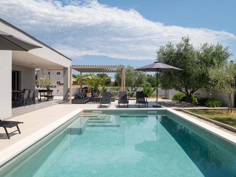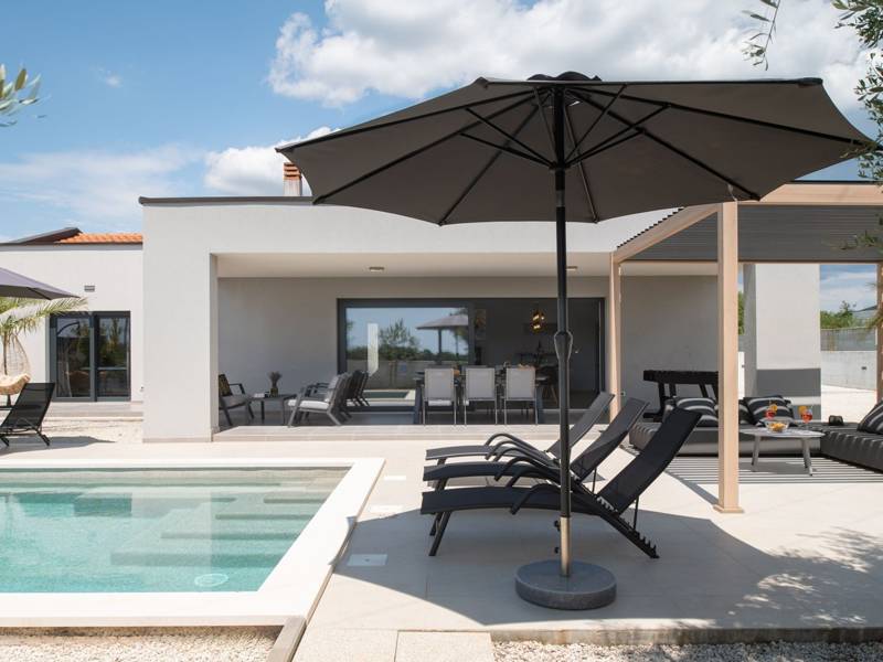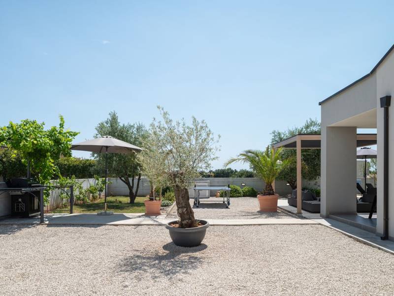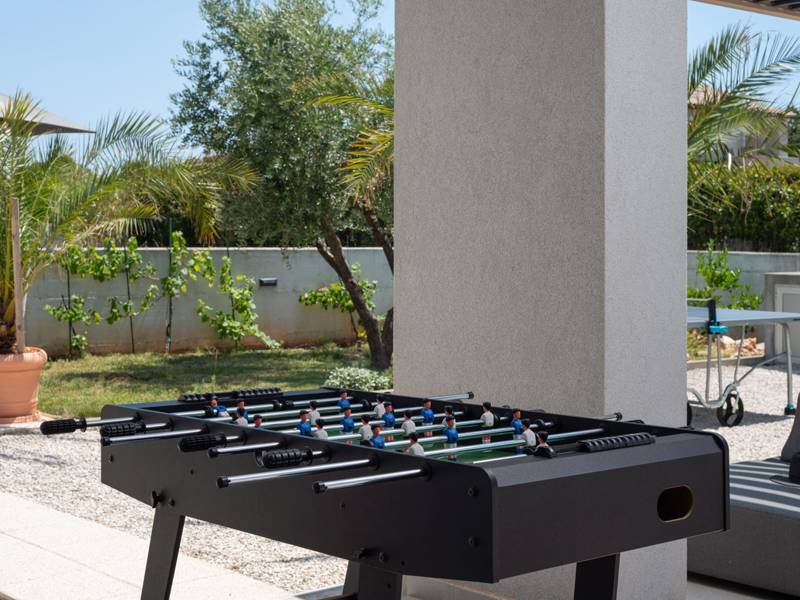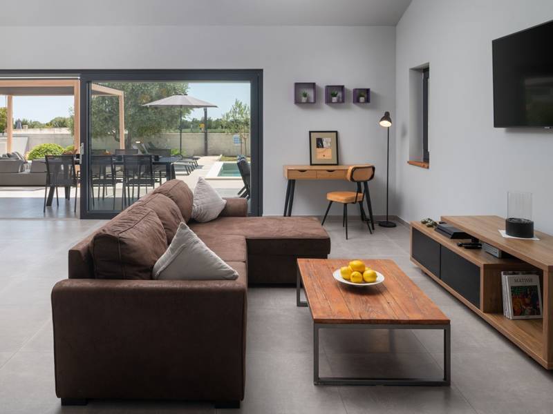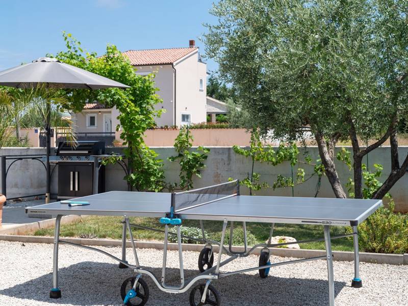 Welkom bij Villa Esti, gelegen in een schilderachtige landelijke omgeving, biedt een rustig toevluchtsoord ideaal voor maximaal 6 gasten. Deze villa is gunstig gelegen op slechts een klein eindje rijden van de historische stad Pula, waardoor het een perfecte uitvalsbasis is voor het verkennen van het schiereiland Istrië. Villa Esti beschikt over drie slaapkamers met airconditioning, elk uitgerust met een Android-tv voor uw vermaak. Twee van de slaapkamers hebben tweepersoonsbedden en een eigen badkamer, waarvan één met een schuifdeur die uitkomt op een terras met uitzicht op het zwembad. De derde slaapkamer heeft twee eenpersoonsbedden en is dus ideaal voor vrienden of kinderen. Een grote badkamer op de gang biedt een douche, toilet en wasmachine voor extra gemak. Het interieur van de villa is ontworpen in een eigentijdse stijl, gekenmerkt door strakke lijnen en een moderne inrichting. De ruime woonkamer is voorzien van een comfortabele bank, tv, stereo-installatie en een PlayStation 4 met twee controllers en verschillende games, naast een aparte wijnkoelkast - perfect voor entertainment en ontspanning. De volledig uitgeruste keuken en eethoek creëren een gezellige sfeer voor maaltijden. Deze ruimtes zijn versierd met grote ramen die niet alleen natuurlijk licht binnenbrengen, maar ook een uitgang bieden naar het zwembadterras, waardoor binnencomfort wordt geïntegreerd met buitenfaciliteiten. Deze buitenruimte is ingericht met een eethoek voor zes personen en een loungehoek, ideaal om te genieten van de adembenemende zonsondergangen met een glas wijn of gewoon om te ontspannen bij het zwembad. De ommuurde tuin beschikt over drie parkeerplaatsen, een zwembad met buitendouche, een gasbarbecue en verschillende spelletjes, waaronder een voetbaltafel, tafeltennis, badminton en waterpolodoelen. Voor degenen die de schoonheid van Istrië willen verkennen, liggen zowel de west- als de oostkust van het schiereiland binnen 10 kilometer. In het nabijgelegen centrum van Pula vind je verschillende grote supermarkten, een breed scala aan activiteiten, bars, restaurants en uitstekende mogelijkheden om te winkelen. Villa Esti is de perfecte keuze voor een rustige vakantie in een prachtige landelijke omgeving met alle gemakken van het moderne leven en gemakkelijke toegang tot lokale attracties.