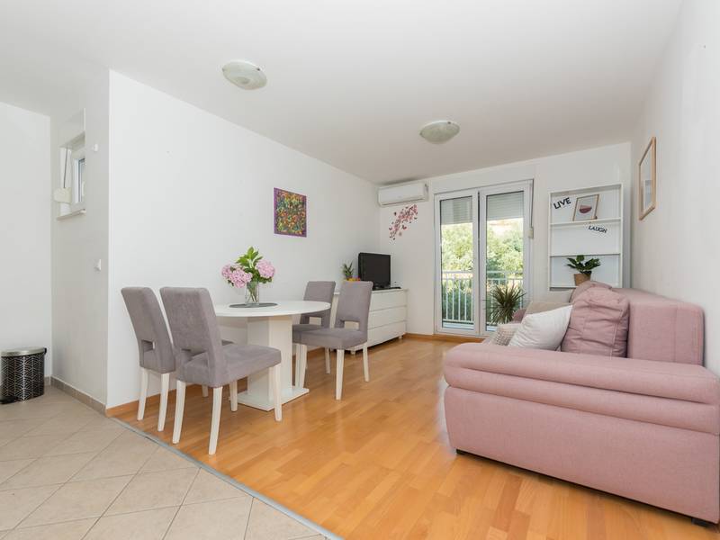 Appartement View is gelegen in Makarska. Het heeft 50m2 is gelegen op de tweede verdieping van een gebouw en biedt accommodatie voor 4 personen. Het bestaat uit een volledig uitgeruste keuken met eetkamer, woonkamer met uitgang naar het balkon en een grote kamer met een tweepersoonsbed. Het balkon heeft een prachtig uitzicht op de bergen. In de woonkamer is een slaapbank voor twee personen. Het heeft een badkamer met bad. Appartement View is volledig uitgerust met diverse extra faciliteiten; balkon, gratis Wifi, wasmachine, airconditioning en gratis parkeergelegenheid voor de deur. De toeslag voor huisdieren is 10 euro per nacht. Object ID: ctma360