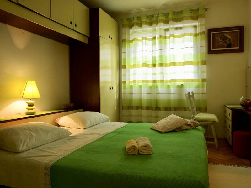 Het mooie appartement Zorka ligt in Makarska, een stad in centraal Dalmatië. Het appartement met unieke details bestaat uit twee slaapkamers met een tweepersoonsbed, twee badkamers met een douche, een bad en een wasmachine, en een grote woonkamer. In de hoofdruimte vind je een volledig uitgeruste moderne keuken met keukengerei en alle benodigde moderne kookapparatuur, een eethoek en een comfortabele zithoek met een tv. De bank kan gebruikt worden als extra bed voor de vijfde gast. De hoofdruimte is voorzien van airconditioning. Vanaf hier kunt u het balkon betreden waar u een kleine tafel en stoelen kunt vinden - gelegen aan de voorzijde van het gebouw, is dit gebied perfect om te genieten in de zon en warme avonden in Makarska. Prive parkeerplaats is tot uw beschikking.