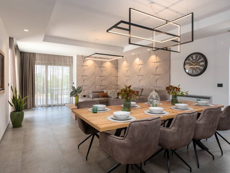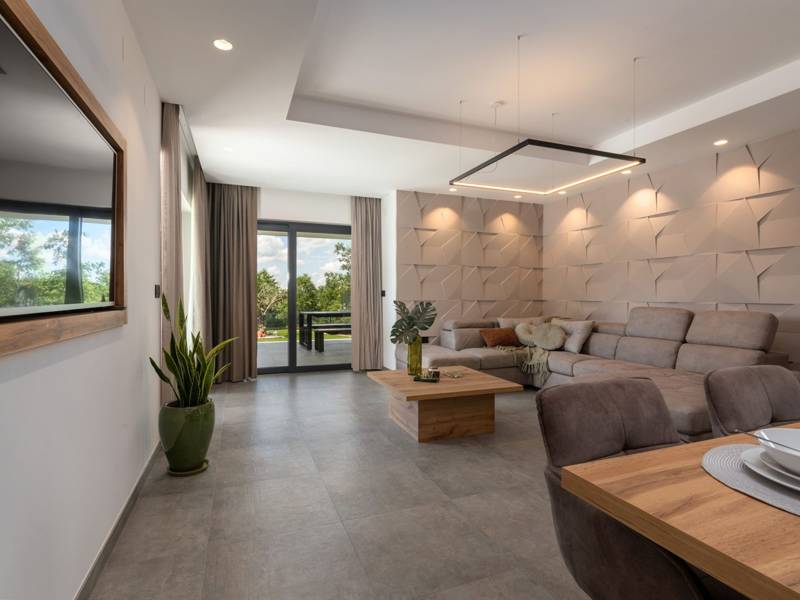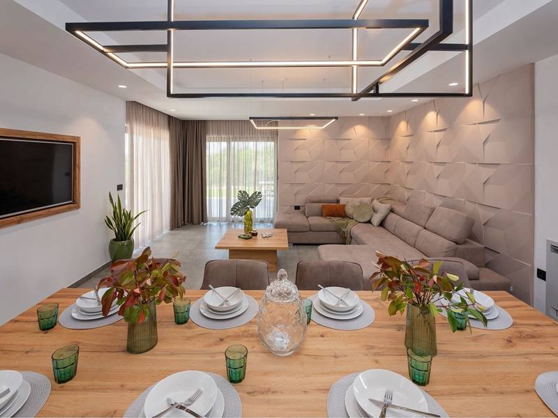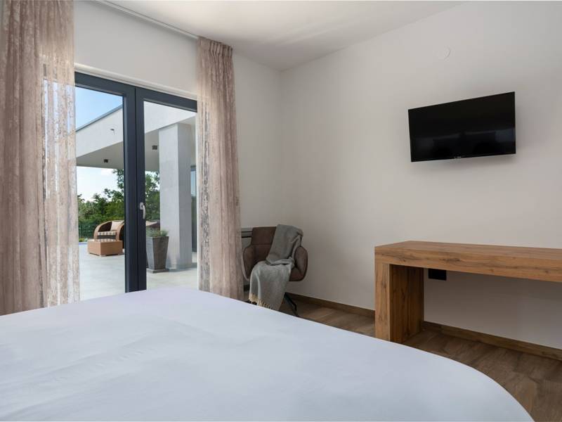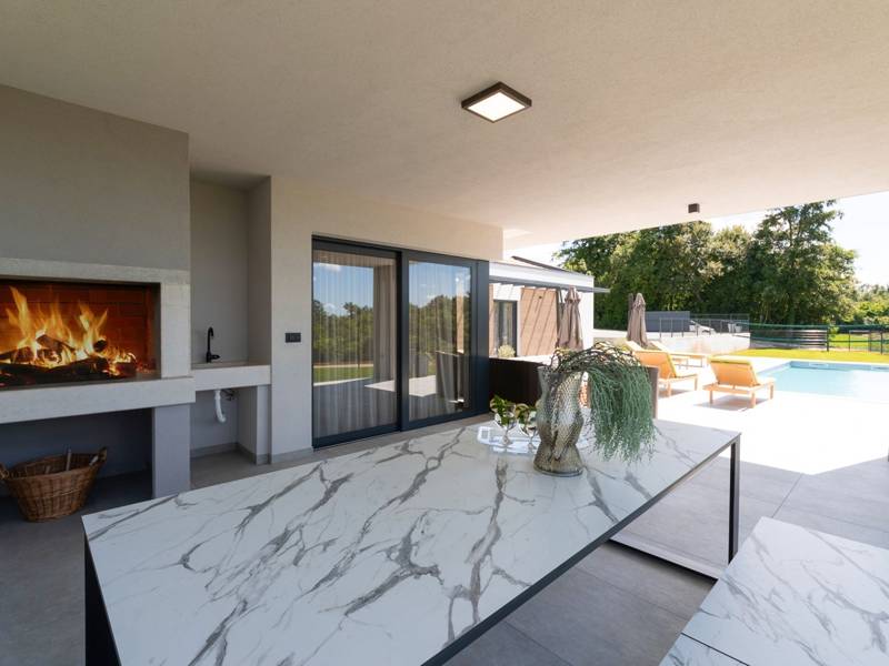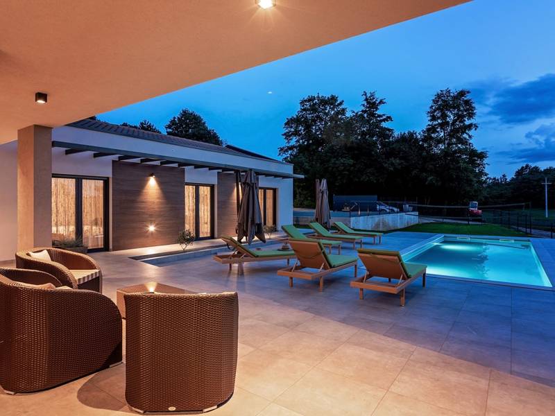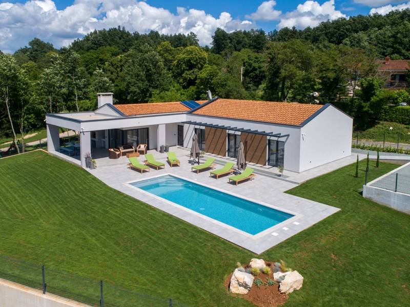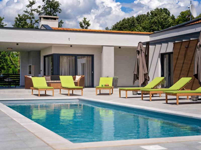 Villa Lara Gracisce is een prachtig modern huis met een zwembad, geschikt voor maximaal 8 gasten. Gelegen op een rustige locatie in de buurt van het charmante dorpje Gracisce in Centraal-Istrië, belooft dit vakantiehuis een serene vakantie. Gelegen in een volledig omheinde, goed onderhouden tuin van 1750 m², biedt de Villa Lara verschillende voorzieningen voor haar gasten. Hiertoe behoren een zwembad van 37 m², een badminton- en volleybalveld, een overdekt terras met barbecue en een tafel en banken om buiten te eten. Daarnaast beschikt het over drie parkeerplaatsen en buitenspeeltoestellen, zoals een schommel en een glijbaan, net buiten het pand, die zorgen voor vermaak voor de jongere gasten. Het interieur van de villa heeft een royale leefruimte van 180 m², volledig voorzien van airconditioning voor maximaal comfort, plus een overdekt terras van 30 m². De indeling bestaat uit een ruime woonkamer met een comfortabele zithoek, een eettafel, een volledig uitgeruste keuken en een toilet. De accommodatie bestaat uit drie slaapkamers, elk met een tweepersoonsbed, satelliet-tv, airconditioning en een eigen douche / toilet. De vierde slaapkamer heeft een stapelbed. LET OP: Jongerengroepen worden alleen geaccepteerd op afspraak. Een jeugdgroep bestaat uit individuen van 26 jaar of jonger. Als u een jeugdgroep bent, neem dan contact met ons op voordat u reserveert, aangezien de reservering na het reserveren geweigerd kan worden, wat bij aankomst in het pand of tijdens uw verblijf kan zijn, en u mogelijk geen geld terug krijgt.