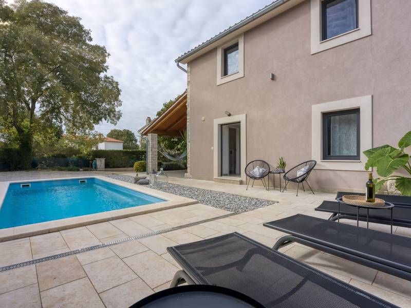 Gelegen in het rustige dorpje Pinezići in de buurt van Marčana in Istrië, biedt dit moderne vakantiehuis een ideale ruimte voor ontspanning en ontsnapping aan de natuur. Het huis beschikt over drie ruime slaapkamers, elk met een eigen badkamer, en een open woonkamer die verbonden is met een volledig uitgeruste keuken. Vanuit de woonkamer is er toegang tot een prachtig aangelegde tuin met een privézwembad, perfect om te genieten van zonnige dagen. Privéparkeergelegenheid op het erf, terras, barbecue en gratis Wi-Fi staan ter beschikking van de gasten. De dichtstbijzijnde winkels en restaurants bevinden zich in het nabijgelegen Vodnjan, en de zee ligt op slechts 15 kilometer afstand. Het huis is uitgerust met alles wat nodig is voor een zorgeloze en aangename vakantie op het platteland. Huisdieren zijn toegestaan, met voorafgaande kennisgeving en aanvraag.