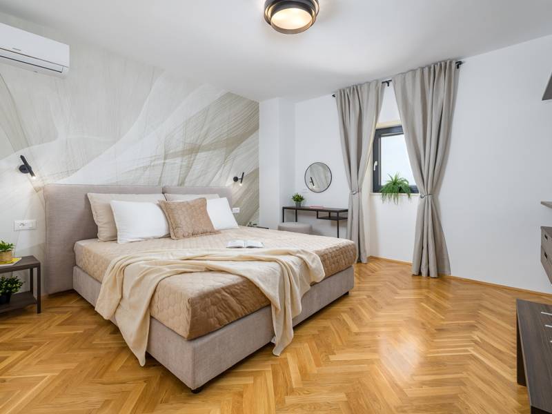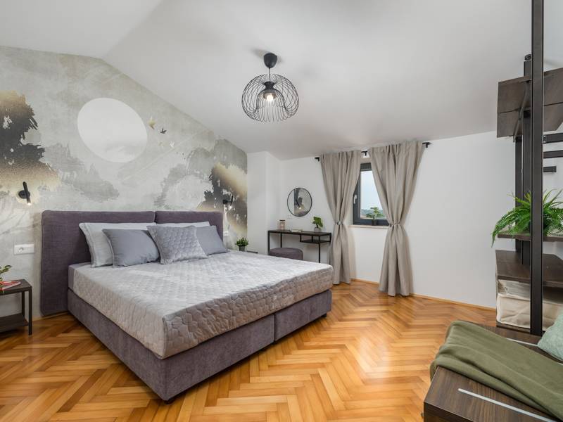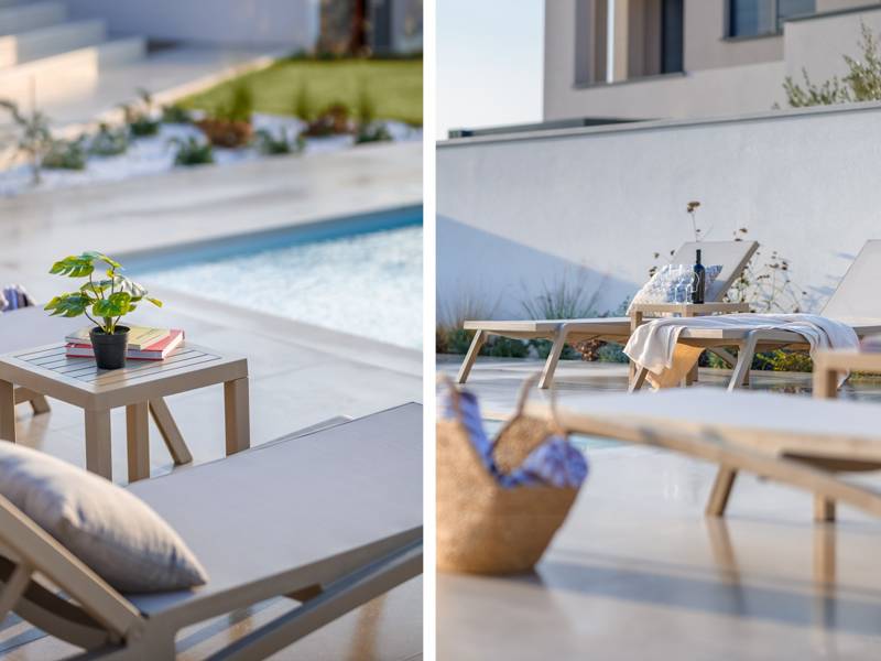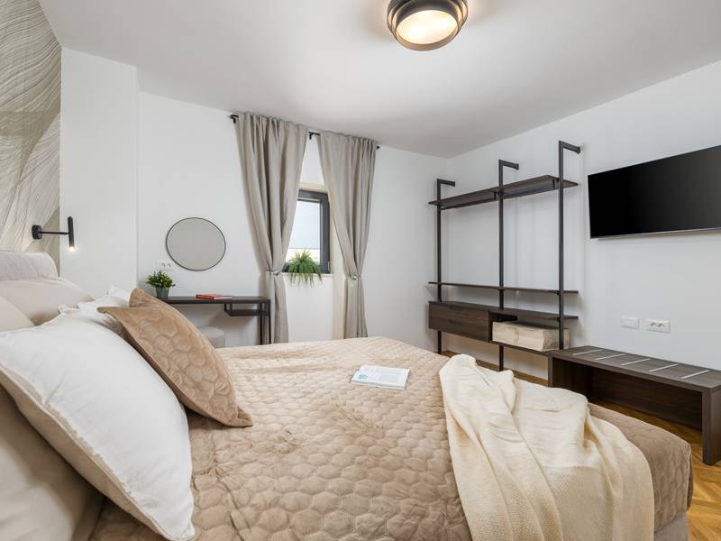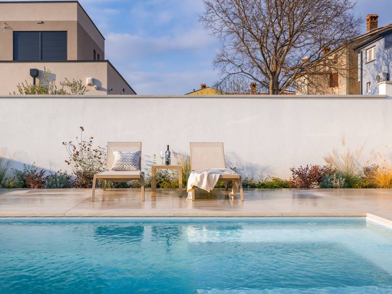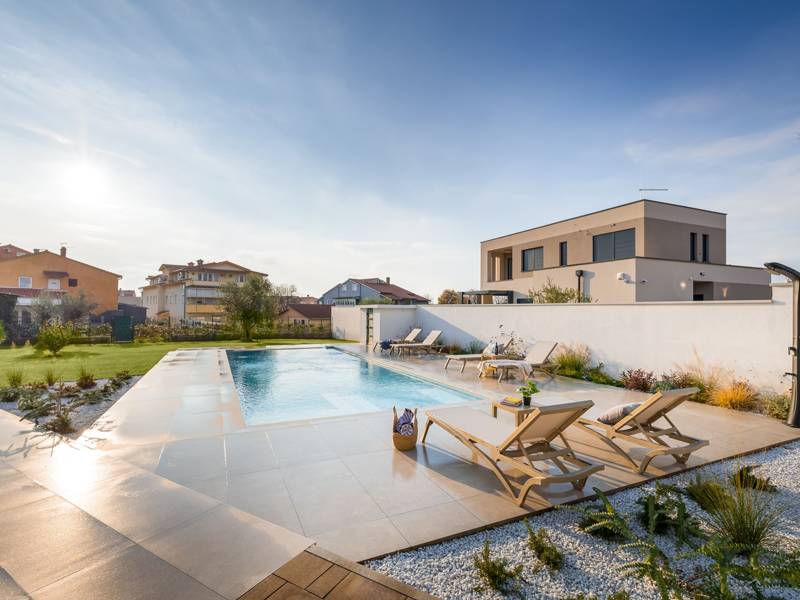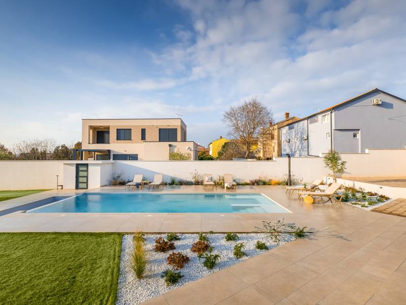 Welkom bij Villa Marija, een stijlvolle vakantievilla met een privézwembad gelegen in het hart van de levendige kustplaats Medulin. De villa heeft een perfecte ligging en biedt een zeldzame combinatie van privacy en comfort, terwijl stranden, restaurants, bars en winkels allemaal op loopafstand liggen. Als je droomt van een moderne villa dicht bij zee zonder de rust op te geven, dan is Villa Marija de ideale keuze. Deze elegante villa ligt op een privéperceel van 800 m2 en biedt 280 m2 prachtig ontworpen leefruimte en een prachtig privé overloopzwembad van 44 m2, perfect voor een verfrissende duik op warme zomerdagen of om te ontspannen onder de open hemel. Villa Marija is ontworpen met ontspanning in het achterhoofd en biedt comfortabel plaats aan maximaal 8 gasten. Het beschikt over vier ruime en smaakvol ingerichte slaapkamers, elk met een eigen badkamer, airconditioning, tv en muskietennetten. Twee van de slaapkamers hebben directe toegang tot een balkon, een heerlijke plek om te genieten van een kopje koffie in de ochtend of een briesje in de avond. Dit maakt de villa een uitstekende keuze voor gezinnen of groepen vrienden die op zoek zijn naar comfort dicht bij het strand en het bruisende lokale leven. De begane grond verwelkomt je met een lichte en stijlvolle woonkamer die verbonden is met een eetruimte en een volledig uitgeruste moderne keuken met een kookeiland. Vanaf hier stap je direct op een overdekt terras met een barbecue, ideaal voor ontspannen ontbijten, lange lunches of avondbijeenkomsten. Op deze verdieping is ook een gastentoilet en een wasruimte voor extra gemak. Op de eerste verdieping vind je twee elegante slaapkamers, elk met een kingsize bed, een eigen badkamer, airconditioning, tv en klamboes. De bovenste verdieping biedt nog twee slaapkamers met hetzelfde hoge niveau van comfort en privacy, zodat elke gast zich thuis voelt. De buitenruimte is ontworpen om echt mediterraan te genieten. Een ruim zonnedek met acht ligstoelen omringt het zwembad, terwijl de overdekte eethoek je uitnodigt om te genieten van maaltijden in de schaduw. Steek de gasbarbecue aan, ontspan bij het zwembad of geniet gewoon van de vredige omgeving. Voor een extra vleugje luxe is er een privésauna beschikbaar in een apart tuinhuis - perfect voor diepe ontspanning na een dag op het strand. Het pand biedt privéparkeergelegenheid voor maximaal vier voertuigen, maar als je eenmaal aankomt, heb je je auto misschien helemaal niet meer nodig. Alles wat Medulin te bieden heeft - stranden, winkels, restaurants en bars - ligt op slechts een korte loopafstand. Of je nu luiert bij het zwembad in je privéoase of de charmante kustsfeer van Medulin verkent, Villa Marija belooft een onvergetelijke vakantie-ervaring. LET OP: - Eén hond is toegestaan tegen een toeslag van €15 per dag. Een tweede hond is alleen mogelijk na voorafgaande aanvraag en bevestiging. - Een kinderstoel en babybedje zijn beschikbaar op aanvraag. - Jeugdgroepen worden alleen geaccepteerd na voorafgaande afspraak. Een jeugdgroep is een groep waarvan alle leden 26 jaar of jonger zijn. Als u een jeugdgroep bent, neem dan contact met ons op voordat u reserveert, aangezien boekingen na bevestiging kunnen worden geweigerd, ook bij aankomst of tijdens het verblijf, en er geen restitutie kan worden verleend. - Een schadeborg van €500 is vereist en zal volledig worden terugbetaald na vertrek, mits er geen schade is opgetreden.