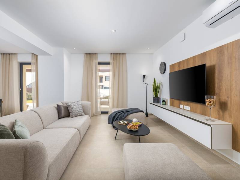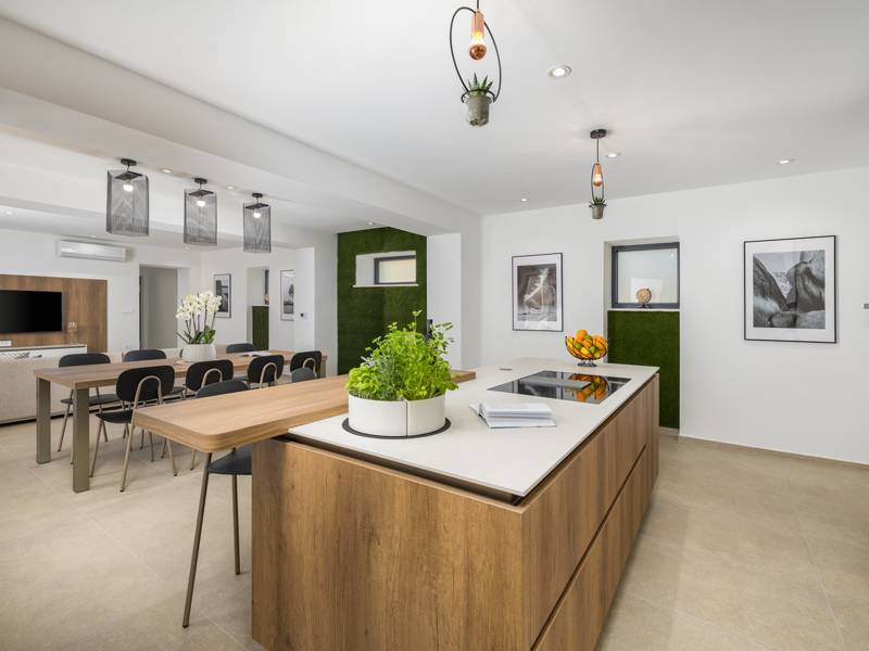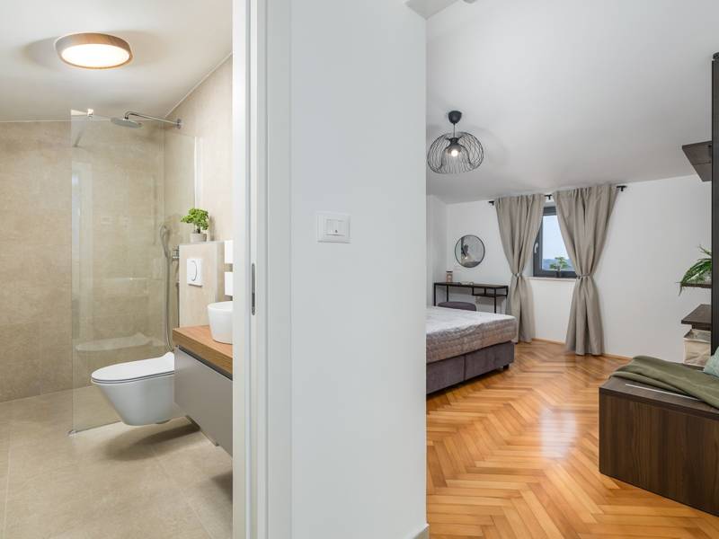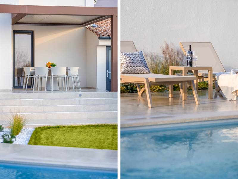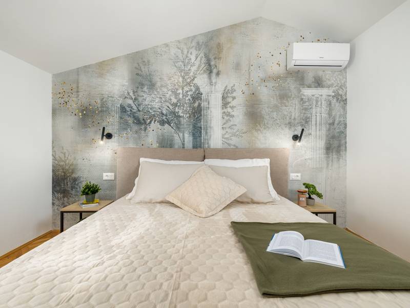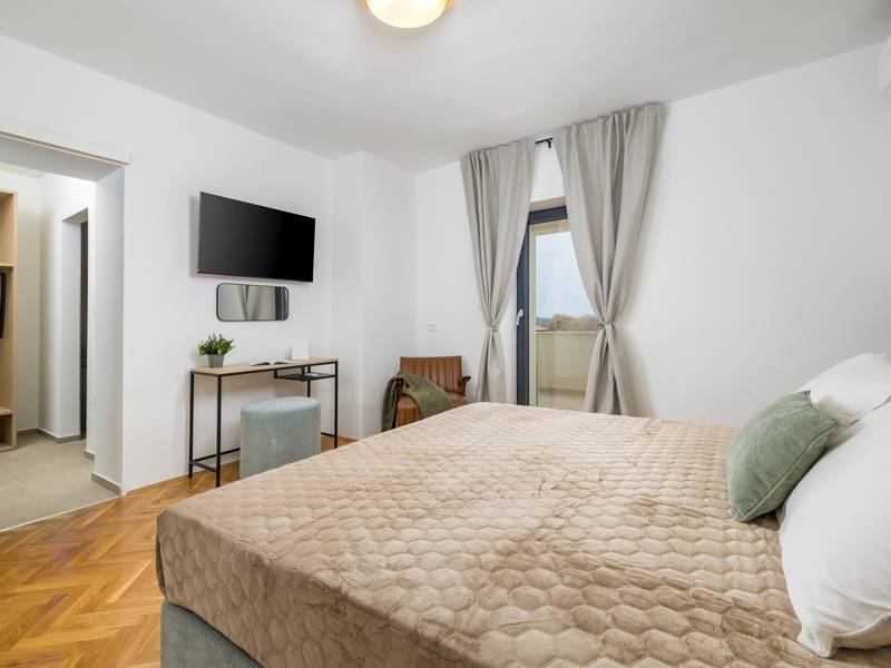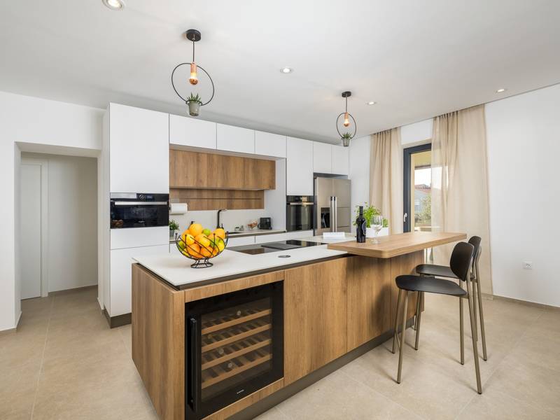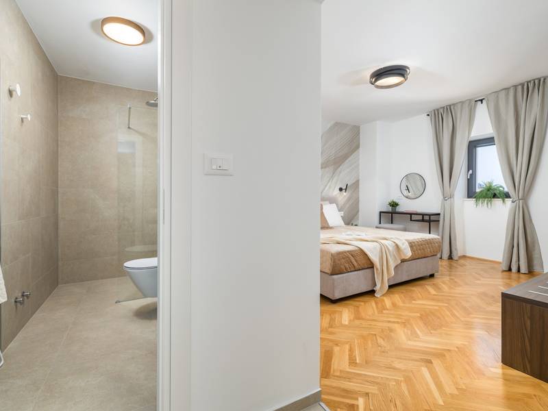 Welkom bij Villa Marija, een stijlvolle vakantievilla met een privézwembad gelegen in het hart van de levendige kustplaats Medulin. De villa heeft een perfecte ligging en biedt een zeldzame combinatie van privacy en comfort, terwijl stranden, restaurants, bars en winkels allemaal op loopafstand liggen. Als je droomt van een moderne villa dicht bij zee zonder de rust op te geven, dan is Villa Marija de ideale keuze. Deze elegante villa ligt op een privéperceel van 800 m2 en biedt 280 m2 prachtig ontworpen leefruimte en een prachtig privé overloopzwembad van 44 m2, perfect voor een verfrissende duik op warme zomerdagen of om te ontspannen onder de open hemel. Villa Marija is ontworpen met ontspanning in het achterhoofd en biedt comfortabel plaats aan maximaal 8 gasten. Het beschikt over vier ruime en smaakvol ingerichte slaapkamers, elk met een eigen badkamer, airconditioning, tv en muskietennetten. Twee van de slaapkamers hebben directe toegang tot een balkon, een heerlijke plek om te genieten van een kopje koffie in de ochtend of een briesje in de avond. Dit maakt de villa een uitstekende keuze voor gezinnen of groepen vrienden die op zoek zijn naar comfort dicht bij het strand en het bruisende lokale leven. De begane grond verwelkomt je met een lichte en stijlvolle woonkamer die verbonden is met een eetruimte en een volledig uitgeruste moderne keuken met een kookeiland. Vanaf hier stap je direct op een overdekt terras met een barbecue, ideaal voor ontspannen ontbijten, lange lunches of avondbijeenkomsten. Op deze verdieping is ook een gastentoilet en een wasruimte voor extra gemak. Op de eerste verdieping vind je twee elegante slaapkamers, elk met een kingsize bed, een eigen badkamer, airconditioning, tv en klamboes. De bovenste verdieping biedt nog twee slaapkamers met hetzelfde hoge niveau van comfort en privacy, zodat elke gast zich thuis voelt. De buitenruimte is ontworpen om echt mediterraan te genieten. Een ruim zonnedek met acht ligstoelen omringt het zwembad, terwijl de overdekte eethoek je uitnodigt om te genieten van maaltijden in de schaduw. Steek de gasbarbecue aan, ontspan bij het zwembad of geniet gewoon van de vredige omgeving. Voor een extra vleugje luxe is er een privésauna beschikbaar in een apart tuinhuis - perfect voor diepe ontspanning na een dag op het strand. Het pand biedt privéparkeergelegenheid voor maximaal vier voertuigen, maar als je eenmaal aankomt, heb je je auto misschien helemaal niet meer nodig. Alles wat Medulin te bieden heeft - stranden, winkels, restaurants en bars - ligt op slechts een korte loopafstand. Of je nu luiert bij het zwembad in je privéoase of de charmante kustsfeer van Medulin verkent, Villa Marija belooft een onvergetelijke vakantie-ervaring. LET OP: - Eén hond is toegestaan tegen een toeslag van €15 per dag. Een tweede hond is alleen mogelijk na voorafgaande aanvraag en bevestiging. - Een kinderstoel en babybedje zijn beschikbaar op aanvraag. - Jeugdgroepen worden alleen geaccepteerd na voorafgaande afspraak. Een jeugdgroep is een groep waarvan alle leden 26 jaar of jonger zijn. Als u een jeugdgroep bent, neem dan contact met ons op voordat u reserveert, aangezien boekingen na bevestiging kunnen worden geweigerd, ook bij aankomst of tijdens het verblijf, en er geen restitutie kan worden verleend. - Een schadeborg van €500 is vereist en zal volledig worden terugbetaald na vertrek, mits er geen schade is opgetreden.
