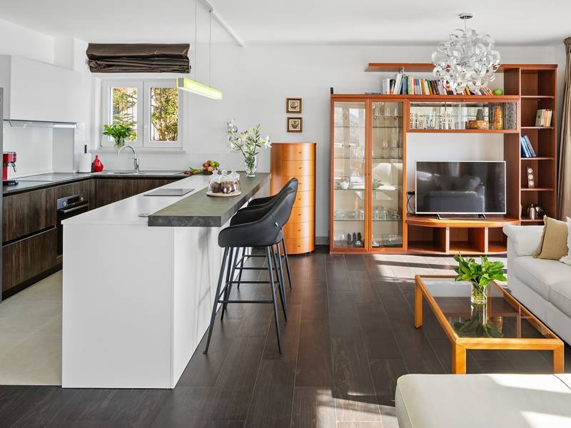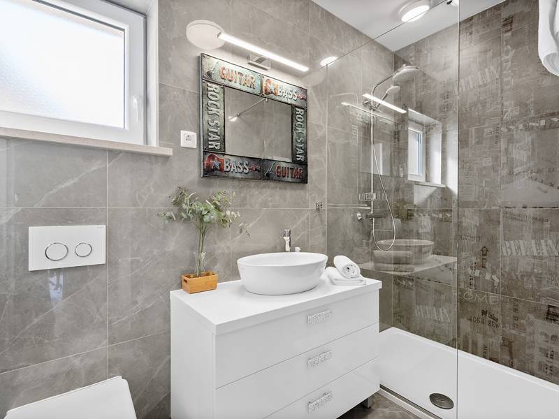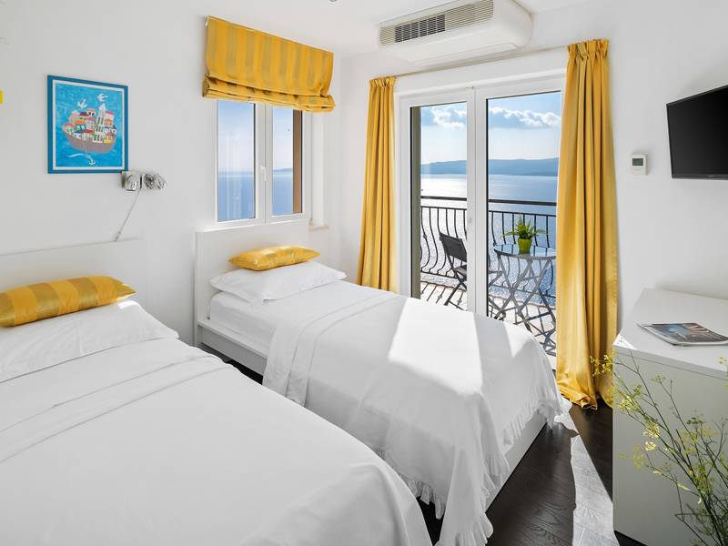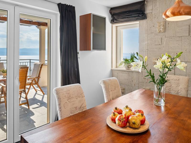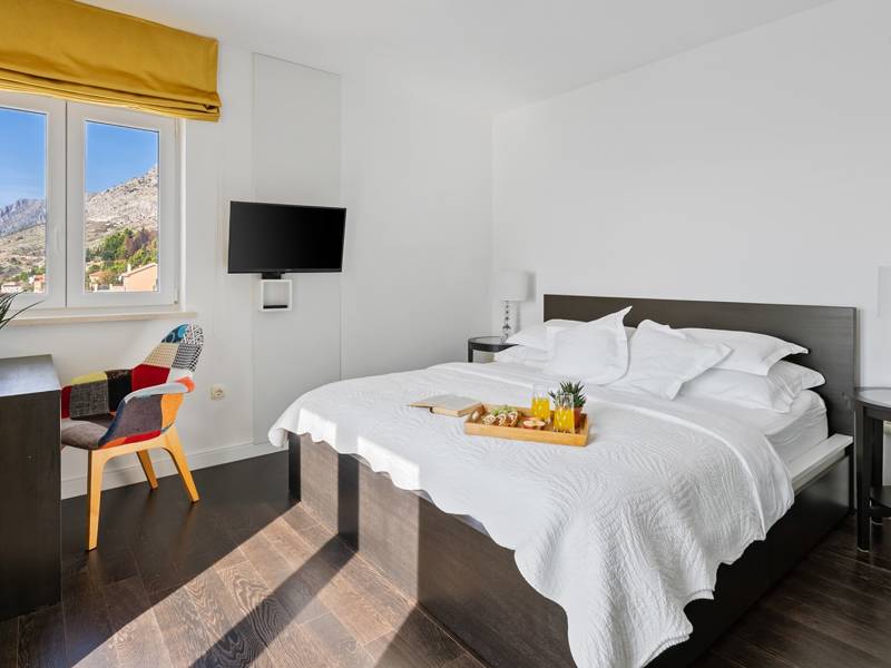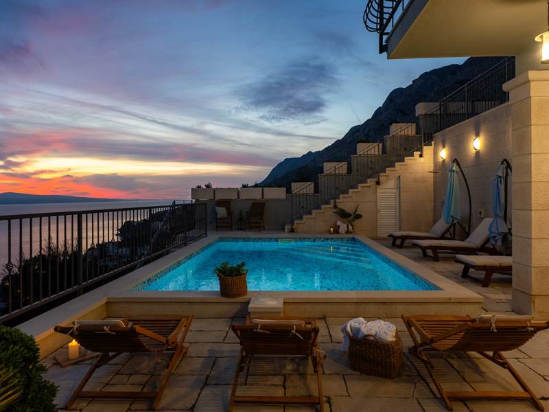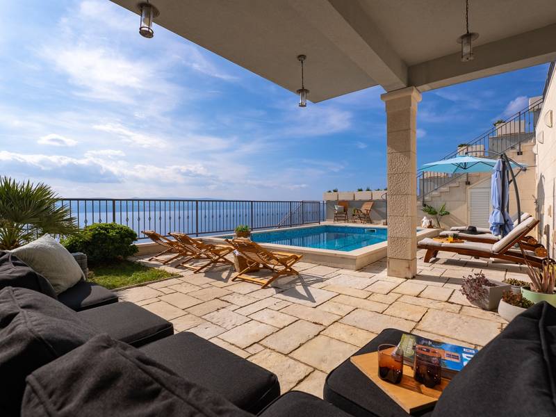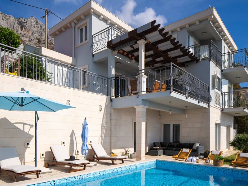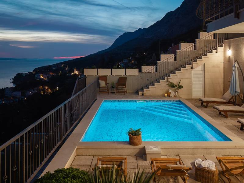 **Villa S&A** - Een comfortabel toevluchtsoord met verwarmd privézwembad Ontdek Villa S&A, een ideale accommodatie voor maximaal 6 gasten, met een verwarmd privézwembad en een adembenemend panoramisch uitzicht op het kristalheldere turquoise water van de Adriatische Zee en het eiland Brač. Deze villa garandeert uw privacy en is gelegen in een rustige en stille omgeving, waardoor u kunt genieten van een ontspannen verblijf. Het pand ligt op een helling en bestaat uit meerdere niveaus, met een totale oppervlakte van 500 m², waarbij de villa zelf 200 m² beslaat. Een auto wordt aanbevolen en er zijn twee parkeerplaatsen gereserveerd voor jouw gemak. De villa is volledig voorzien van airconditioning en biedt gratis WiFi. **Villa Indeling:** *Eerste niveau:* - De hoofdingang leidt naar het slaapgedeelte, dat bestaat uit: - **Slaapkamer 1**: Hoofdslaapkamer met een kingsize bed (180cm x 200cm), een balkon met open zeezicht, een en-suite badkamer met een douche, airconditioning en een tv. - **Slaapkamer 2**: Queensize bed (160cm x 200cm), een balkon met vrij uitzicht op zee, airconditioning en een tv. - **Slaapkamer 3**: Twee eenpersoonsbedden (90cm x 200cm), een balkon met vrij uitzicht op zee, airconditioning en een tv. - Een familiebadkamer met douche is beschikbaar voor slaapkamers 2 en 3. Elke badkamer is uitgerust met toiletartikelen. Elke badkamer is voorzien van toiletartikelen, waaronder shampoo, conditioner, douchegel, badjassen, slippers en haardrogers. *Lager niveau:* - Een interne trap leidt naar de ruime, open woonkamer, die een prachtig uitzicht op zee biedt en in verbinding staat met de eetruimte buiten. De woonkamer is voorzien van comfortabele banken, een tv, airconditioning en een volledig uitgeruste keuken met een eethoek voor 8 personen, plus een gezellige open haard. De keuken is voorzien van moderne apparatuur, waaronder een DeLonghi espressomachine, een blender, een magnetron en een waterkoker. Daarnaast is er een familiebadkamer met een douche en een wasmachine. *Buitenruimte:* - De eethoek buiten is handig verbonden met de keuken en woonkamer, met een overdekte ruimte met een gasbarbecue en een prachtig uitzicht op zee en het eiland om van te genieten op elk moment van de dag of nacht. Aangrenzend is een speelplaats voor kinderen, compleet met een trampoline, een houten speelhuisje met een glijbaan en een schommel. Bij het huis horen ook 3 mountainbikes die je kunt gebruiken. *Zwembadgedeelte:* - Daal de buitentrap af naar het zwembadgedeelte, met een verwarmd privézwembad van 25 m² met een tegenstroomprogramma voor absolute privacy. Hier vind je 6 ligstoelen en een loungehoek, perfect om te ontspannen met een glas wijn en een goed boek terwijl je geniet van het spectaculaire uitzicht. Villa S&A is een uniek en ruim toevluchtsoord, goed uitgerust voor jouw comfort en beheerd door vriendelijke eigenaren die je graag informatie geven over lokale attracties en activiteiten. Deze villa is echt een perfecte locatie voor jouw ideale vakantie. Welkom in Villa S&A in Mimice!