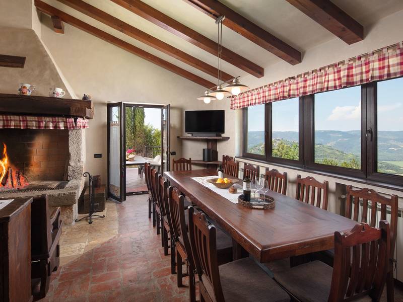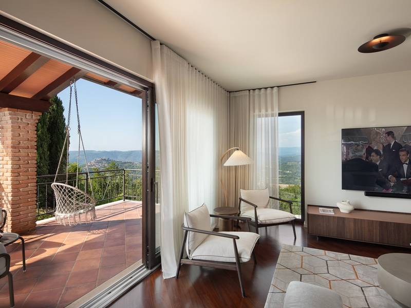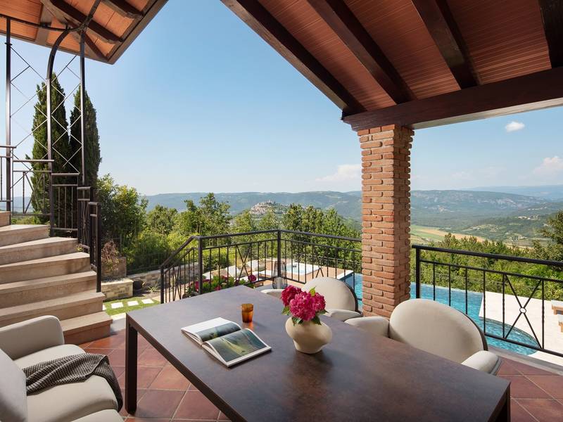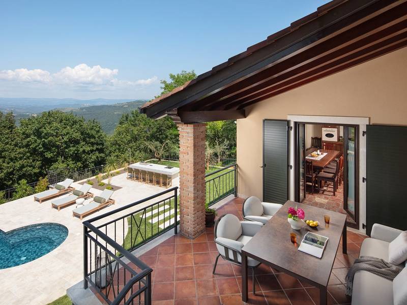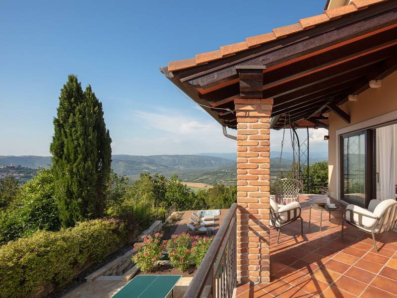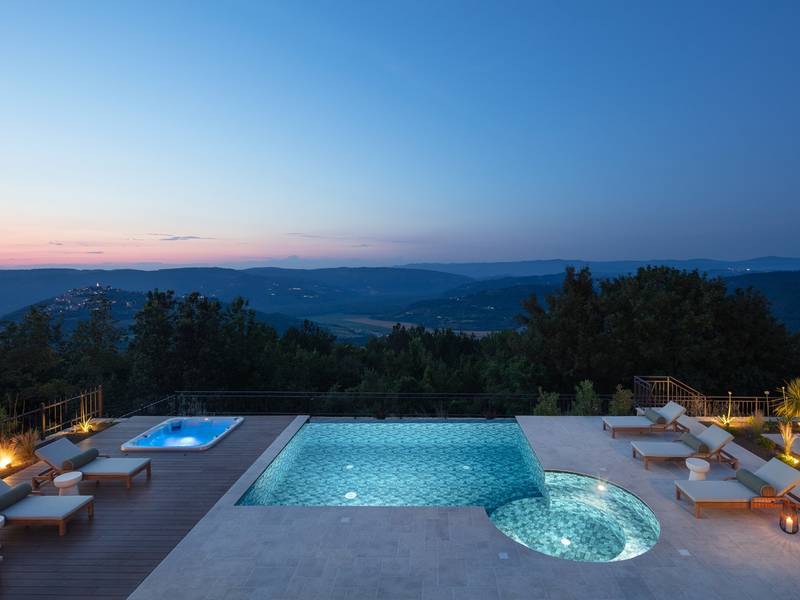 Deze uitzonderlijke vakantievilla ligt in het charmante dorpje Meloni, op een heuveltop in de buurt van Motovun. De villa is tot in het kleinste detail ontworpen en combineert modern comfort met tijdloze elegantie. Het beschikt over drie ruime en prachtig ingerichte slaapkamers, een grote volledig uitgeruste keuken en een gezellige woonkamer. Villa Clara biedt eersteklas voorzieningen, waaronder een wellness-zone in de kelder met een sauna en jacuzzi, een overloopzwembad met een adembenemend uitzicht op Motovun, een buitenwhirlpool, een eigen fitnessruimte en een entertainmentruimte met home cinema en biljart. Deze villa is een ideale keuze voor gasten die op zoek zijn naar absoluut comfort, privacy en verwennerij in een van de meest pittoreske regio's van Istrië. Dankzij de ligging biedt Villa Clara een prachtig panoramisch uitzicht op het Istrische landschap, en de nabijheid van Motovun, Grožnjan en de vallei van de rivier Mirna maakt het de perfecte uitvalsbasis voor het verkennen van het Istrische achterland, de gastronomie, wijn en natuurlijke schoonheid.