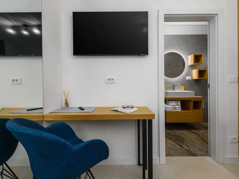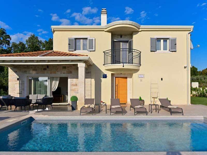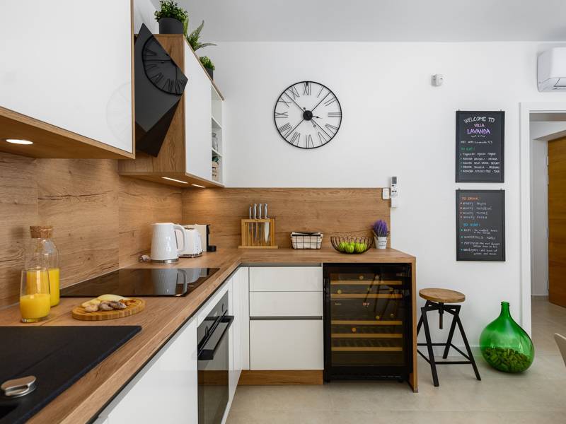 Gezellige villa van 125 m2 op een ideale plek om je zorgen achter je te laten en je te concentreren op het genieten van de rust en het landschap dat het ons biedt. Op het entreeniveau is er een gezellige woonkamer, een volledig uitgeruste open keuken en een eethoek met zitplaatsen voor 6 personen. Een slaapkamer is ook op dit niveau, geschikt voor twee personen en heeft voorzieningen zoals airconditioning, tv en een en-suite badkamer met douche. Op het hogere niveau zijn er 2 aparte tweepersoonsslaapkamers met airconditioning en satelliet-tv, elk met een eigen badkamer. Het zwembad is uitgerust met verschillende ligstoelen en een grote parasol, waardoor het comfort van de gasten gegarandeerd is. Het terras met eettafel staat tot uw beschikking. De verzorgde tuin maakt het buitenleven compleet. Het huis heeft vloerverwarming, dus het is mogelijk om er zelfs in de winter te verblijven. Extra voorzieningen zijn onder andere een wasmachine en een strijkijzer, en de villa heeft ook een apart toilet. En voor de jongste gasten zijn er een babybedje en een kinderstoel beschikbaar. Groepen jongeren zijn niet toegestaan. Huisdieren zijn op aanvraag toegestaan. Let op: Zwembadverwarming op aanvraag wordt ter plaatse extra betaald (40 €/per dag).