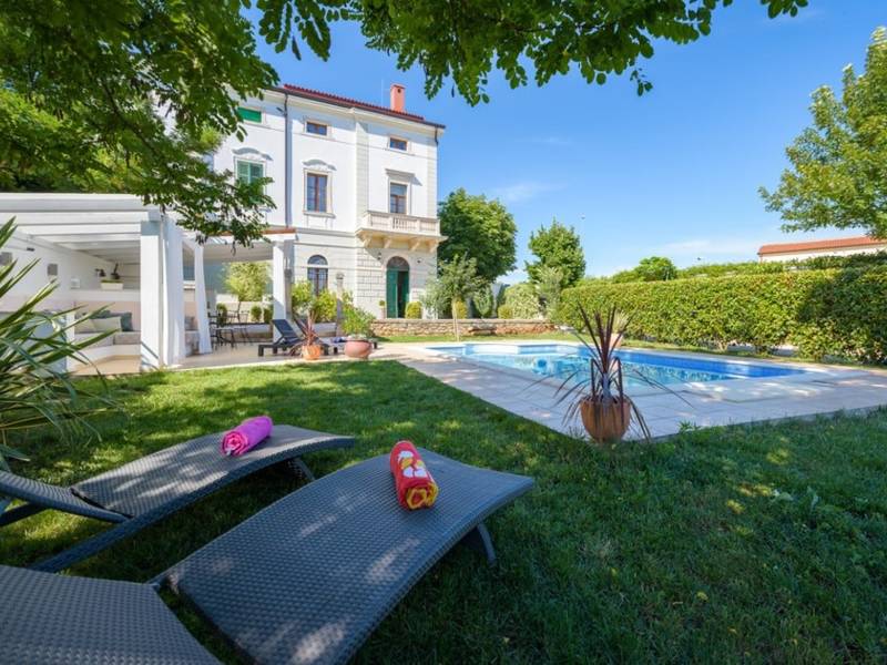 Voel je als een vorst tijdens je vakantie in Villa Vigneri in de buurt van Novigrad aan de noordwestelijke kust van Istrië! De gerenoveerde villa is tweehonderd jaar geleden gebouwd in Oostenrijkse stijl en heeft een aristocratische flair, terwijl het een uitstekende plek is om te ontspannen voor maximaal 6 personen. Als je de villa met airconditioning binnenstapt, is het eerste wat je opvalt het klassieke interieur, dat voldoet aan de moderne levensstandaard. De mooie hoofdslaapkamer heeft een grote badkamer ensuite met een douche en een bad, terwijl de tweede slaapkamer een aangrenzende badkamer heeft met een hydromassagedouchesysteem. De villa beschikt ook over een woonkamer, eetkamer en een volledig uitgeruste keuken op de begane grond. De ruime privétuin is een van de hoogtepunten van deze woning. Het goed onderhouden gazon en de bomen bieden de perfecte plek voor puur genieten bij het zwembad. Er is ook een gazebo met een tuinbankstel, een barbecueplaats en een eetset, die goede momenten in de buitenlucht beloven. De authentieke Villa Vigneri ligt in een rustige omgeving net buiten de stad Novigrad in het noordwesten van Istrië. Het centrum van de stad en het dichtstbijzijnde strand liggen op slechts een paar kilometer afstand, net als het waterpark Istralandia. Tot de bezienswaardigheden in de buurt behoren Poreč met de beroemde basiliek (UNESCO Werelderfgoed), de stad Umag en heuveltopstadjes in het binnenland. De dichtstbijzijnde luchthavens zijn in Pula (70 km) en Triëst, Italië (95 km), terwijl de staatsgrens met Slovenië op minder dan 20 km afstand ligt.