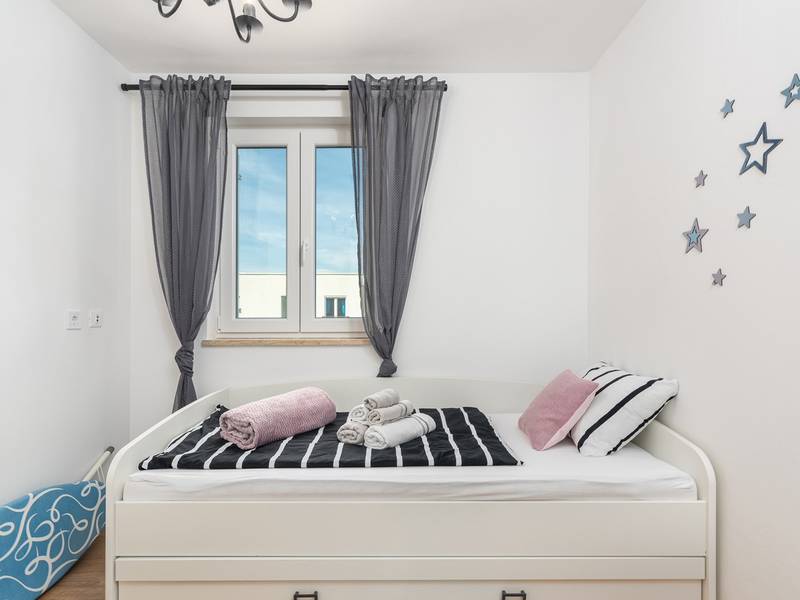 Vakantiehuis Businia ligt in Novigrad, Istrië. Dit prachtig ingerichte, 93 m² grote vakantiehuis is verdeeld over 2 verdiepingen en is geschikt voor maximaal 6 personen. Het bestaat uit drie slaapkamers (2 met een tweepersoonsbed, en een van een eenpersoonsbed en een extra bed), twee badkamers met douche, een volledig uitgeruste keuken (vaatwasser, magnetron) met een eethoek, en een woonkamer met een flatscreen-tv met satellietzenders. De accommodatie met airconditioning ligt op 2,9 km van het dichtstbijzijnde strand (Sirena Beach), en gasten profiteren van gratis WiFi en privéparkeergelegenheid op het terrein. Er is ook een uitgang naar een gemeubileerd balkon op de eerste verdieping, en een terras met een eethoek in de eigen tuin. Gasten kunnen ook genieten van de eigen whirlpool. Eén huisdier is toegestaan tegen betaling. De oude binnenstad van Novigrad ligt op 4,2 km van de accommodatie. De dichtstbijzijnde luchthaven is de luchthaven Pula, op 72 km van de accommodatie. Welkom bij Holiday House Businia, en geniet van al het moois dat Novigrad en omgeving te bieden heeft!