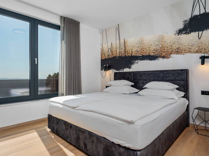 Luxueuze Villa Nina is een gloednieuw en modern pand met een prachtig uitzicht op zee en een strand vanaf het hele pand, gelegen net boven het Brzet strand naast de identieke Villa Kiara ernaast. Een volledig van airconditioning voorziene villa met 5 slaapkamers, gratis WiFi, een Finse sauna, een fitnessapparaat, een biljart, een verwarmd zwembad met hydromassage, gelegen op een rustige locatie in Brzet, Omiš stad (2 km van Omiš centrum). Villa Nina ligt boven het kiezelstrand, het dichtstbijzijnde restaurant ligt op 100m afstand, en je bent minder dan 5 minuten rijden naar Omiš en de Cetina rivier met vele attracties en activiteiten zoals raften, zip-line boven de Cetina rivier, free climbing, boottocht opties.... Of je kunt gewoon genieten van het prachtige uitzicht dat dit gebied biedt in een rustige en vriendelijke omgeving Villa Nina is een luxe, moderne en goed uitgeruste 4-sterren villa met 5 en-suite slaapkamers, elk met uitzicht op zee, en het is gelegen op een 875 m2 perceel en staat op 306 m2 woonoppervlak verdeeld over twee verdiepingen - begane grond en eerste verdieping. Perfect thuis weg van huis voor familiebijeenkomsten of een groep vrienden die op zoek zijn naar een ontspannen of actieve vakantie in Kroatië. Villa Nina is een mooi ontworpen woning, uitgerust met een high-end niveau, en straalt stijl en elegantie uit. Met zonlicht vanuit meerdere hoeken is de leefruimte een perfecte ruimte om te genieten van de warme gloed - van de zon en het open uitzicht op zee - op elk moment van het jaar. Het pand is volledig omheind en biedt 3 parkeerplaatsen op eigen terrein. *Het BUITENHUIS (140 m²) biedt een verwarmd privézwembad van 54 m² met hydromassage en de hoogste normen van waterzuivering zonder chloorgebruik. De ligweide met 10 ligstoelen, een buitendouche, een apart toilet, een overdekte eethoek met een traditionele barbecue voor maximale ontspanning en om te genieten van het mediterrane klimaat.*De begane grond heeft een open woonruimte die bestaat uit: een volledig uitgeruste keuken (38 m²) met alle voorzieningen die een moderne gast nodig heeft voor een comfortabel verblijf (een magnetron, een broodrooster, een waterkoker, een capsule Julius Meinl koffiezetapparaat ...), een ruime eethoek voor 10 personen gevuld met natuurlijk licht, een zeer comfortabele woonkamer (32 m²) met sofa's, flatscreen-tv, PS5, Bluetooth luidsprekersysteem, allemaal volledig voorzien van airconditioning. Grote glazen wanden verbinden het interieur van de villa op de begane grond met het exterieur. Er is ook een fitnessruimte met airconditioning (22 m²) met een multifunctionele machine, een hometrainer, een biljart voor wat plezier, een tv, een ruime Finse sauna en een douche ernaast. Slaapkamer 1 (23 m²) bevindt zich op de begane grond en heeft een directe uitgang naar het zwembad. Het biedt een super kingsize bed van 200cmx200cm, airconditioning, een tv en een en-suite badkamer met een douche. Er is ook een wasruimte met een wasmachine, een droger en strijkbenodigdheden en een apart toilet op deze verdieping. De EERSTE verdieping, waar zich 4 luxueus uitgeruste en zeer comfortabele ensuite slaapkamers bevinden, elk met open uitzicht op zee en het eiland. Slaapkamer No2. (25,6m²) met een super kingsize bed (200cm×200cm), en-suite badkamer met douche, airco, tv en balkon met uitzicht op zee. Slaapkamer 3. (22,6m²) met een super kingsize bed (200cm×200cm), en-suite badkamer met douche, airco, tv. Slaapkamer nr. 4. (25,2m²) met een super king-size bed (200cm×200cm), en-suite badkamer met douche, airco, tv. Slaapkamer No5. (22,6m²) met een super king-size bed (200cm×200cm), en-suite badkamer met een douche, A/C, TV".