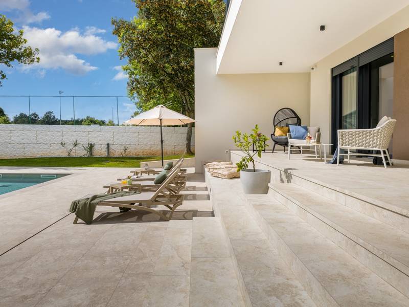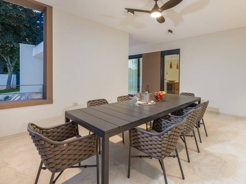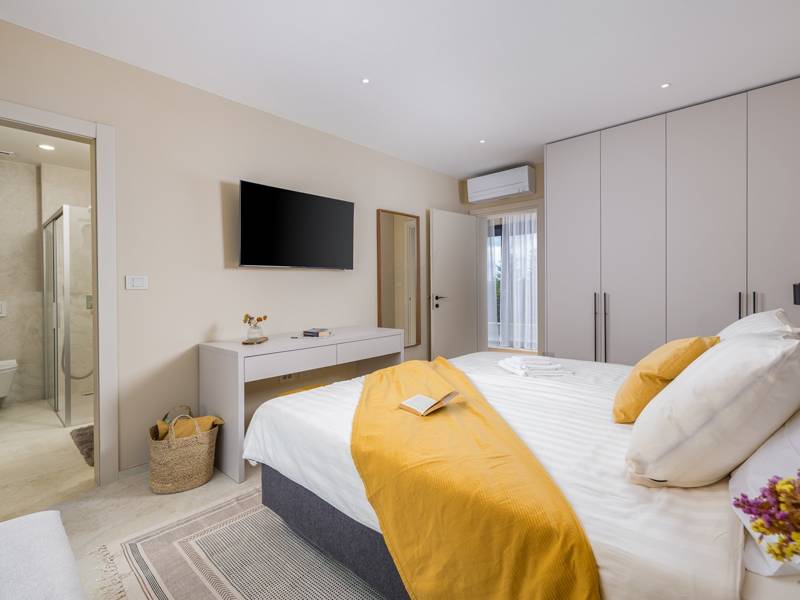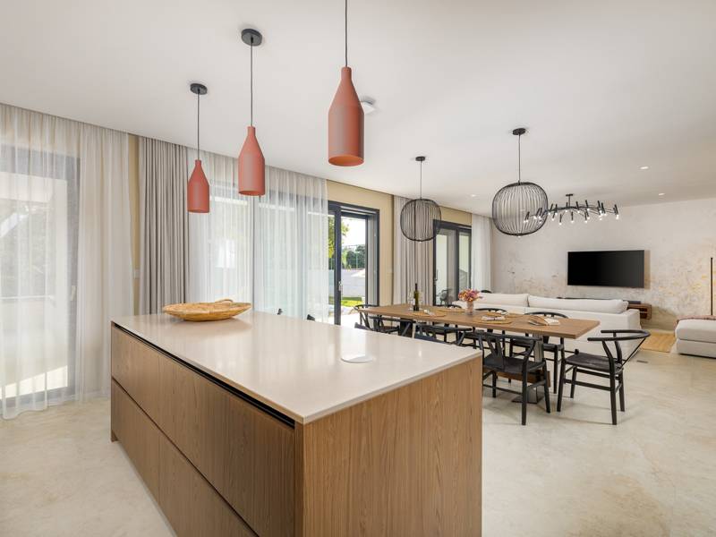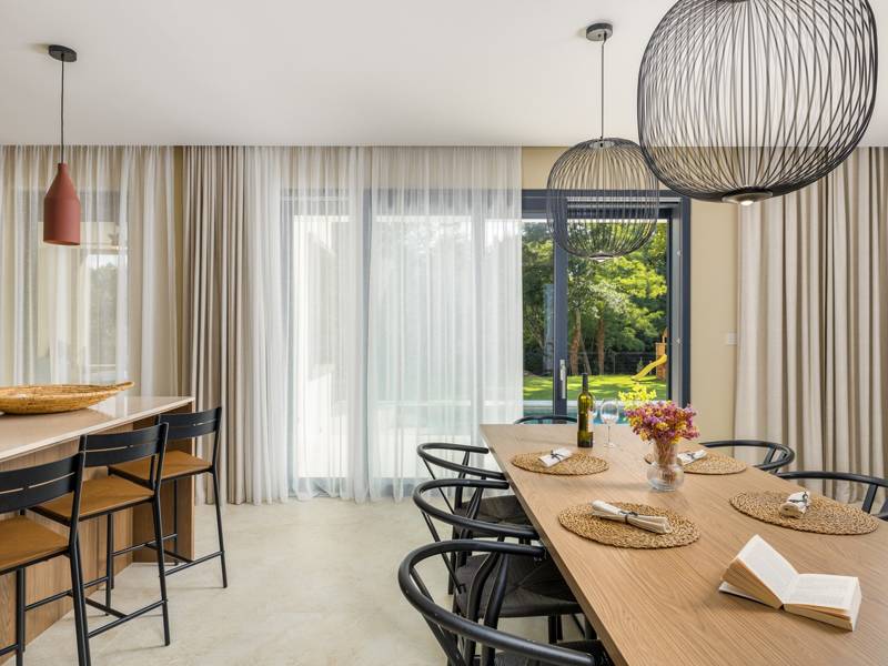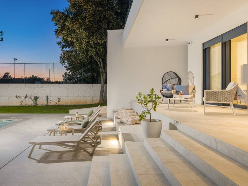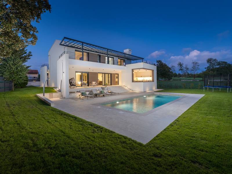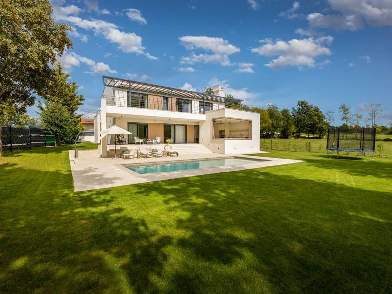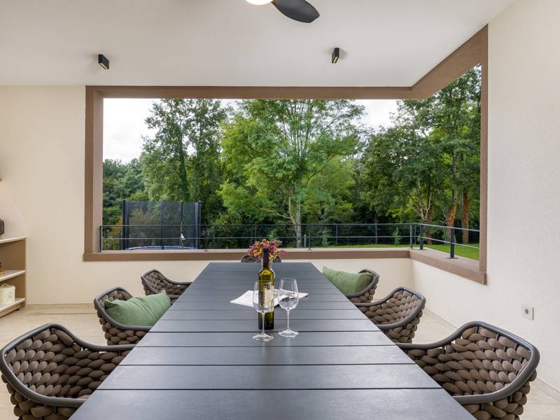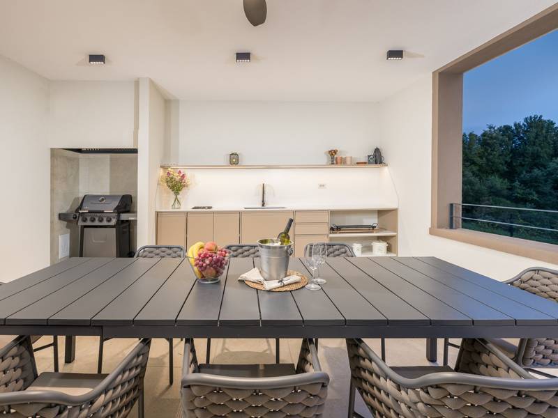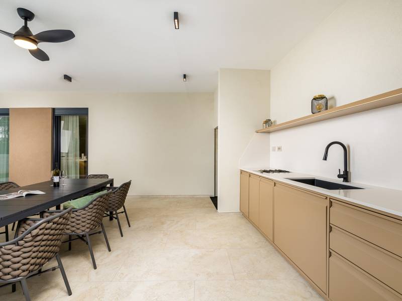 Ontsnap naar Villa Castanea, een stijlvol toevluchtsoord gelegen in het rustige dorpje Heki in het hart van Istrië. Deze prachtig ontworpen villa met 3 slaapkamers biedt 240 vierkante meter doordachte leefruimte op een volledig omheind privéperceel van 1.340 vierkante meter, waardoor het een ideale schuilplaats is voor gezinnen of groepen vrienden die op zoek zijn naar zowel comfort als rust. De villa biedt plaats aan maximaal zes gasten in drie elegante slaapkamers met eigen badkamer. Elke kamer heeft een flatscreentelevisie, airconditioning en toegang tot een balkon met uitzicht op het zwembad en het omliggende platteland. Twee slaapkamers hebben bedden van 100 x 210 cm die gecombineerd zijn tot een groot tweepersoonsbed, terwijl de derde slaapkamer een ruim tweepersoonsbed van 180 x 210 cm heeft. Alle kamers hebben een eigen badkamer met douche, waardoor gasten zowel privacy als comfort hebben. Binnen nodigen de open woon- en eetruimte uit tot ontspanning met gezellige banken, een flatscreentelevisie en veel natuurlijk licht. Grote ramen van vloer tot plafond bieden directe toegang tot het terras en een prachtig uitzicht op het zwembad, waardoor een naadloze verbinding ontstaat tussen binnen- en buitenruimtes. De volledig uitgeruste keuken heeft een stijlvol eiland, een koelkast, ijsmachine, een KRUPS espressomachine, filterkoffiezetapparaat, magnetron, waterkoker en alles wat je nodig hebt om heerlijke maaltijden te bereiden. De aangrenzende eethoek is perfect om te genieten van een gezamenlijk ontbijt of een romantisch diner. Extra voorzieningen zijn een gastentoilet op de begane grond, een wasmachine, droger en strijkbenodigdheden. De hele villa is volledig voorzien van airconditioning en high-speed WiFi. Stap naar buiten naar je eigen privéoase. Het zwembad van 10 x 4 meter is perfect om af te koelen tijdens warme middagen, terwijl zes comfortabele ligbedden op het zonneterras een ontspannen plek bieden om te ontspannen met een boek of te genieten van de zon. Een overdekte eethoek buiten biedt plaats aan maximaal tien personen, ideaal voor lange maaltijden in de buitenlucht. De barbecueplaats, uitgerust met een gas- of elektrische grill, maakt heerlijk koken onder de sterren mogelijk. Een buitendouche draagt bij aan het comfort en gemak. Er is privéparkeergelegenheid voor maximaal vier auto's, waardoor de toegang eenvoudig en stressvrij is. Villa Castanea ligt op slechts 150 meter van het plaatselijke treinstation, waardoor je zonder auto naar de stad Pula kunt reizen. In het huis is een treintabel aanwezig voor je gemak. Met deze optie kunnen gasten verkeersopstoppingen en parkeerproblemen in de stad vermijden terwijl ze genieten van een ontspannen rit. Villa Castanea is perfect gelegen om de schoonheid van Istrië te ontdekken. De nabijgelegen stad Pazin, op slechts tien minuten rijden, biedt attracties zoals het middeleeuwse kasteel van Pazin en de beroemde grot van Pazin met een spannende zipline. Wijnliefhebbers en fijnproevers kunnen in de omgeving genieten van proeverijen van lokale wijnen, olijfolie en Istrische truffels. De pittoreske kustplaatsjes Rovinj en Poreč, met hun stranden en historische charme, liggen op minder dan 40 minuten rijden. Je kunt ook iconische bezienswaardigheden verkennen zoals de Romeinse Arena in Pula, de Eufrasiusbasiliek in Poreč en de kerk van St. Eufemia in Rovinj. Charmante heuvelstadjes zoals Motovun, Grožnjan en Hum - het kleinste stadje ter wereld - zijn gemakkelijk te bereiken voor dagtripjes, terwijl het Nationaal Park Brijuni een mix van natuur en geschiedenis biedt. Of je je dagen nu liever luierend bij het zwembad doorbrengt, verborgen dorpjes ontdekt of geniet van de keuken van wereldklasse in Istrië, Villa Castanea biedt de perfecte omgeving voor een onvergetelijke vakantie-ervaring.