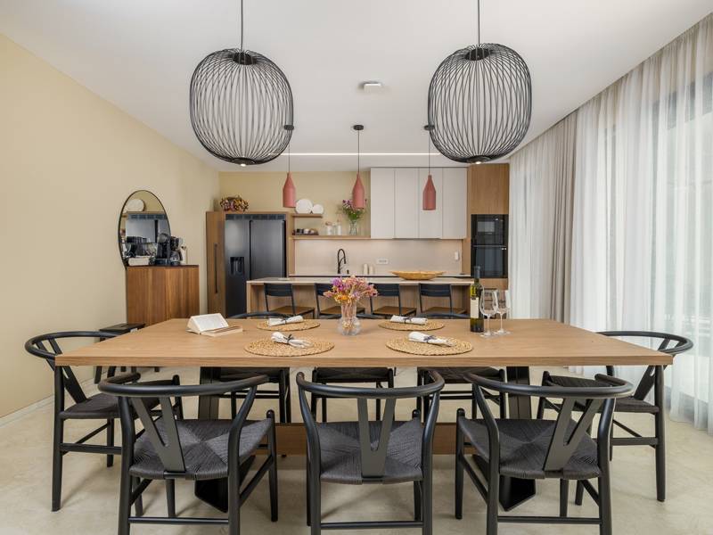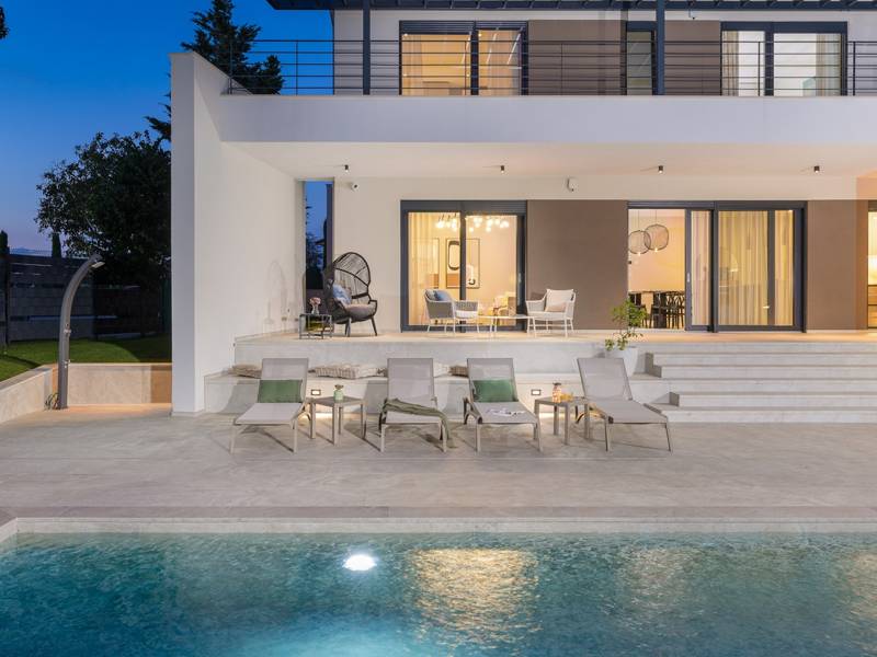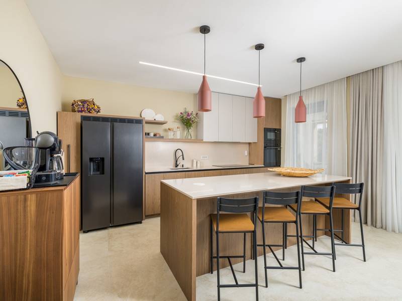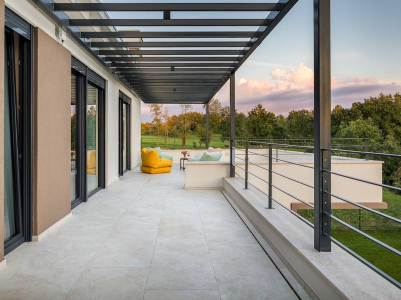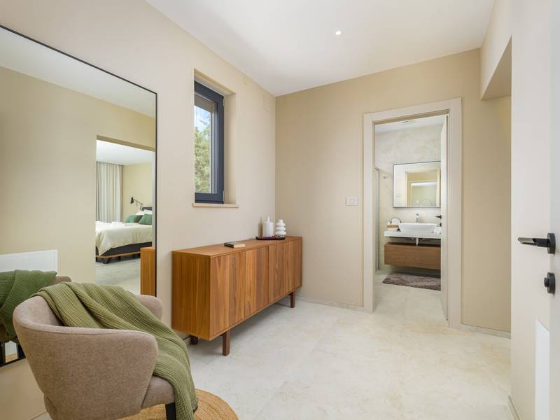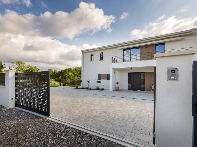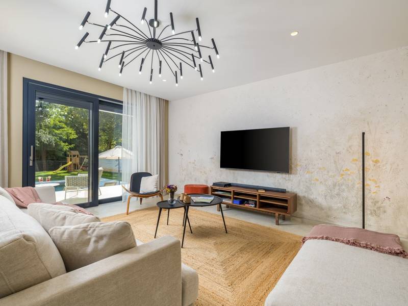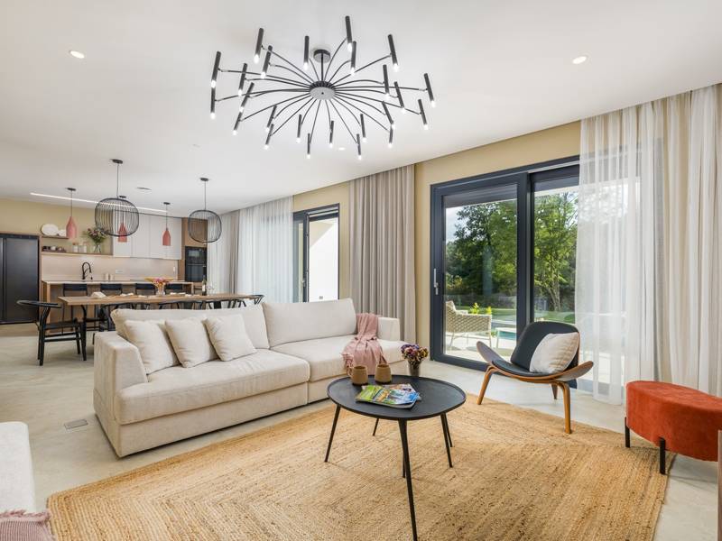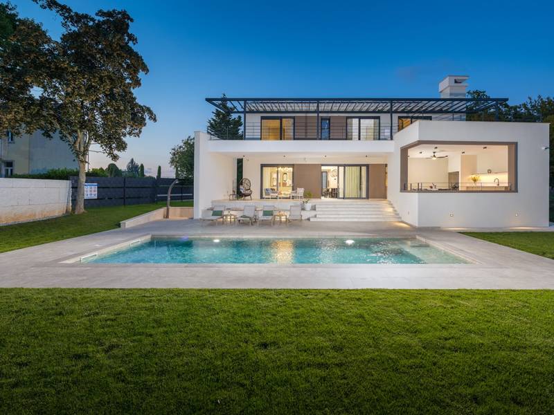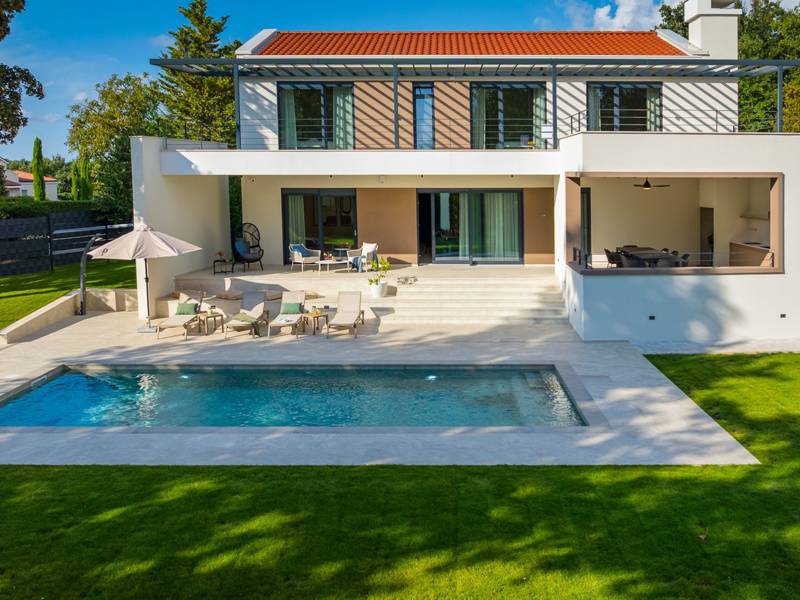 Ontsnap naar Villa Castanea, een stijlvol toevluchtsoord gelegen in het rustige dorpje Heki in het hart van Istrië. Deze prachtig ontworpen villa met 3 slaapkamers biedt 240 vierkante meter doordachte leefruimte op een volledig omheind privéperceel van 1.340 vierkante meter, waardoor het een ideale schuilplaats is voor gezinnen of groepen vrienden die op zoek zijn naar zowel comfort als rust. De villa biedt plaats aan maximaal zes gasten in drie elegante slaapkamers met eigen badkamer. Elke kamer heeft een flatscreentelevisie, airconditioning en toegang tot een balkon met uitzicht op het zwembad en het omliggende platteland. Twee slaapkamers hebben bedden van 100 x 210 cm die gecombineerd zijn tot een groot tweepersoonsbed, terwijl de derde slaapkamer een ruim tweepersoonsbed van 180 x 210 cm heeft. Alle kamers hebben een eigen badkamer met douche, waardoor gasten zowel privacy als comfort hebben. Binnen nodigen de open woon- en eetruimte uit tot ontspanning met gezellige banken, een flatscreentelevisie en veel natuurlijk licht. Grote ramen van vloer tot plafond bieden directe toegang tot het terras en een prachtig uitzicht op het zwembad, waardoor een naadloze verbinding ontstaat tussen binnen- en buitenruimtes. De volledig uitgeruste keuken heeft een stijlvol eiland, een koelkast, ijsmachine, een KRUPS espressomachine, filterkoffiezetapparaat, magnetron, waterkoker en alles wat je nodig hebt om heerlijke maaltijden te bereiden. De aangrenzende eethoek is perfect om te genieten van een gezamenlijk ontbijt of een romantisch diner. Extra voorzieningen zijn een gastentoilet op de begane grond, een wasmachine, droger en strijkbenodigdheden. De hele villa is volledig voorzien van airconditioning en high-speed WiFi. Stap naar buiten naar je eigen privéoase. Het zwembad van 10 x 4 meter is perfect om af te koelen tijdens warme middagen, terwijl zes comfortabele ligbedden op het zonneterras een ontspannen plek bieden om te ontspannen met een boek of te genieten van de zon. Een overdekte eethoek buiten biedt plaats aan maximaal tien personen, ideaal voor lange maaltijden in de buitenlucht. De barbecueplaats, uitgerust met een gas- of elektrische grill, maakt heerlijk koken onder de sterren mogelijk. Een buitendouche draagt bij aan het comfort en gemak. Er is privéparkeergelegenheid voor maximaal vier auto's, waardoor de toegang eenvoudig en stressvrij is. Villa Castanea ligt op slechts 150 meter van het plaatselijke treinstation, waardoor je zonder auto naar de stad Pula kunt reizen. In het huis is een treintabel aanwezig voor je gemak. Met deze optie kunnen gasten verkeersopstoppingen en parkeerproblemen in de stad vermijden terwijl ze genieten van een ontspannen rit. Villa Castanea is perfect gelegen om de schoonheid van Istrië te ontdekken. De nabijgelegen stad Pazin, op slechts tien minuten rijden, biedt attracties zoals het middeleeuwse kasteel van Pazin en de beroemde grot van Pazin met een spannende zipline. Wijnliefhebbers en fijnproevers kunnen in de omgeving genieten van proeverijen van lokale wijnen, olijfolie en Istrische truffels. De pittoreske kustplaatsjes Rovinj en Poreč, met hun stranden en historische charme, liggen op minder dan 40 minuten rijden. Je kunt ook iconische bezienswaardigheden verkennen zoals de Romeinse Arena in Pula, de Eufrasiusbasiliek in Poreč en de kerk van St. Eufemia in Rovinj. Charmante heuvelstadjes zoals Motovun, Grožnjan en Hum - het kleinste stadje ter wereld - zijn gemakkelijk te bereiken voor dagtripjes, terwijl het Nationaal Park Brijuni een mix van natuur en geschiedenis biedt. Of je je dagen nu liever luierend bij het zwembad doorbrengt, verborgen dorpjes ontdekt of geniet van de keuken van wereldklasse in Istrië, Villa Castanea biedt de perfecte omgeving voor een onvergetelijke vakantie-ervaring.