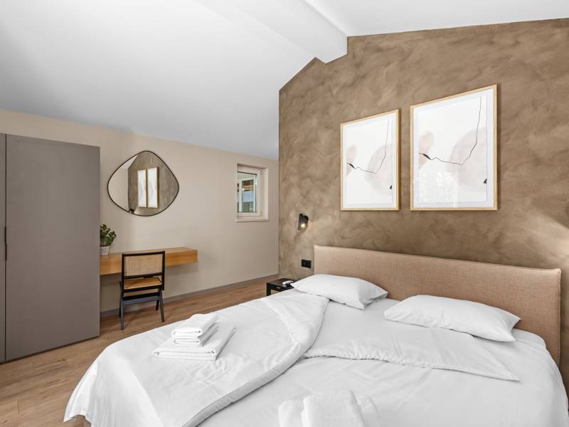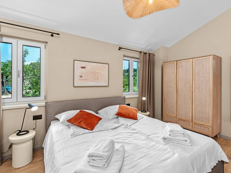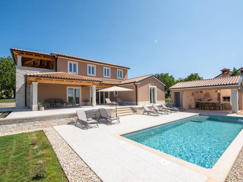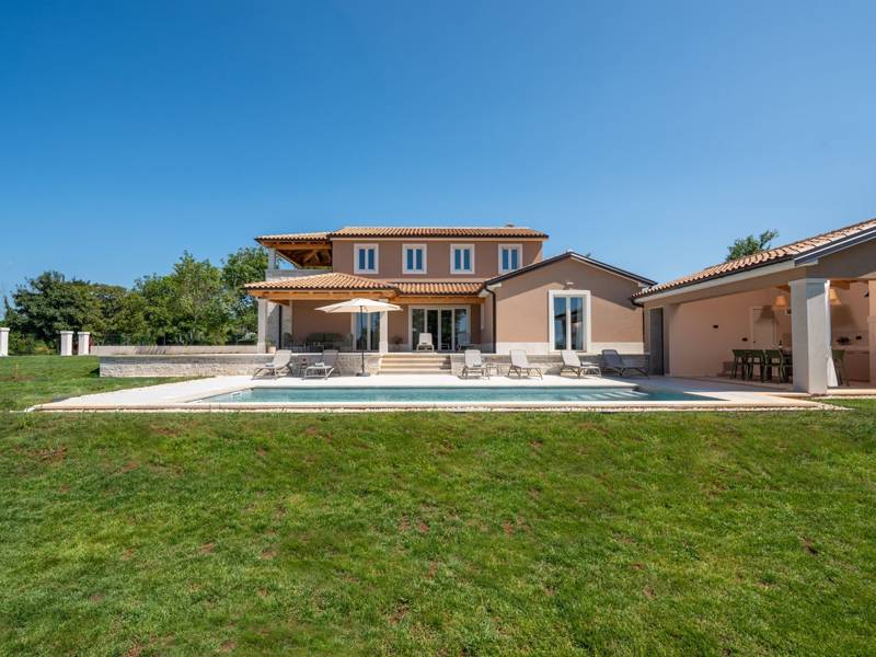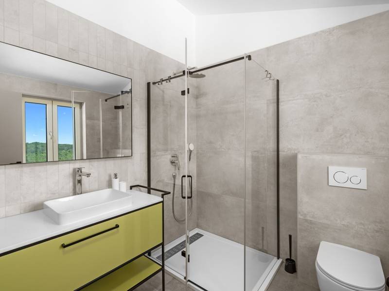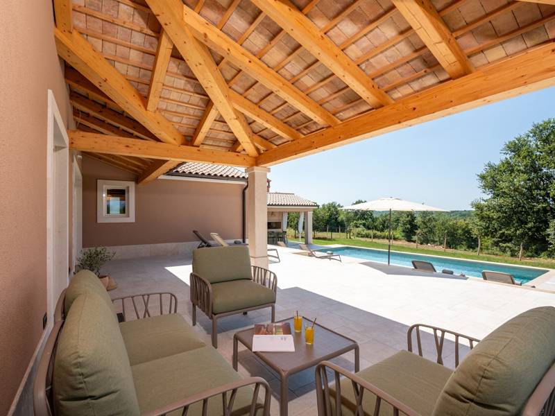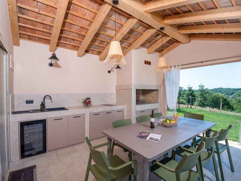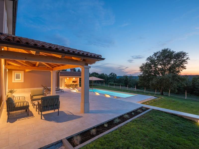 Villa Vita ligt in het hart van Istrië, net boven het charmante stadje Pazin. Het is een gloednieuw vakantiehuis met 3 slaapkamers en biedt een adembenemend uitzicht op de omliggende natuur. Met ruimte voor maximaal 8 gasten, combineert deze villa modern comfort met de serene schoonheid van het platteland - ideaal voor families, vrienden of koppels op zoek naar een rustig uitje. De villa ligt op een royaal privéperceel van 1.400 m2 en beschikt over 190 m2 prachtig ontworpen leefruimte op twee niveaus. De begane grond biedt een lichte, open woonruimte met een volledig uitgeruste keuken met kookeiland, een comfortabele lounge met grote tv en banken (om te bouwen tot een bed voor 2 personen), en een eetruimte die direct uitkomt op het terras bij het zwembad. Deze verdieping heeft ook een gezellige slaapkamer met een kingsize bed, tv, airconditioning, eigen badkamer en directe toegang tot het buitenterras. Boven vind je nog twee kingsize slaapkamers, elk met airconditioning, een tv en een eigen badkamer. Een van de kamers heeft ook toegang tot een privébalkon - perfect voor een kopje koffie 's ochtends met uitzicht. Stap naar buiten en geniet van je eigen privéoase: een sprankelend zwembad van 34 m2, een ruim zonneterras met 8 ligstoelen, een overdekte eethoek, een volledig uitgeruste zomerkeuken en een barbecue - ideaal voor ontspannen middagen en diners onder de sterren. Voor uw gemak is Villa Vita volledig voorzien van airconditioning en uitgerust met high-speed Wi-Fi, een wasmachine, strijkfaciliteiten en een eigen parkeerplaats. Hoewel de villa omgeven is door rust en natuur, ligt het op slechts een klein eindje rijden van de plaatselijke winkels, cafés en restaurants. De centrale ligging maakt het een perfecte uitvalsbasis voor het verkennen van het hele schiereiland Istrië - de meeste bestemmingen liggen op slechts ongeveer 30 minuten rijden. Kom tot rust, omarm de schoonheid van Istrië, en maak onvergetelijke herinneringen in Villa Vita - uw perfecte thuis weg van huis. Let op: Huisdieren zijn alleen op aanvraag toegestaan.