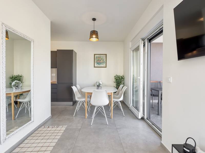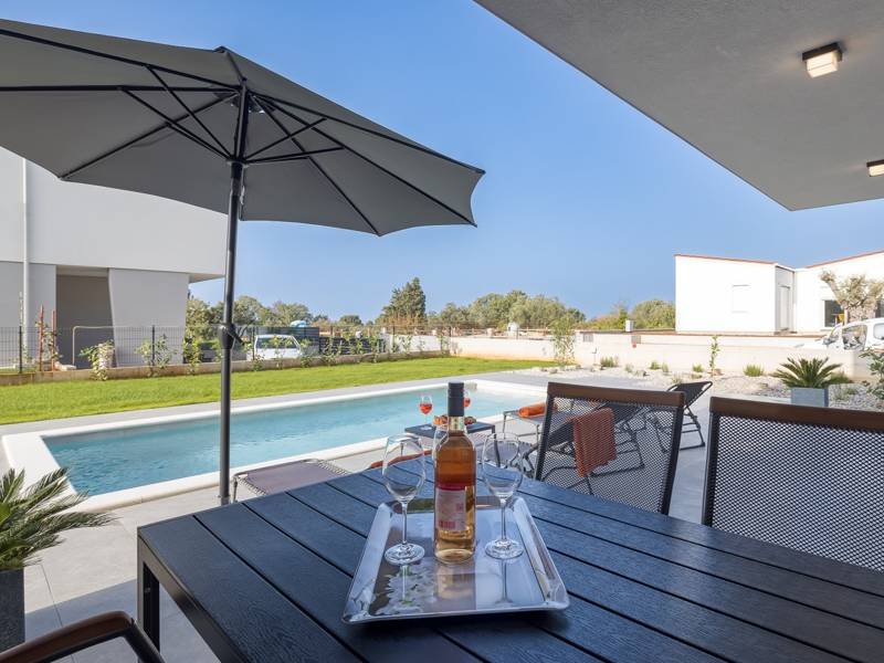 Het mooie, moderne, nieuw gebouwde huis Lippa in Peroj is de perfecte keuze voor een ontspannen vakantie in de buurt van de zee. Dit halfvrijstaande huis met een eigen tuin en zwembad biedt ideale accommodatie voor 8-12 personen in twee comfortabele slaapkamers en een slaapbank in de woonkamer. Tot de beschikking van de gasten staan ook een moderne, twee volledig uitgeruste keukens, twee eethoeken, twee woonkamers met satelliet-tv, vier badkamers met douches, een apart toilet en een kleine ruimte met een wasmachine. Er zijn vier airconditioning units in het huis - een in de woonkamer, en een in de hal op de eerste verdieping. Vanuit de slaapkamers is er een uitgang naar een balkon met zitmeubilair. Vanuit de woonkamer heb je toegang tot een overdekt terras en de privétuin met een mooi zwembad van 7,5 x 3,5 meter. Je kunt maaltijden bereiden op de BBQ grill en hiervan genieten met je familie op de buiteneettafel, of relaxen op de ligstoelen bij het zwembad. Huis Lippa ligt op 500 m van het strand, op 600 m van het centrum van Peroj en het dichtstbijzijnde restaurant, en op ongeveer 12 km van de stad Pula.
