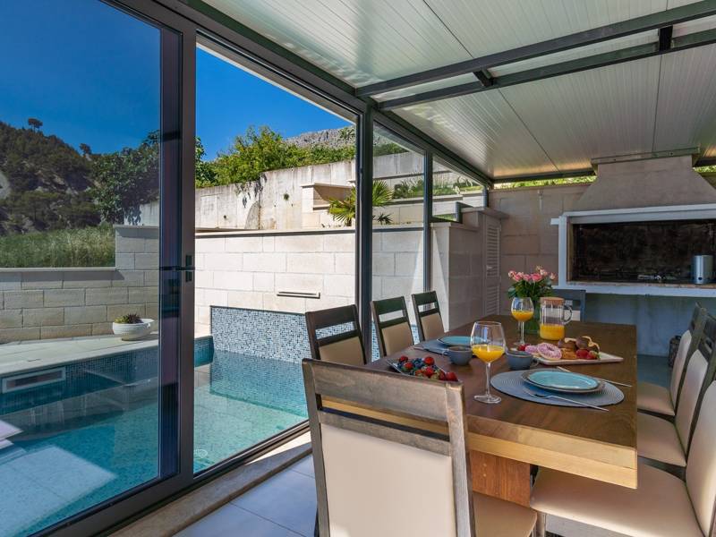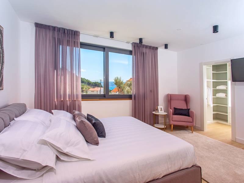 Villa Cecilia biedt een volledig uitgeruste keuken en ruime woonkamer, 4 slaapkamers met 4 en-suite badkamers, een fitnessruimte met een Finse sauna, een zomerkeuken, en een eethoek naast een prive zwembad 9m x 3,5m, 8 ligstoelen, en een zithoek. De villa Cecilia is een moderne villa met veel natuurlijk licht door de grote glazen raamoppervlakken gelegen op een perceel van 900 m² en biedt een totaal van 390 m² leefruimte. * De buitenruimte biedt een privé zwembad van 9m x 3,5m (32 m²) met hydromassage, 8 ligstoelen op het zonneterras naast het zwembad, een loungehoek voor de woonkamer en een overdekte eethoek met traditionele barbecue en een tv. * De begane grond biedt een volledig van airconditioning voorziene, open woon- en eetruimte met glazen deuren van vloer tot plafond. Een volledig uitgeruste keuken met alle voorzieningen die een moderne gast nodig heeft voor een zeer comfortabel verblijf (wijnkoeler, Nespresso, magnetron...), een stijlvolle eethoek, en een ruime woonkamer met een flatscreen-tv, PS5, gratis WiFi, met een directe toegang tot het zwembad. Er is een apart toilet. Een slaapkamer nr. 1 bevindt zich op de begane grond, met een tweepersoonsbed van 160cm x 200cm, airco, tv, een inloopkast, een en-suite badkamer met een douche, een glazen deur met uitzicht op het zwembad. * De benedenverdieping biedt een fitnessruimte met een loopband, een bokszak, gewichten, een yogabal, een tv, airco, een Finse sauna en een douche.* De eerste verdieping biedt een slaapkamer nr. 2 met een tweepersoonsbed 160cm x 200cm, A / C, TV, een walk-in closet, een en-suite badkamer met douche, en een terras met comfortabele tuinmeubelen en uitzicht op het zwembad. Slaapkamer 3 met een tweepersoonsbed van 160 x 200 cm, airconditioning, tv, een inloopkast en een eigen badkamer met douche en uitzicht op het landschap en de zee. Een slaapkamer nr. 4 met een tweepersoonsbed 160cm x 200cm, A/C, TV, een inloopkast, een en-suite badkamer met douche, en een terras met loungehoek en uitzicht op het zwembad en de zee. Het hele pand is omheind en biedt 1 garageplaats en een parkeerplaats voor 3 auto's op het privéterrein dat is uitgerust met bewakingscamera's voor uw veiligheid.Extra services (niet inbegrepen) aanbevolen door ons agentschap Feriehome: - U kunt boodschappen bestellen vanuit uw luie stoel, geleverd in de villa op de afgesproken tijd; - Geniet van een culinaire ervaring met een privé-kok in de villa die alles kan bereiden, van een romantisch diner tot een gezinsvriendelijk diner; - U kunt een massage in de villa krijgen met onze professionele masseuse die hun therapeutische vaardigheden kan tonen; - Krijg een gevoel voor de Adriatische Zee en wat zeilervaring met een zeilboot (+schipper); - Maak een boottocht om de Midden-Dalmatische kust en eilanden te verkennen....voor meer informatie, we staan tot uw beschikking en helpen u graag. We kijken uit naar uw aanvraag, uw Feriehome agentschap team :)