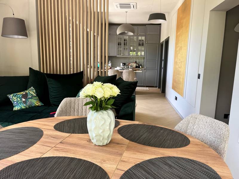 Villa St. Hedonist is een verbluffend mooie, nieuw gebouwde stenen villa gelegen langs de Adriatische kust, met een spectaculair uitzicht op zee. Op slechts vijf minuten rijden van de zee biedt deze villa gemakkelijke toegang tot de attracties van de regio. De villa heeft een oppervlakte van 200 m2 en beschikt over twee onderling verbonden appartementen, waardoor het perfect is voor een groot gezin of twee bevriende gezinnen die een vakantie delen. De villa wordt gekenmerkt door grote ramen die het interieur vullen met natuurlijk licht en een schilderachtig uitzicht op de omgeving bieden. Het interieur van Villa St. Hedonist ademt een warme en moderne sfeer, uitgerust met meubilair van hoge kwaliteit en stijlvol ingericht om het luxe gevoel van de ruimte te versterken. Een deel van het huis beschikt over een ruime woonkamer met een slaapbank, televisie en eettafel, naast een volledig uitgeruste keuken met een marmeren eiland. Dit deel herbergt ook een slaapkamer met een tweepersoonsbed, een en-suite badkamer met een bad en televisie, een andere slaapkamer met twee eenpersoonsbedden en een aparte badkamer. Er is ook een kantoorkamer uitgerust met een televisie en een bank die kan worden omgetoverd tot een bed. Het andere deel van het huis bevat een andere woonkamer met een slaapbank, televisie en eettafel, een tweede volledig uitgeruste keuken met een marmeren eiland, een slaapkamer met een tweepersoonsbed en een aparte badkamer, en nog een slaapkamer met twee eenpersoonsbedden en een aparte badkamer. In totaal is de villa geschikt voor maximaal 10 gasten. Extra voorzieningen vergroten het comfort en de luxe van de villa, waaronder ruime kasten in elke slaapkamer, vier televisies, gratis WiFi, verwarmde vloeren, airconditioning in elke kamer en vier terrassen met stijlvolle loungesets. Een openluchtkeuken in de tuin is ideaal voor grillsessies. Het grote zwembad heeft een ondiep gedeelte voor kinderen en wordt aangevuld met zes ligbedden, een gazebo en een schommel in de tuin, perfect om te genieten van het uitzicht op zee. De uitgestrekte tuin van 1500 m2, versierd met terrassen, cipressen en olijfbomen, creëert een serene en rustige sfeer. Er is privéparkeergelegenheid voor maximaal vier auto's. Maximaal 2 goed opgevoede huisdieren zijn toegestaan Let op: dit pand accepteert geen vrijgezellenfeesten. Jeugdgroepen worden alleen geaccepteerd op afspraak. Een jeugdgroep bestaat uit individuen van 26 jaar of jonger. Als u een jeugdgroep bent, neem dan contact met ons op voordat u reserveert, aangezien de reservering na het reserveren kan worden geweigerd, wat bij aankomst in het pand of tijdens uw verblijf kan zijn en u mogelijk geen geld terugkrijgt.