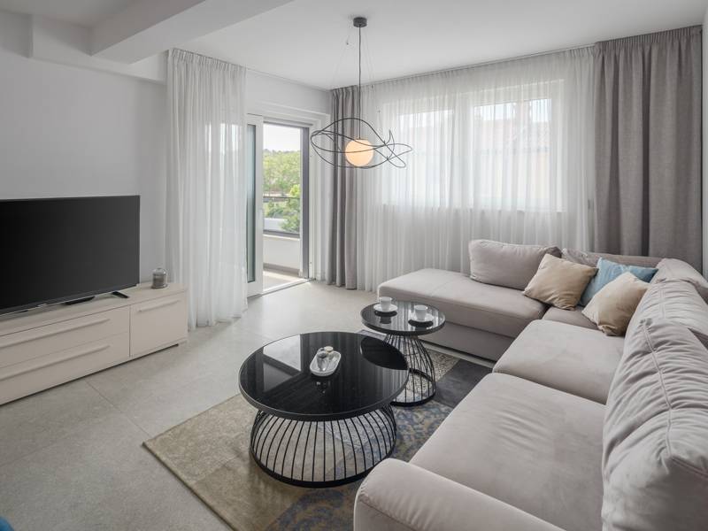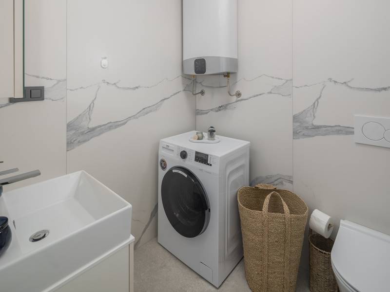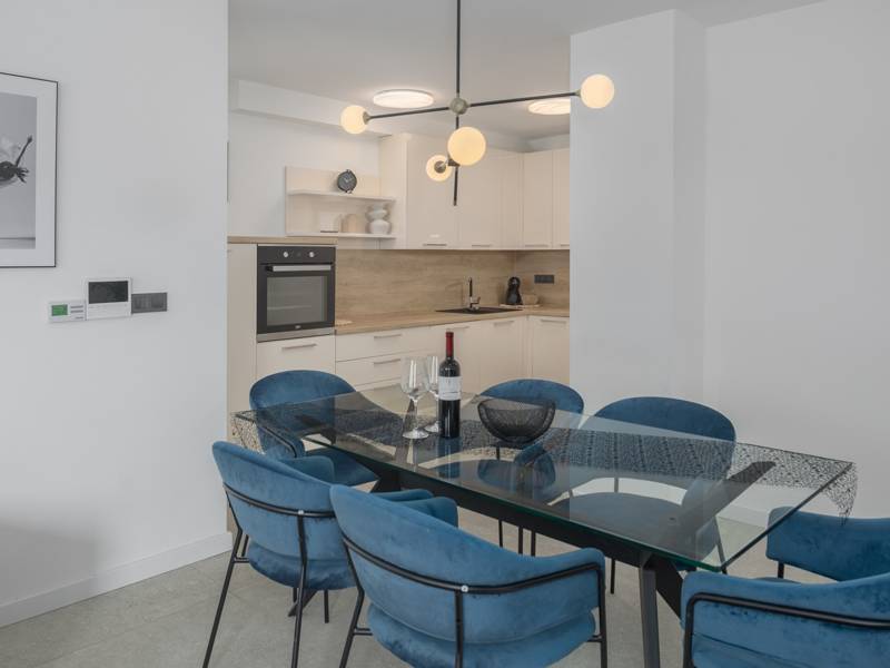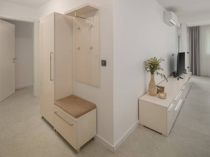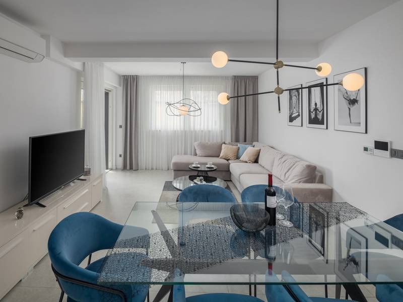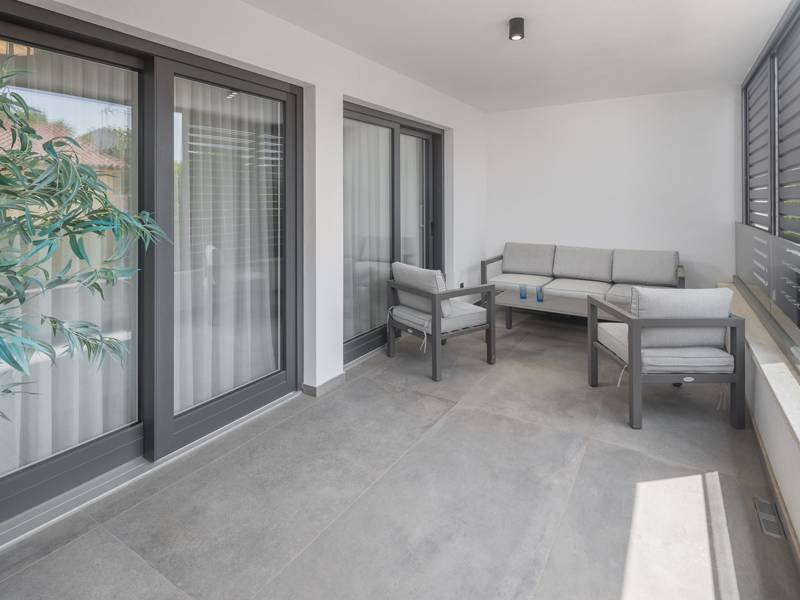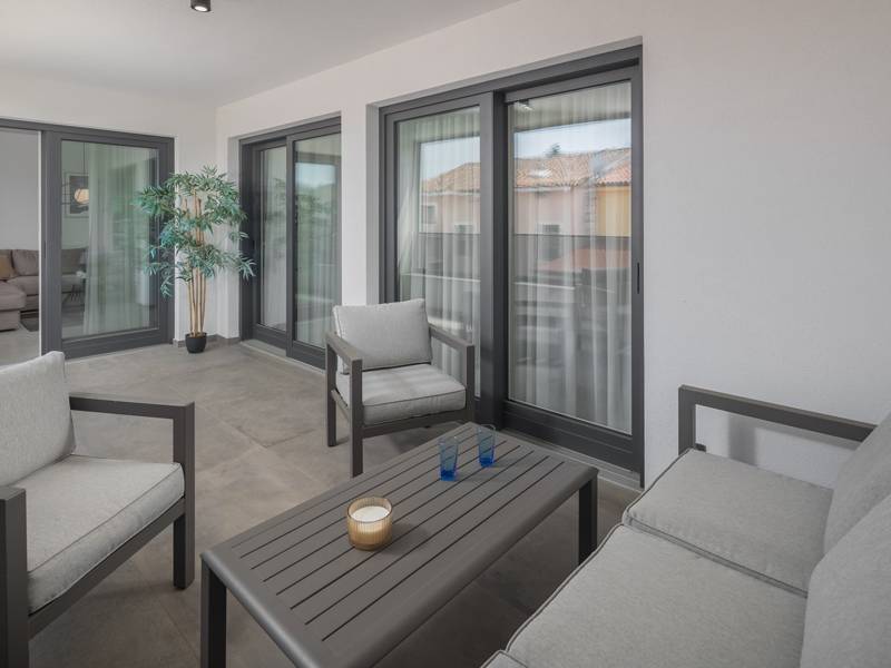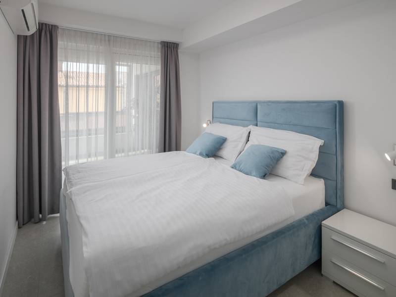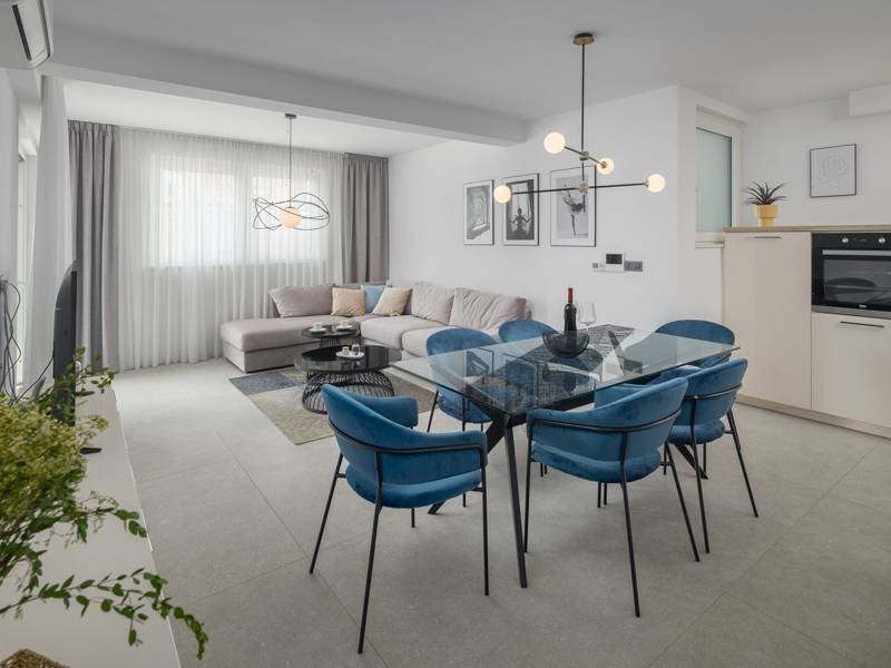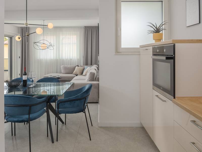 Dit moderne en volledig uitgeruste appartement ligt in het centrum van Poreč, op een paar minuten lopen van de oude stad en het strand. Het appartement bestaat uit twee comfortabele slaapkamers, een ruime woonkamer, een keuken met een eethoek, twee badkamers en een terras dat ideaal is om te ontspannen na een dag aan het strand. Het is volledig voorzien van airconditioning en modern ingericht, met zorgvuldig geselecteerde details om gasten maximaal comfort en een gevoel van thuis te bieden. Het appartement heeft een beveiligde parkeerplaats in de garage, wat een uitzonderlijk gemak is in het centrum van de stad tijdens het toeristische seizoen.