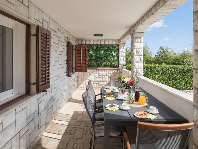 Appartementenhuis Rita ligt op een rustige locatie in Poreč, omgeven door groen en een ruime tuin. Gasten kunnen genieten van een eigen terras of balkon, en een grillterras voor ontspannende momenten. De faciliteit biedt beveiligde parkeergelegenheid, appartementen met airconditioning en accepteert huisdieren. (max. 1 gratis, 2 en meer tegen betaling) Het stadscentrum ligt op slechts 15 minuten lopen. App Rita No.4 is gelegen op de begane grond, gasten hebben tot hun beschikking: een groot eigen balkon, keuken, woonkamer met extra bed, badkamer en twee slaapkamers met tweepersoonsbedden.